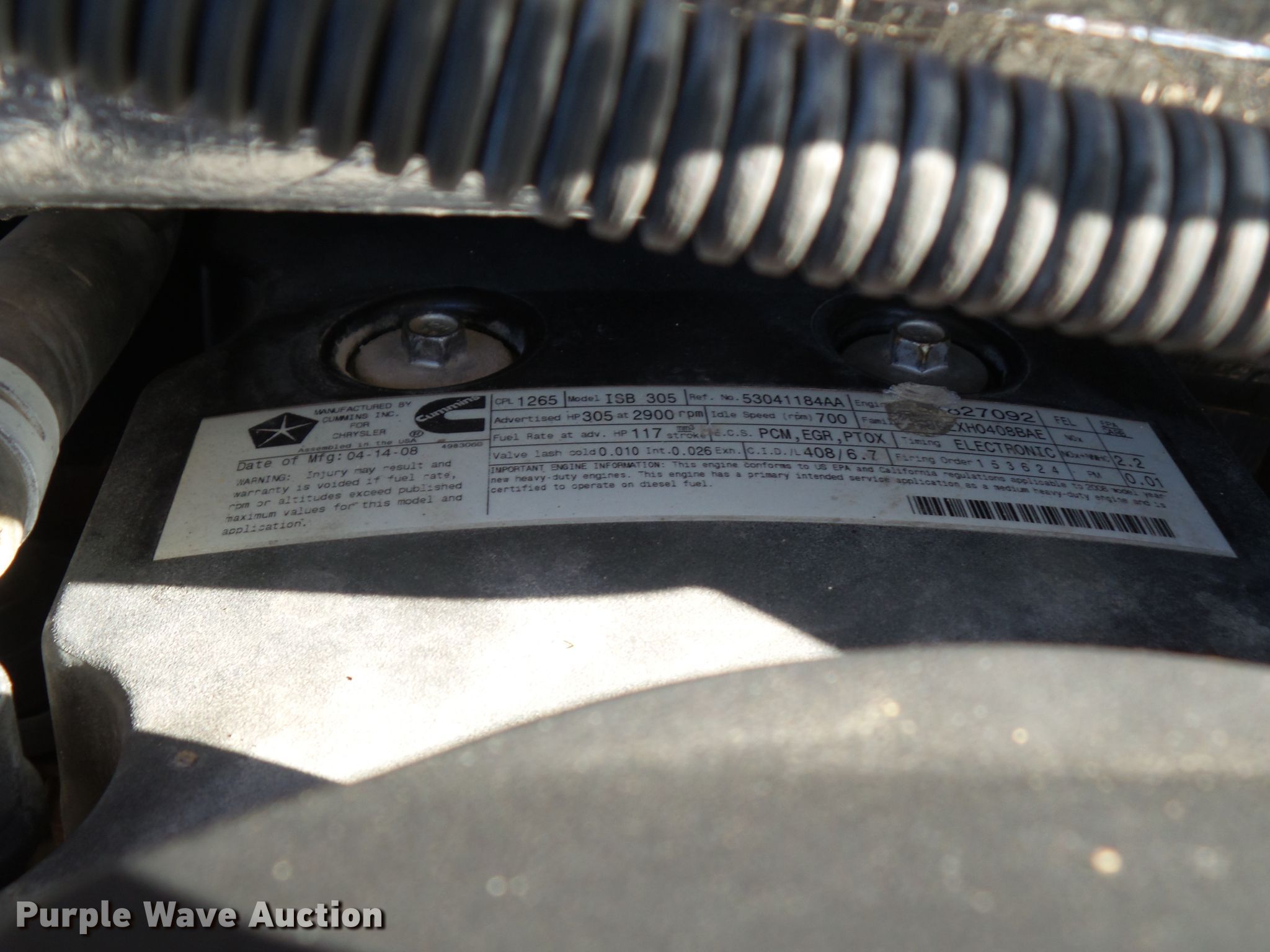 2008 Sterling 5500 flatbed truck. 89,600 miles on odometer Miles may vary, unit still in use. Engine Cummins ISB, Displacement: 6.7L, Cylinders: 6, Fuel type: Diesel. Transmission Automatic. Chassis Axles: Single, Suspension: Spring, Brakes: Hydraulic, GVWR: 19,500 lbs, Wheelbase: 190". Interior AC, Heat. Operational Flatbed Length: 11.5', Width: 93". Tires Size: 225/70R19.5. Notes Two way radio not included, Auxiliary fuel tank not included, Bottles not included. Iowa title. Title distribution may be delayed up to 14 days from verification of funds. 3F6WJ78A68G351225. DeCarlo Demolition - Open inspection Oct. 21. 260 NE 44th Ave. Des Moines, IA 50313
