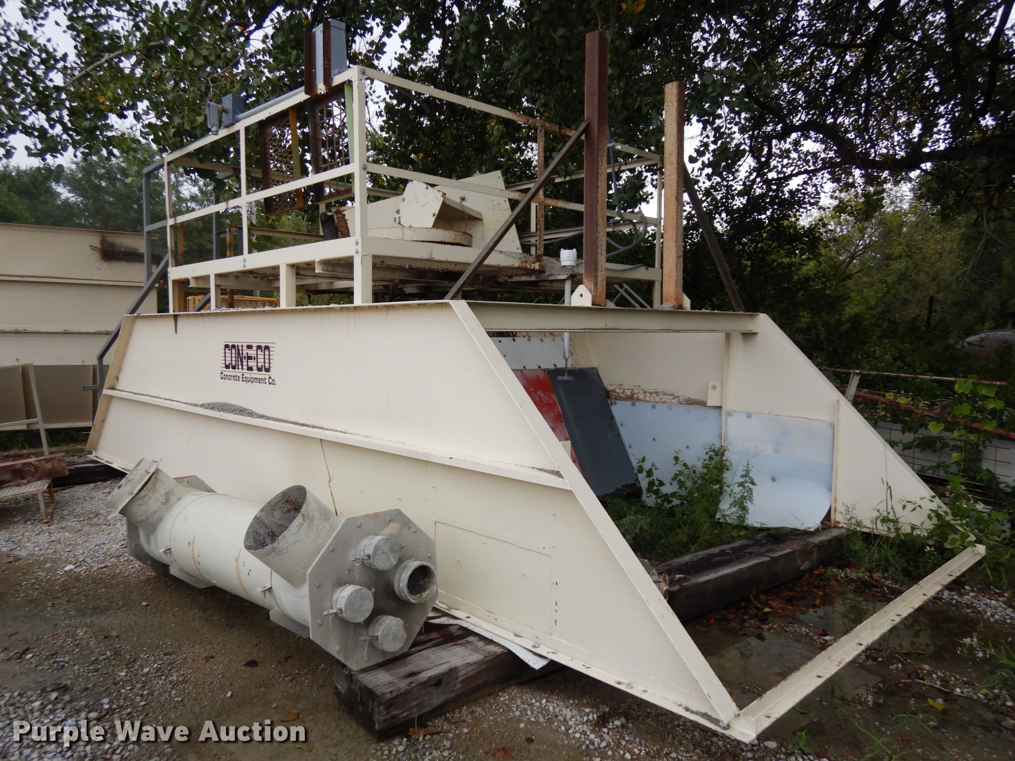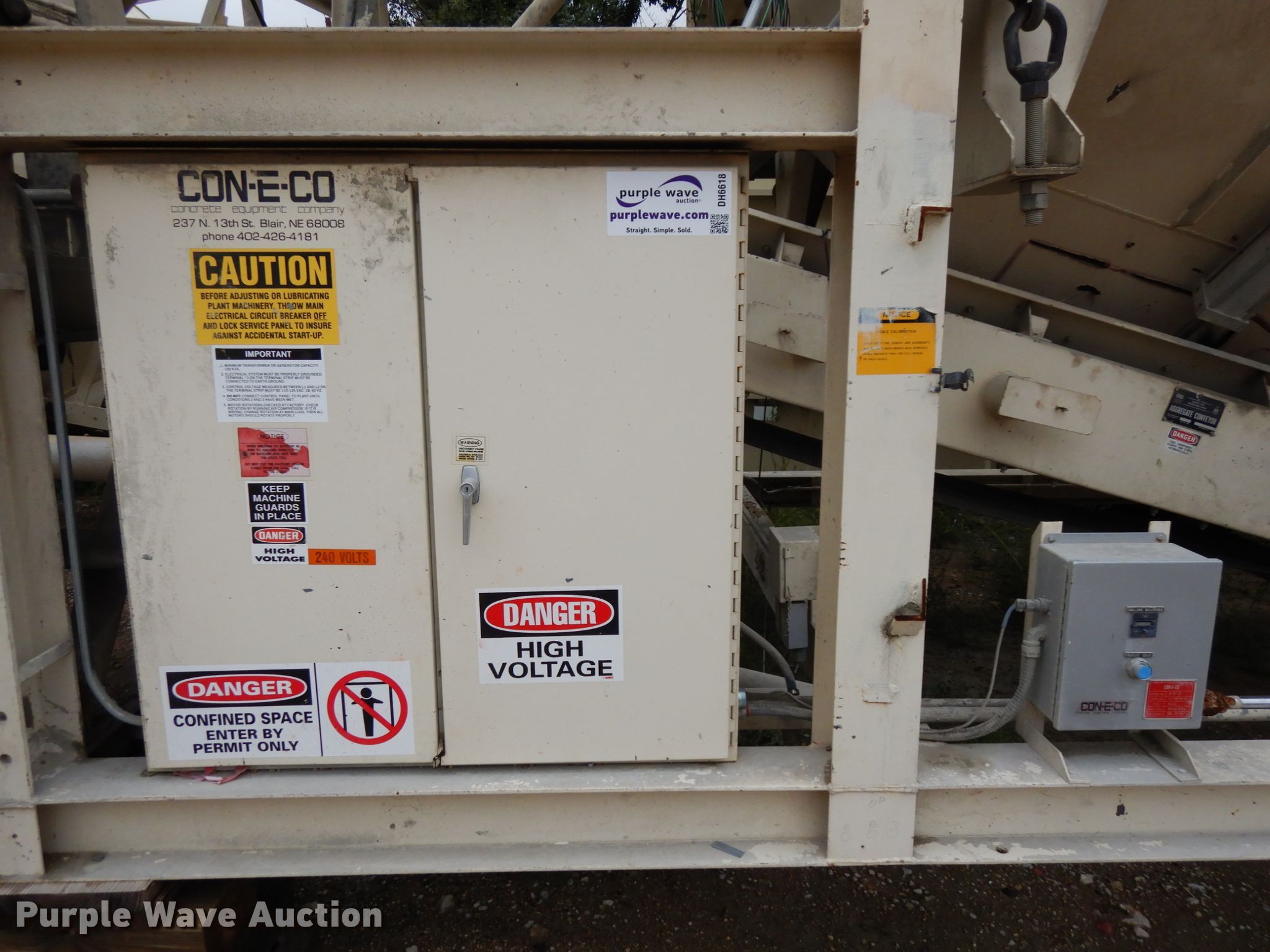 Purple Wave is selling a used Batch Plant or Surge Bin in Nebraska. This item is a 1990 Con-e-co 10 All Pro concrete batch plant with the following: Silo with 100 ton capacity, (2) aggregate bin extensions, Dust collector, Aggregate bins, Divided three ways with six gates, 60' to 80' inclined conveyor, 10 cu.yd. aggregate bather, Two gates, 30" discharge conveyor, 10 cu.yd. cement batcher, Hopper, Manuals, Parts and hardware missing, Unknown operating condition, Disassembled, building not included
