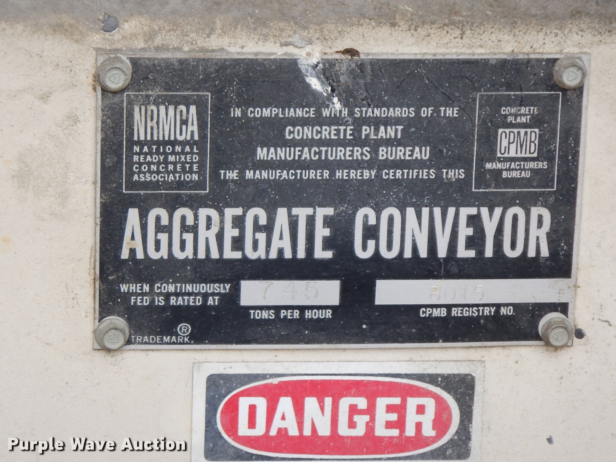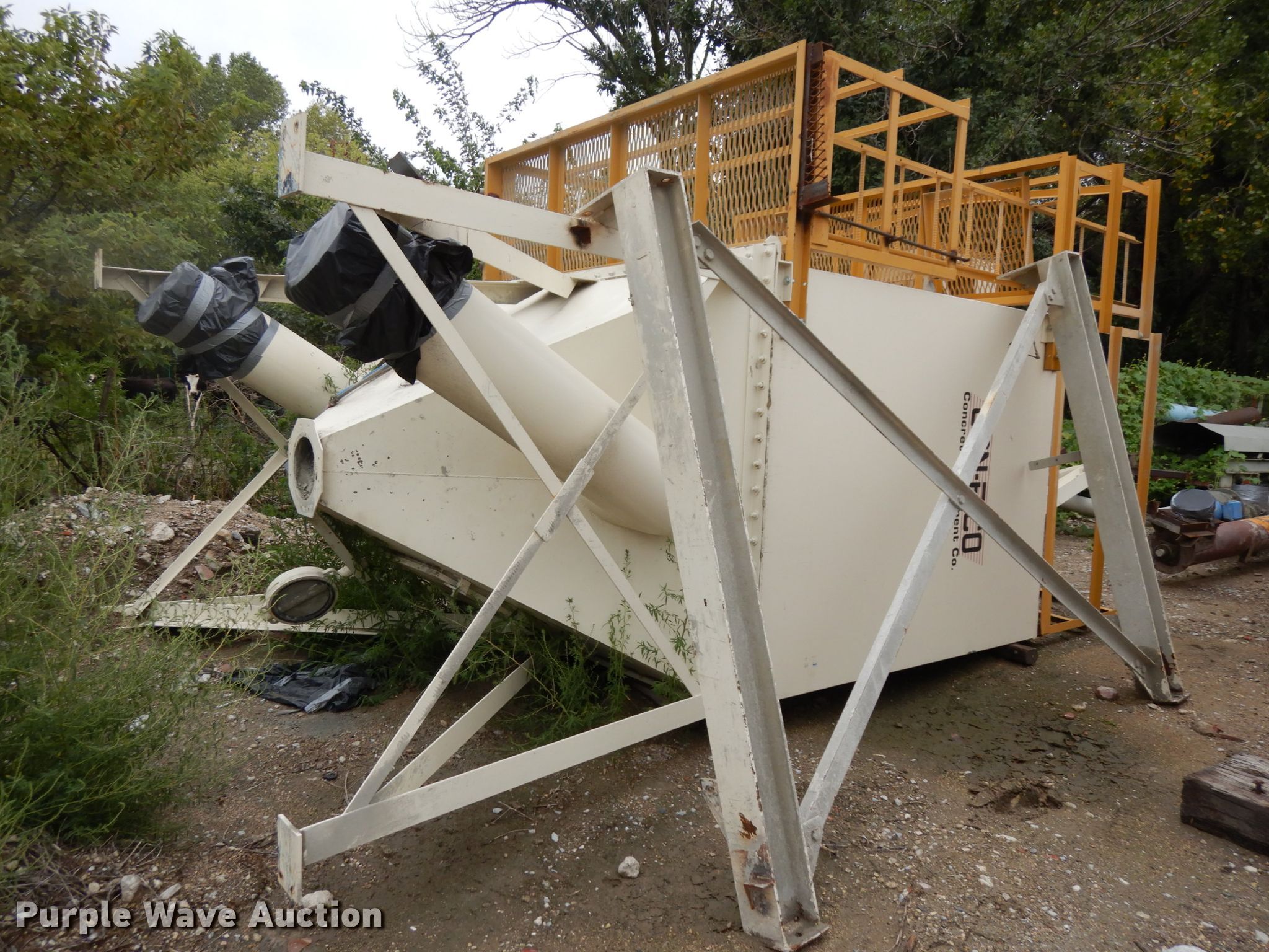 1990 Con-e-co 10 All Pro concrete batch plant. Silo with 100 ton capacity, (2) aggregate bin extensions, Dust collector, Aggregate bins Divided three ways with six gates, 60' to 80' inclined conveyor, 10 cu.yd. aggregate bather Two gates , 30" discharge conveyor, 10 cu.yd. cement batcher, Hopper, Manuals, Parts and hardware missing, Unknown operating condition , Disassembled, building not included. Beatrice Concrete. 1320 W 11th St. Crete, NE 68333