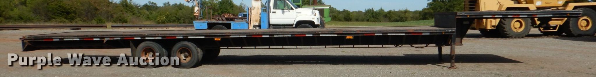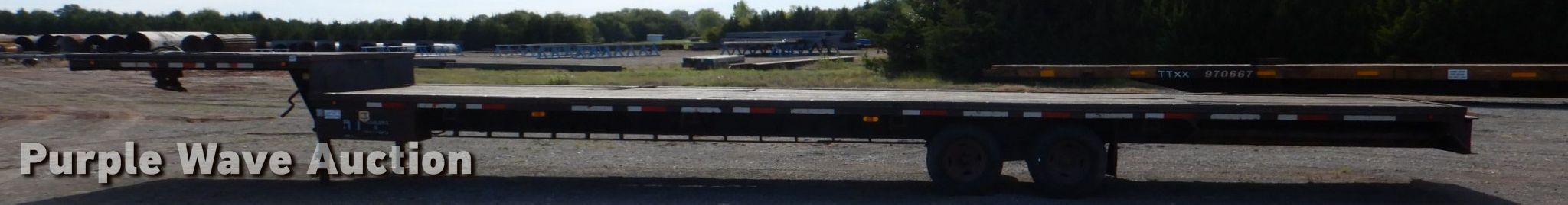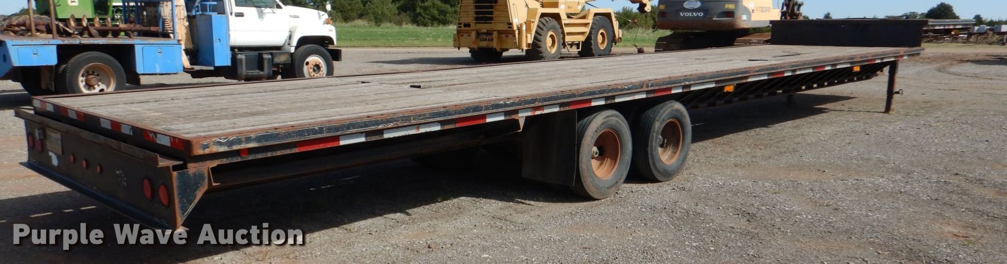 Purple Wave is selling a used Equip. Trailer in Oklahoma. This item is a 2000 DJ equipment trailer with the following: 50'L x 96"W overall, 40'L x 94"W wood deck, Dual leg landing gear, Spring suspension, Vacuum over hydraulic brakes, Tandem axle, LT235/85R16 tires