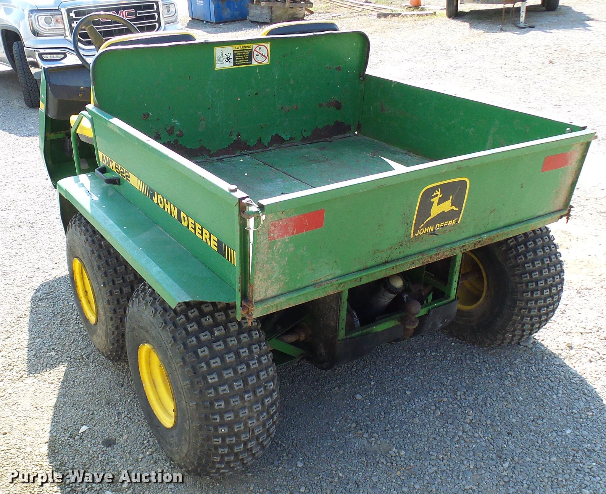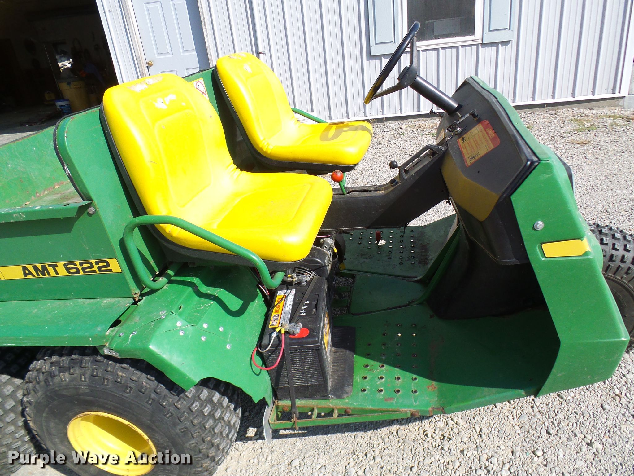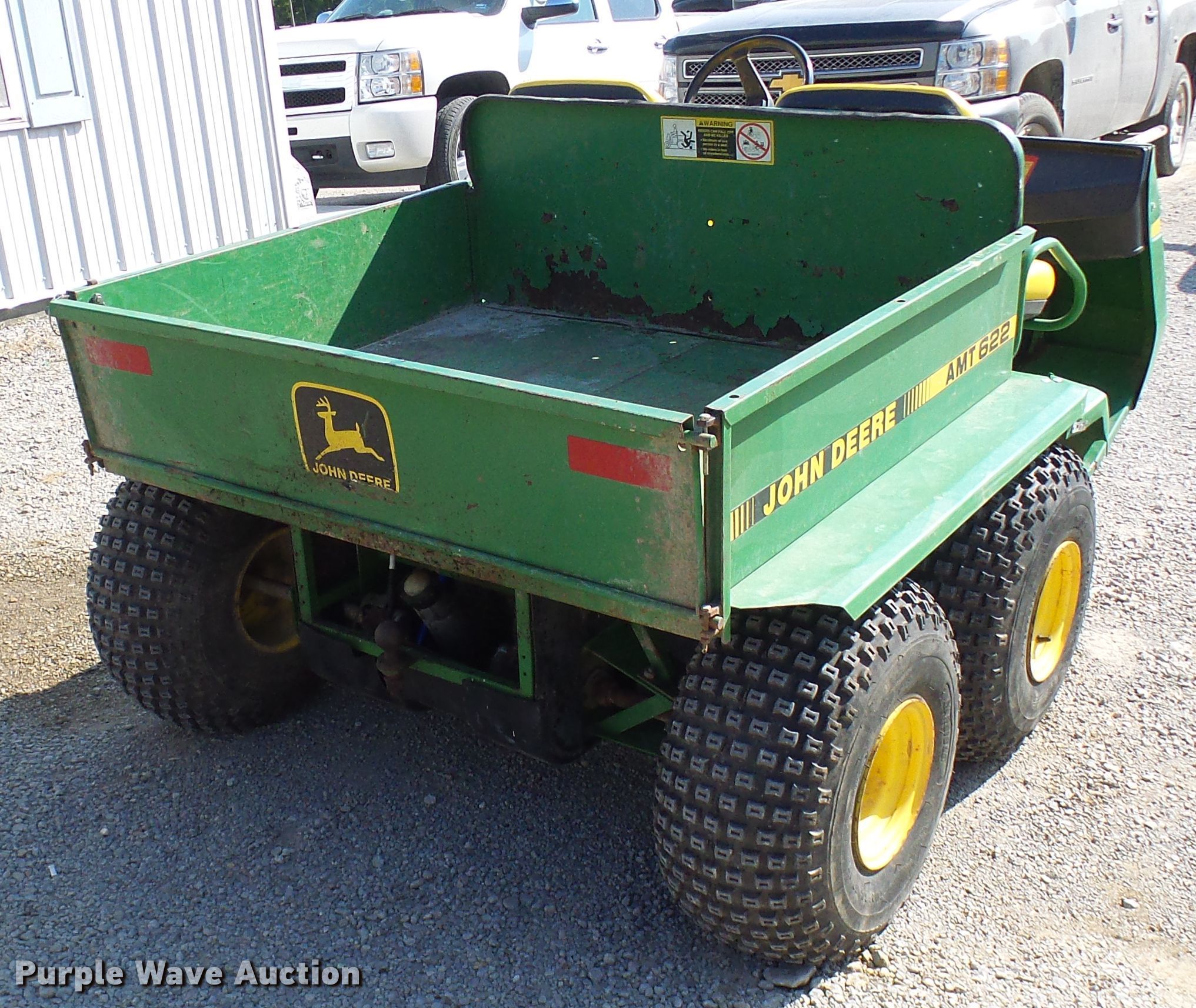 John Deere AMT622 utility vehicle. Engine. Fuel type: Gas. Transmission Hydrostatic. Operational Dump bed, Dump bed type: Electric/ Hydraulic. Tires Size: AT25X12.9. Transfer of ownership documentation will be a bill of sale. Fidus Construction. 211 Selly Place. Tipton, MO 65081