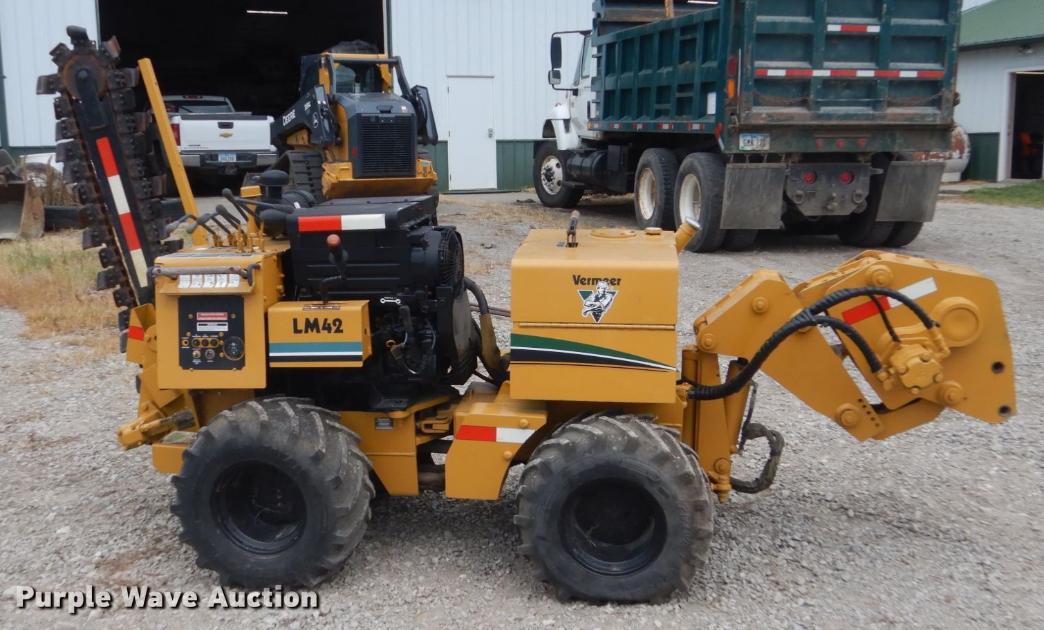 Purple Wave is selling a used Trencher or Rock Saw in Iowa. This item is a 1996 Vermeer LM42 trencher with the following: 1,121 hours on meter, Serial: 1VRM112L7T1000586