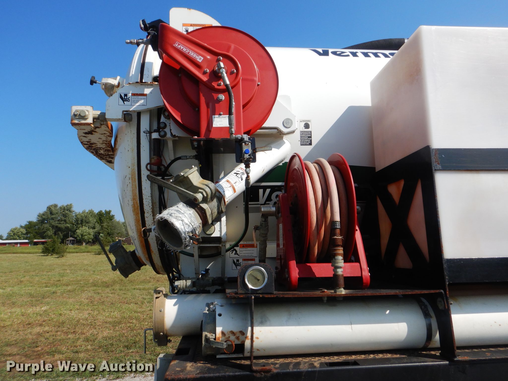 2010 Kenworth T370 vacuum truck. 43,552 miles on odometer, Engine hours: 6231. Engine Paccar PX-8, Serial: 73051174, Displacement: 8.3L, Cylinders: 6, Fuel type: Diesel. Transmission Automatic. Chassis Axles: Single, Suspension: Air, Brakes: Air, PTO, GVWR: 33,000 lbs. Interior AC, Heat, Cruise control. Operational Bed/ tank Vermeer V800, Capacity: 800 gallon, Rear outlet: 3", Engine Kubota, Cylinders: 4, Fuel: Diesel, HP: 49, Water pump GPM: 5.6, Water heater PSI: 3000, Rear hose reel. Tires Size: 11R22.5. Oklahoma title. 2NKHHN7X0AM273714. Collinsville, OK 74021