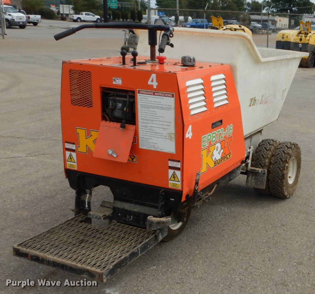 Purple Wave is selling a used Concrete Dispenser in Missouri. This item is a Power Buggy EPB72-16 electric buggy with the following: 1,829 hours on meter, Electric motor, Hydrostatic transmission, Hydraulic dump, 16 cu.ft. capacity, 2,500 lbs capacity, 5.70-8 front tires, 4.80/4.00-8 rear tires, Serial SP160012