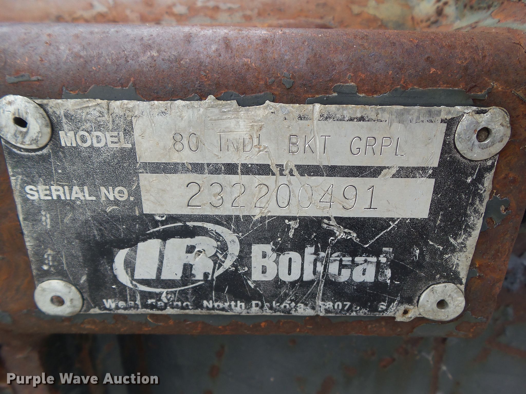 Bobcat 80"W skid steer grapple bucket. Serial 232200491. DeCarlo Demolition - Open inspection Oct. 21. 260 NE 44th Ave. Des Moines, IA 50313