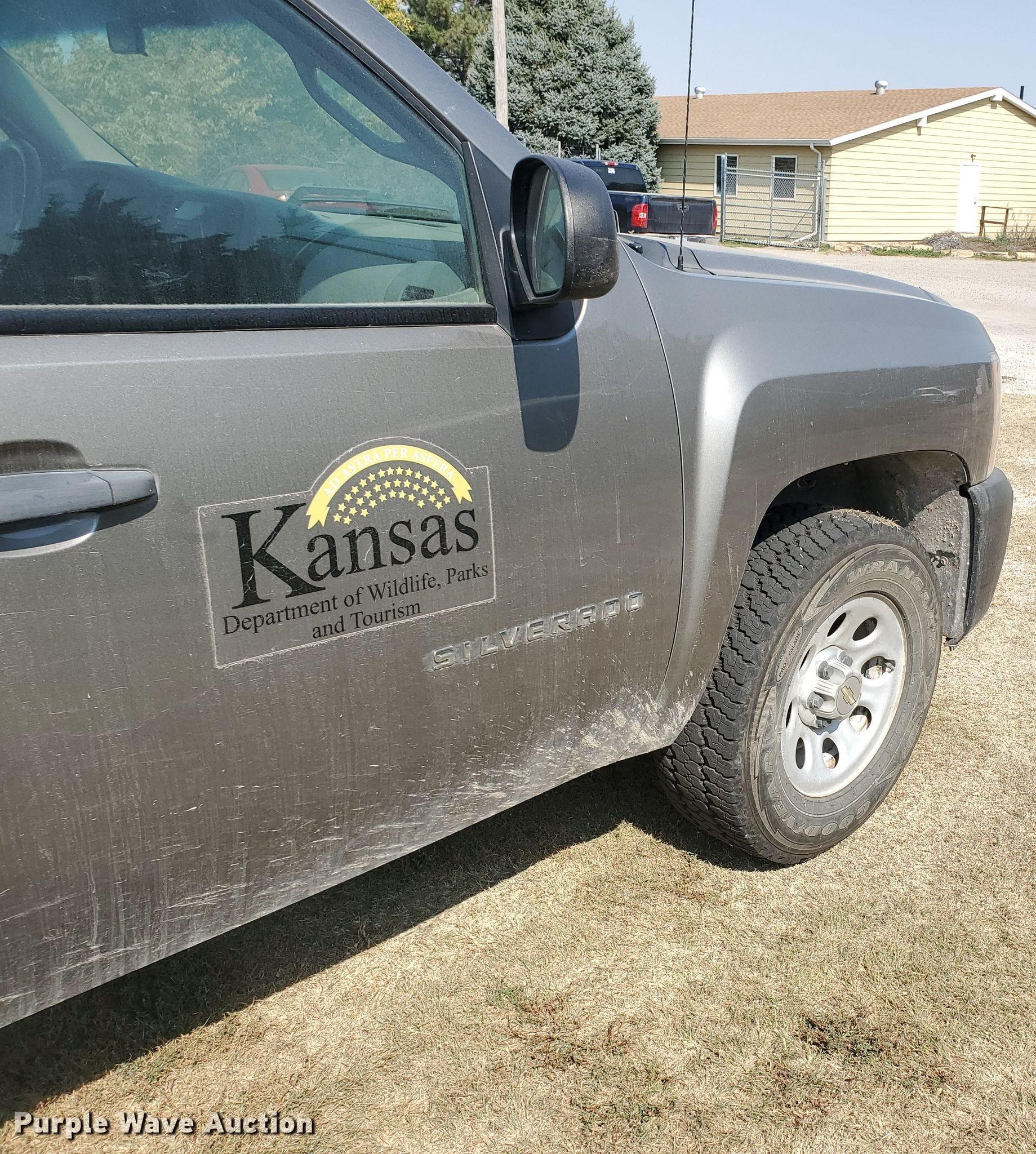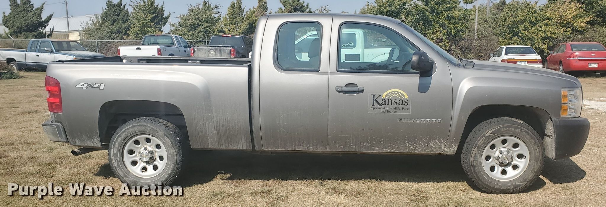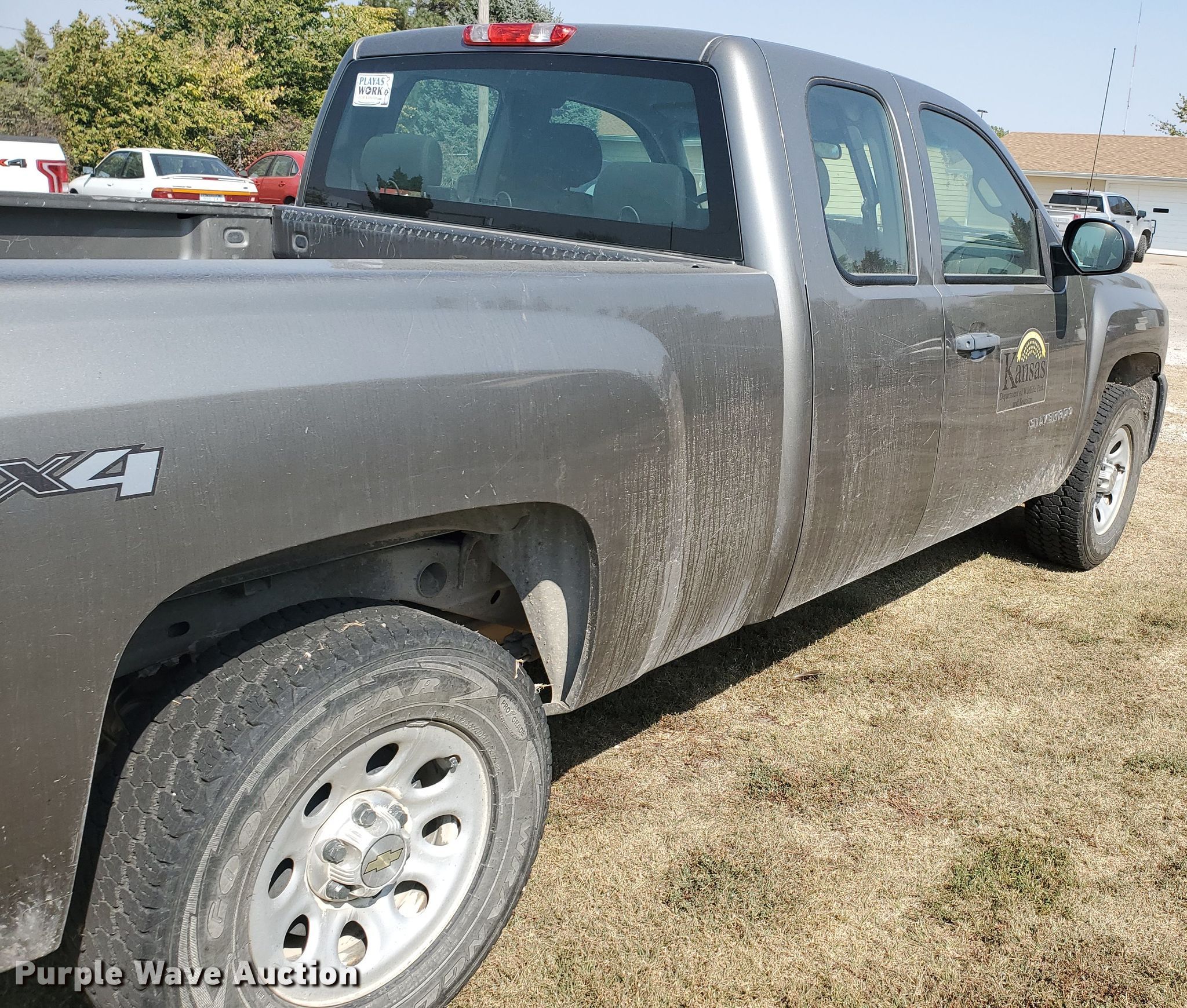 2012 Chevrolet Silverado 1500 Ext. Cab pickup truck. 141,835 miles on odometer. Engine Displacement: 5.3L V8 OHV 16V FFV, Cylinders: 8, Fuel type: Gas. Transmission Automatic. Interior AC, Heat, Power windows, Power locks, Cruise control. Tires Size: 265/70R17. Notes Signs in bed not included, Decals will be removed, Dash warning indicator: Check engine, Transmission issues. Kansas title. 1GCRKPE70CZ230847. Kansas Wildlife, Parks & Tourism. 1426 US-183 BYP. Hays, KS 67601