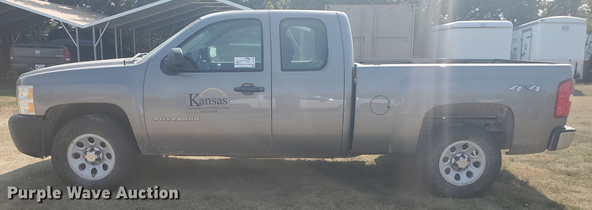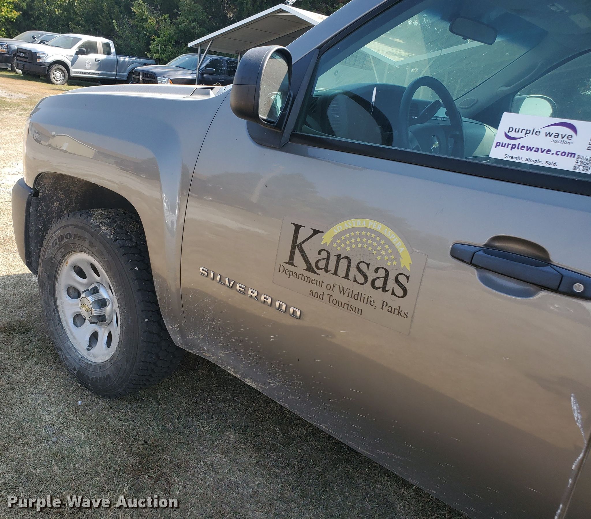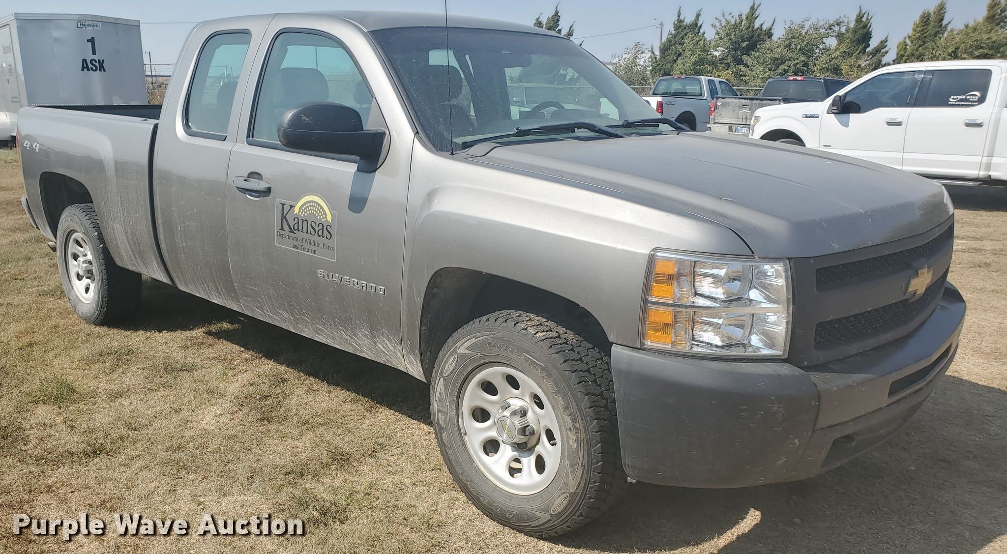 2012 Chevrolet Silverado 1500 Ext. Cab pickup truck. 141,835 miles on odometer. Engine Displacement: 5.3L V8 OHV 16V FFV, Cylinders: 8, Fuel type: Gas. Transmission Automatic. Interior AC, Heat, Power windows, Power locks, Cruise control. Tires Size: 265/70R17. Notes Signs in bed not included, Decals will be removed, Dash warning indicator: Check engine, Transmission issues. Kansas title. 1GCRKPE70CZ230847. Kansas Wildlife, Parks & Tourism. 1426 US-183 BYP. Hays, KS 67601
