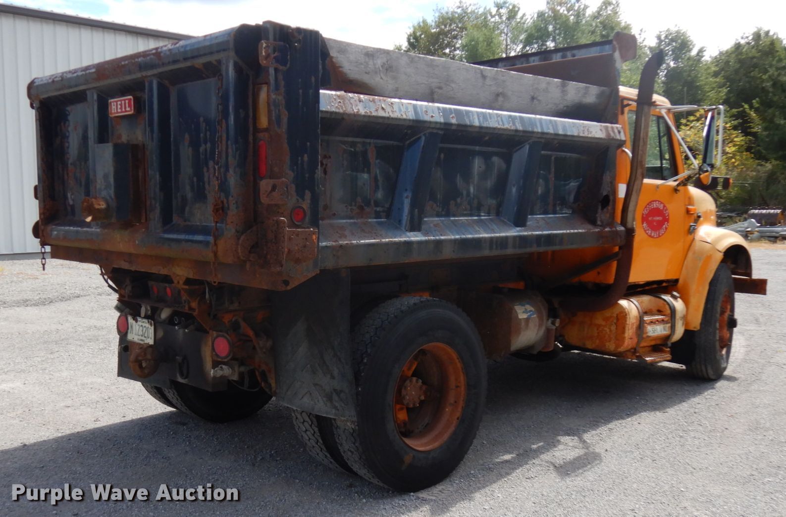 1991 International 4900 dump truck. 230,037 miles on odometer. Engine International DT466, Displacement: 7.6L, Cylinders: 6, Fuel type: Diesel. Transmission Automatic. Chassis Axles: Single, Suspension: Spring, Brakes: Air, Front mount PTO. Interior Heat. Operational Dump bed Heil, 9' L x 95" W, Side height: 32", Side board height: 9.5", Bed type: Steel, Ram: Single , End gate: Air operated. Tires Size: 11R22.5. Illinois title. Title distribution may be delayed up to 14 days from verification of funds. 1HTSDZ4N5MH306869. Jefferson County, IL. 750 Old Fairfield Rd. Mount Vernon, IL 62864