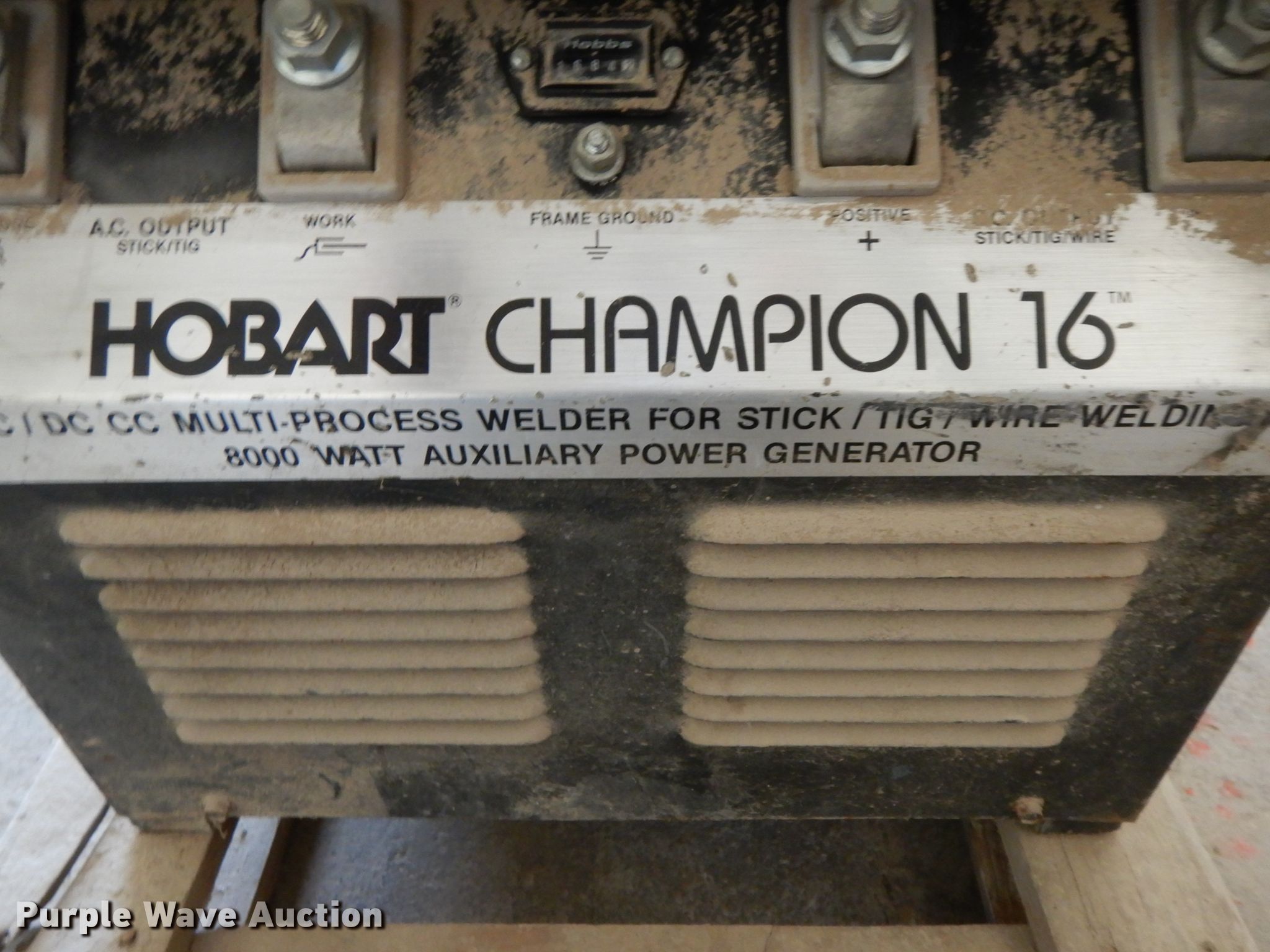 Purple Wave is selling a used Generator Set in Missouri. This item is a Hobart Champion 16 generator with the following: 1,684 hours on meter, Serial: 90WS13088