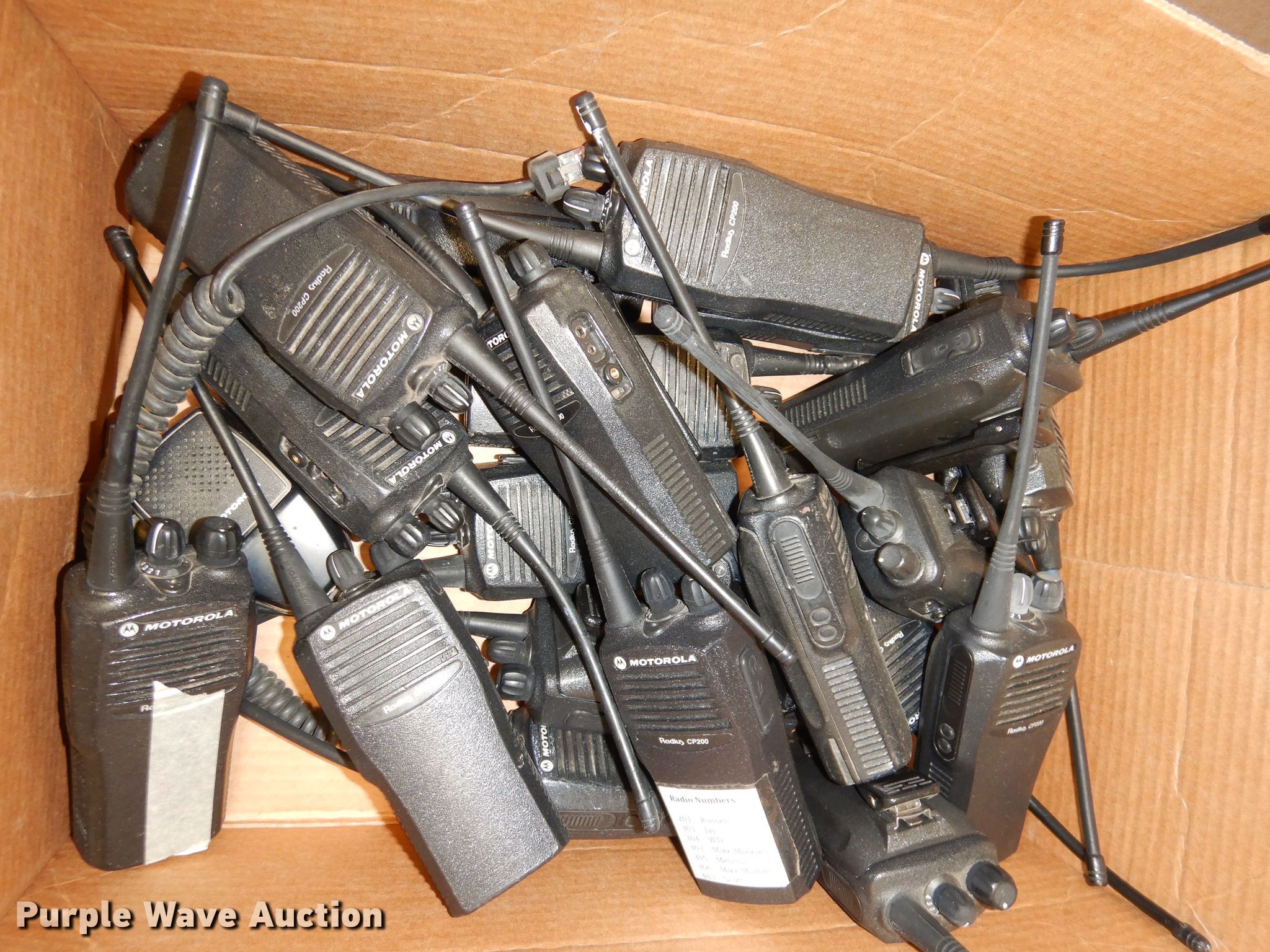Purple Wave is selling a used Electronics in Kansas. This item is a Analog radios with the following: Motorola, Chargers, Microphones, (25) handheld, (27) mobile, No antennas, Frequencies removed