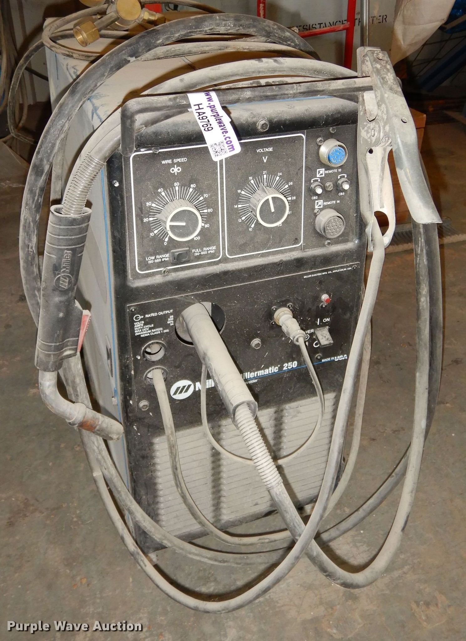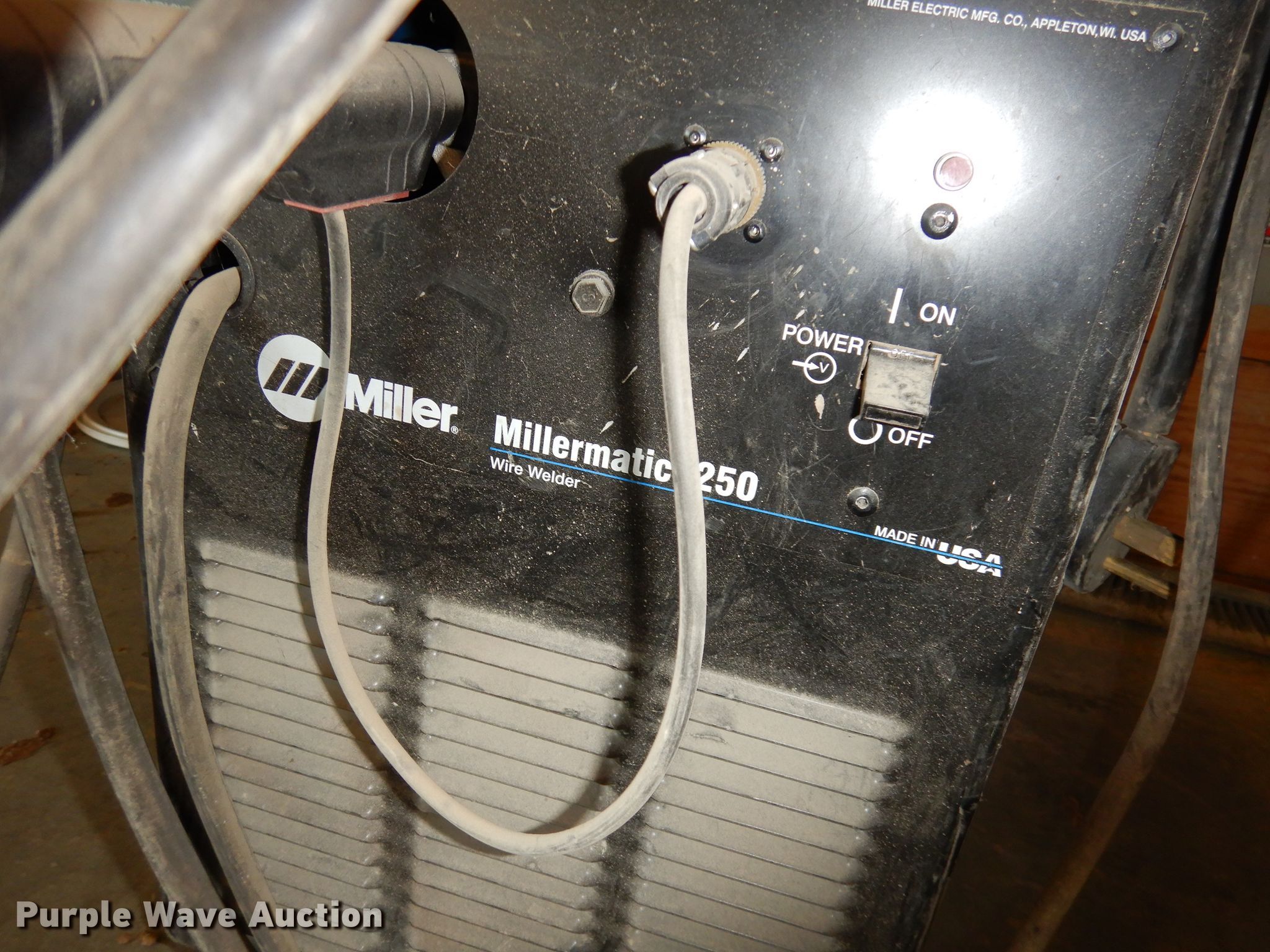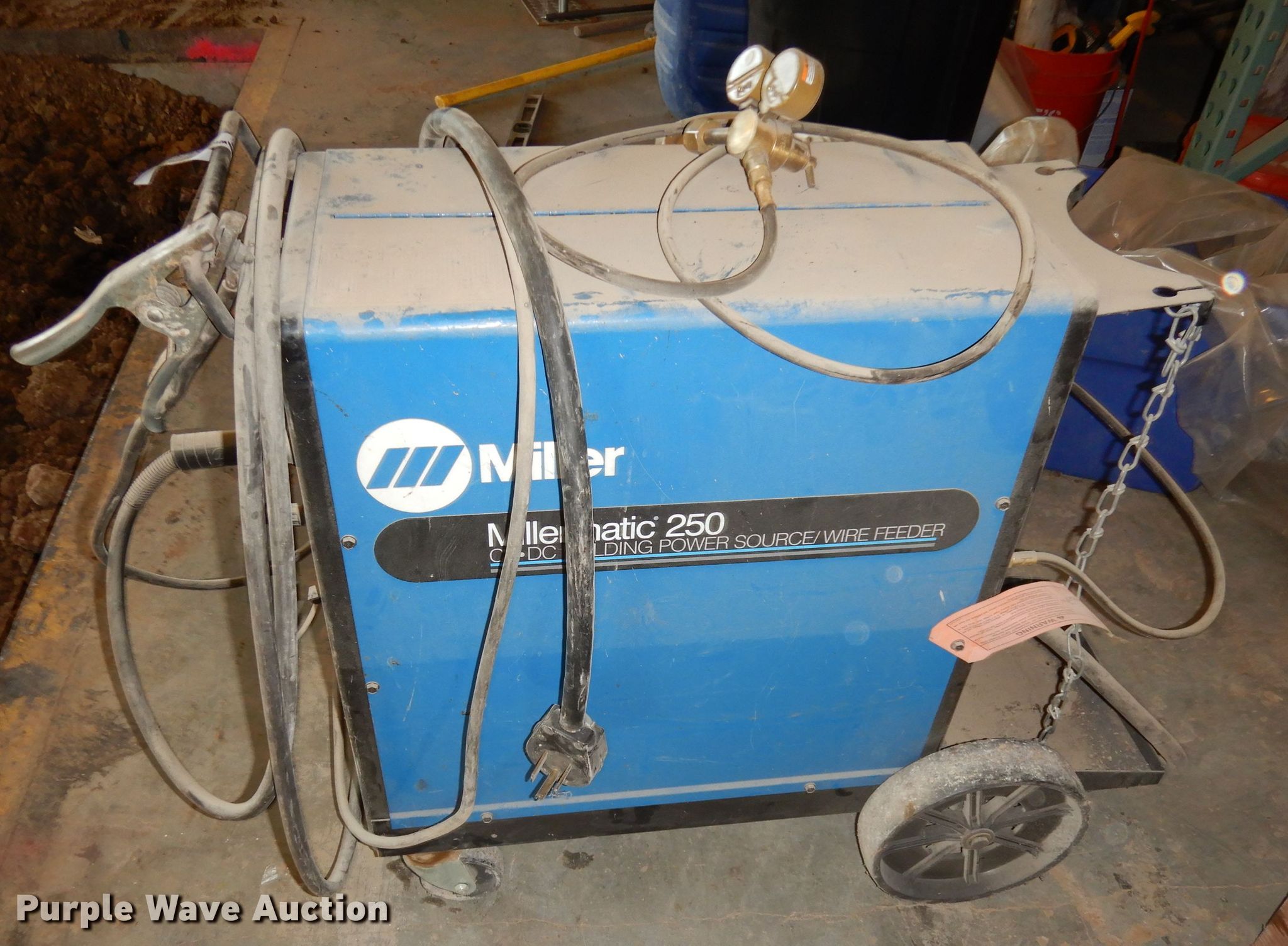 Purple Wave is selling a used Welder (Manual) in Kansas. This item is a Miller Millermatic 250 CV/DC wire welder with the following: Single phase, Gauges, Leads, Wire nozzle, Unknown operating condition