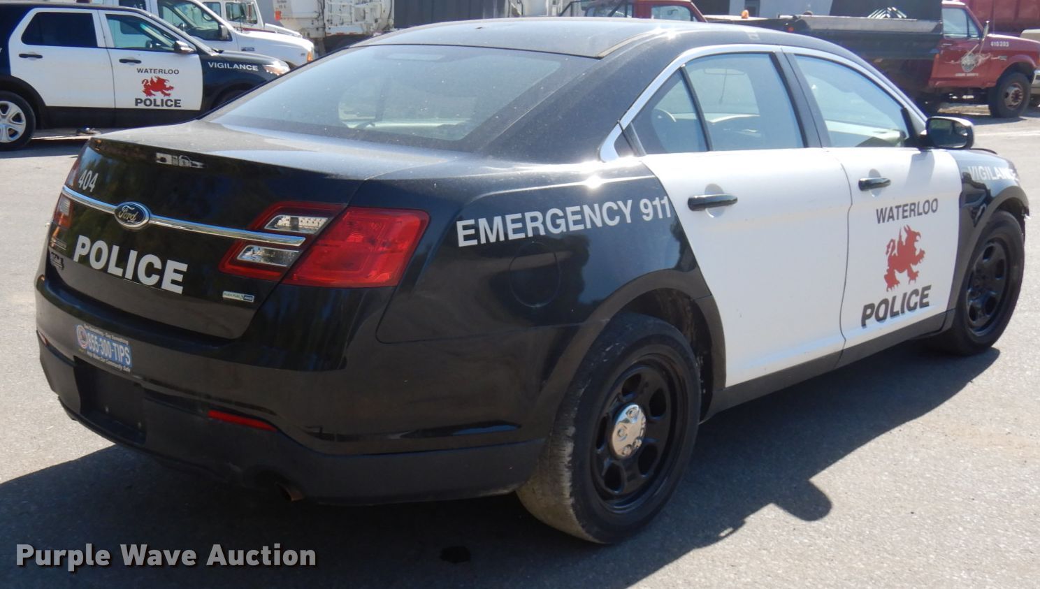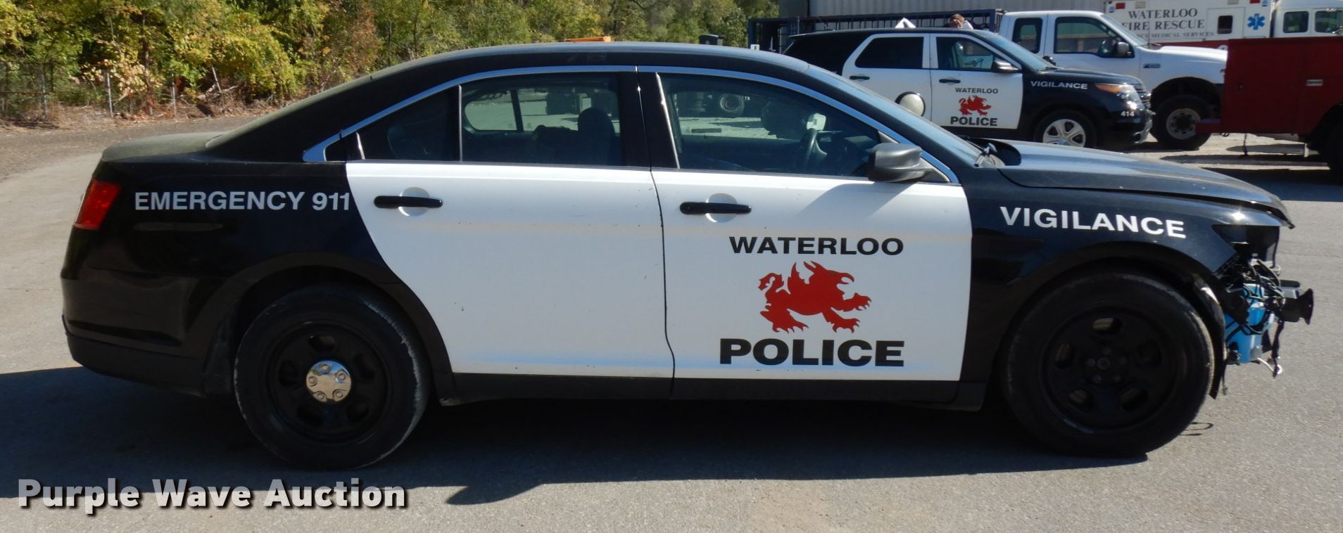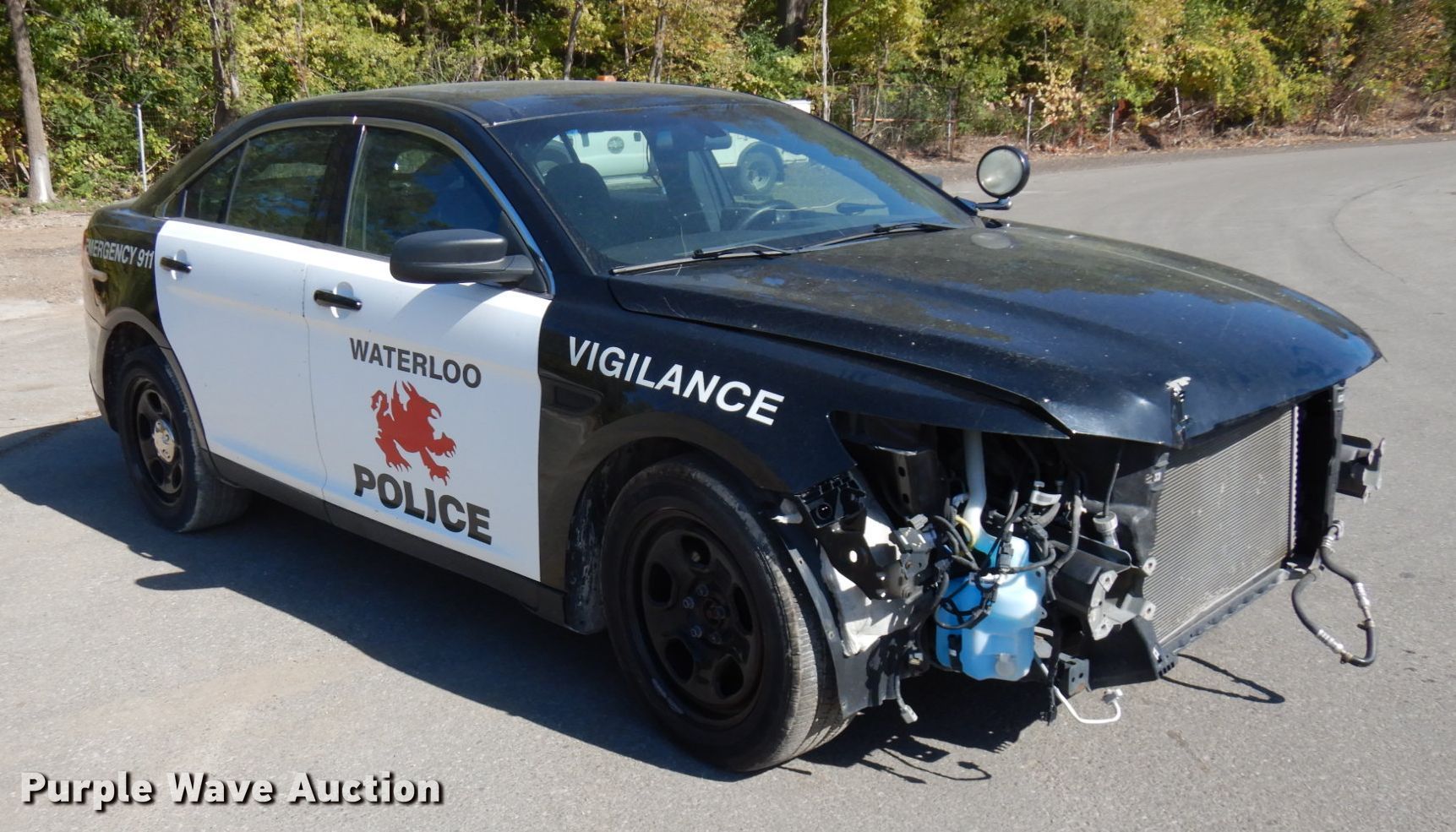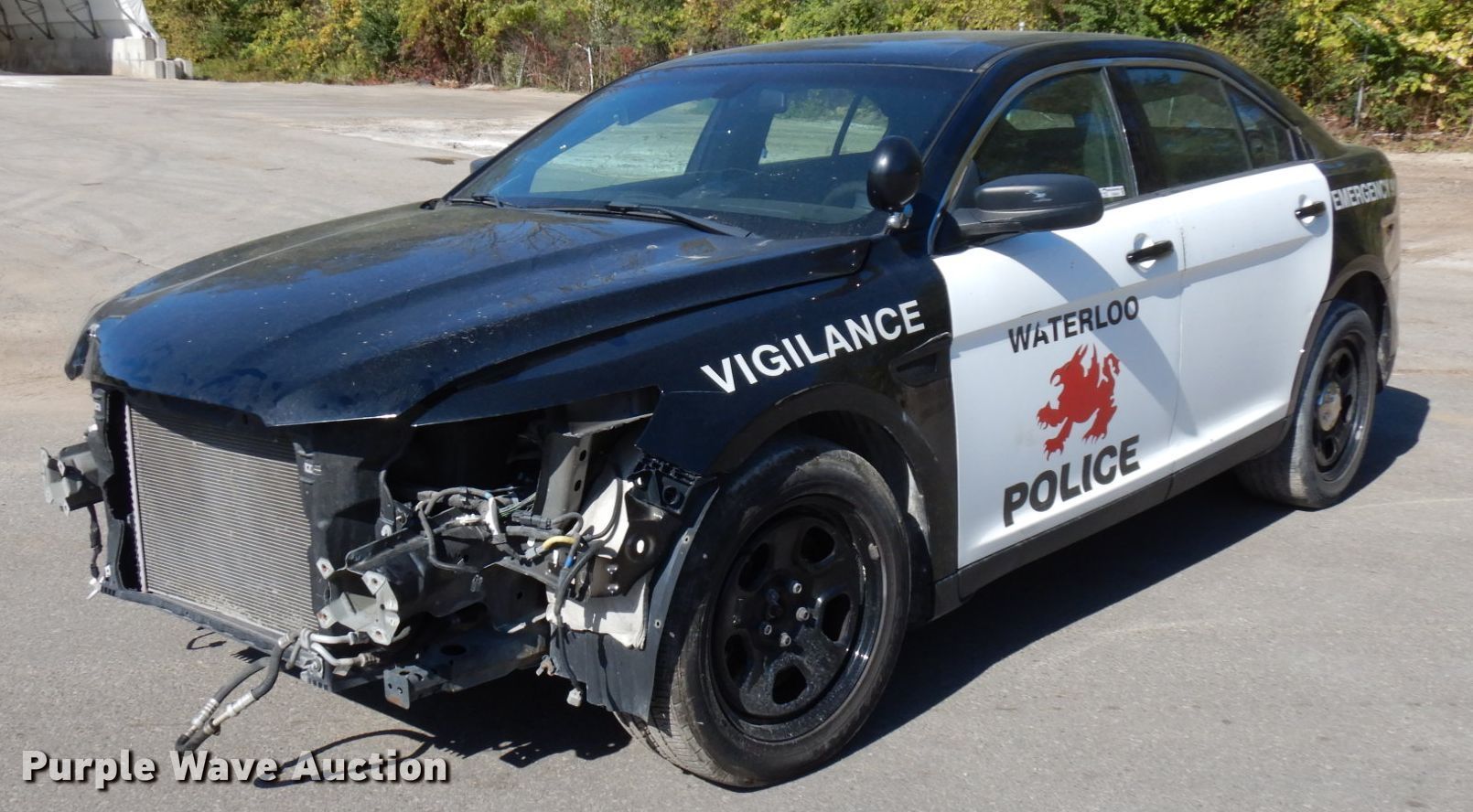 2014 Ford Taurus Police Interceptor. 122,791 miles on odometer. Engine Displacement: 3.7L V6 DOHC 24V, Cylinders: 6, Fuel type: Gas. Transmission Automatic, All wheel drive. Interior AC, Heat, Seat: Power driver, Power windows, Power locks, Cruise control. Tires Size: 245/55R18. Notes Dash warning indicator: Air bag, Windshield chipped or cracked, Possible brake issue, Front end damage. Iowa title. Title distribution may be delayed up to 14 days from verification of funds. 1FAHP2MK4EG111791. City of Waterloo. 625 Glenwood St. Waterloo, IA 50703