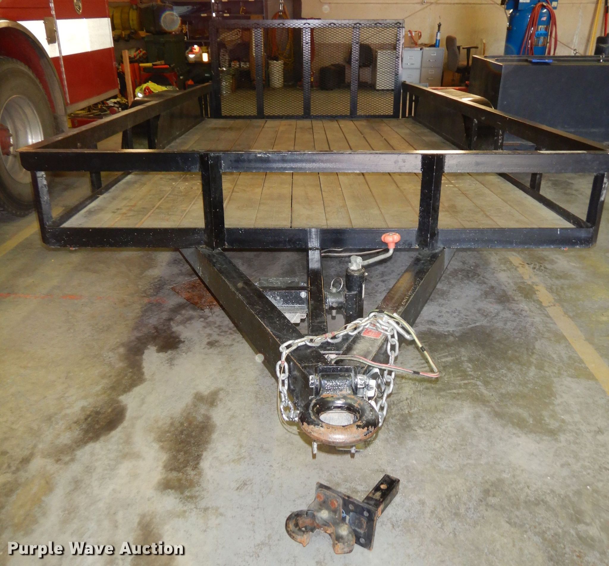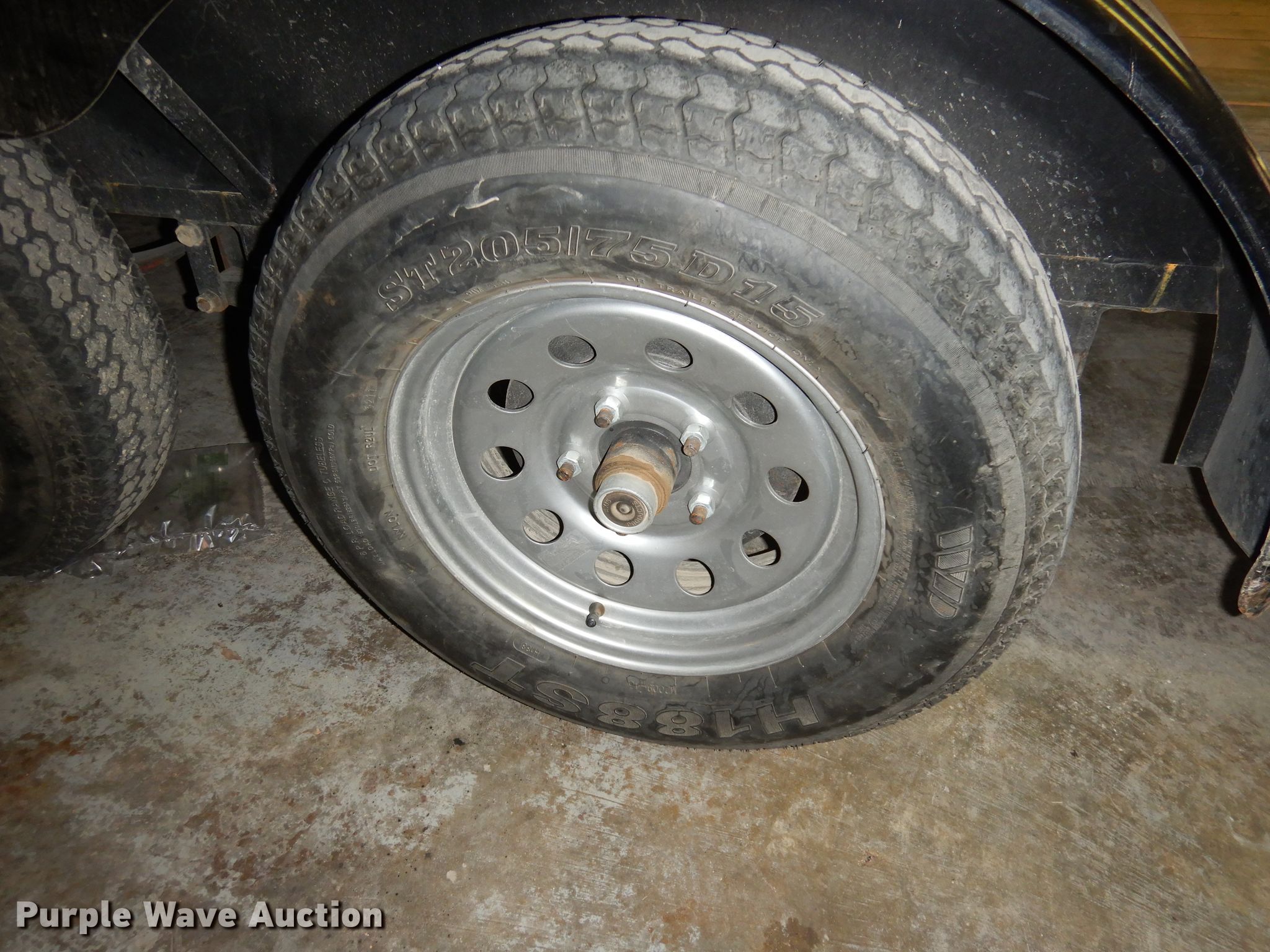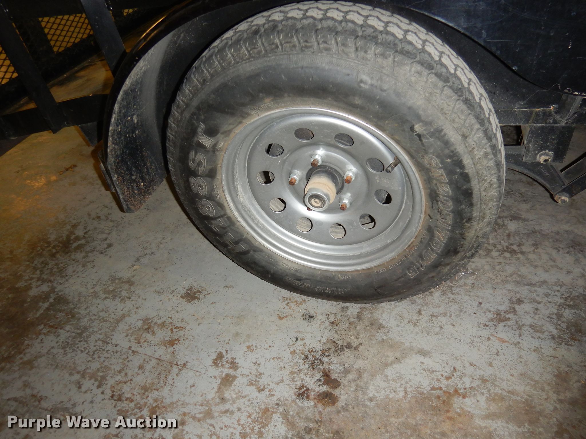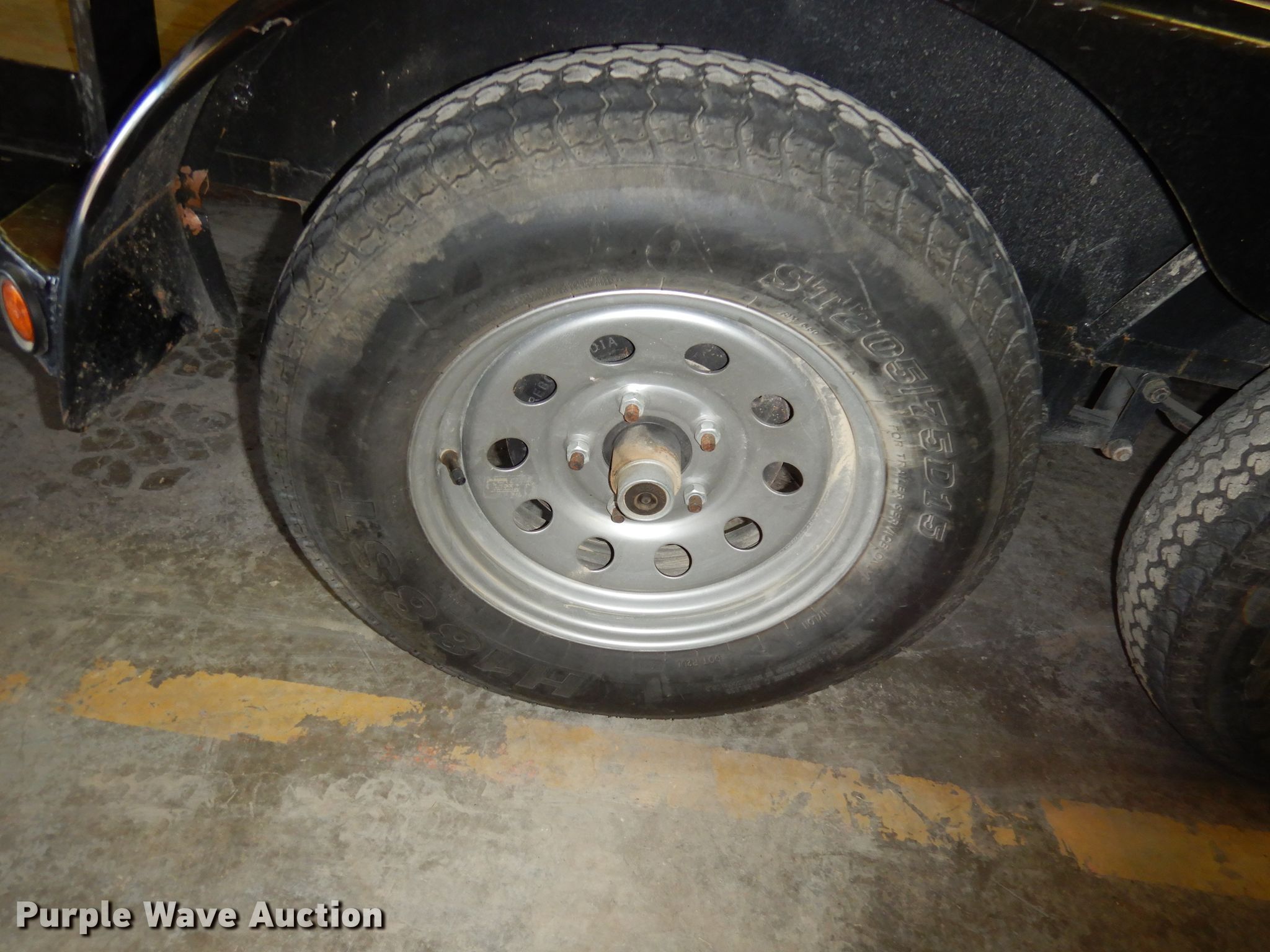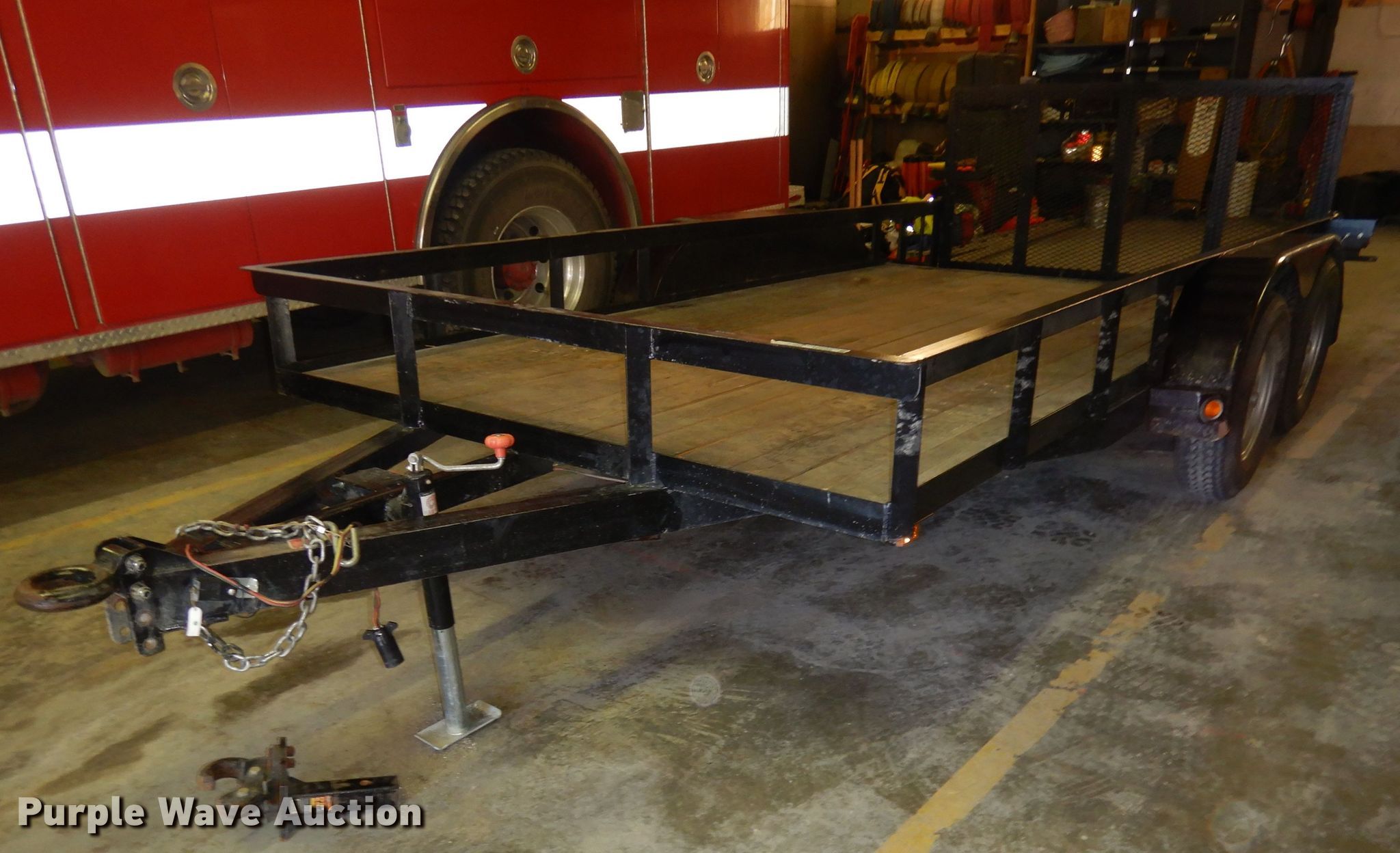 Purple Wave is selling a used Car or Utility Trailer in Kansas. This item is a 2012 Jim's Trailer Manufacturing utility trailer with the following: 14'L x 94"W overall, 12'L x 77"W deck, 2' tail length, 39"L end gate ramp, Wood deck, Single leg landing gear, Spring suspension, Tandem axle, Aluminum wheels, 205/75D15 tires