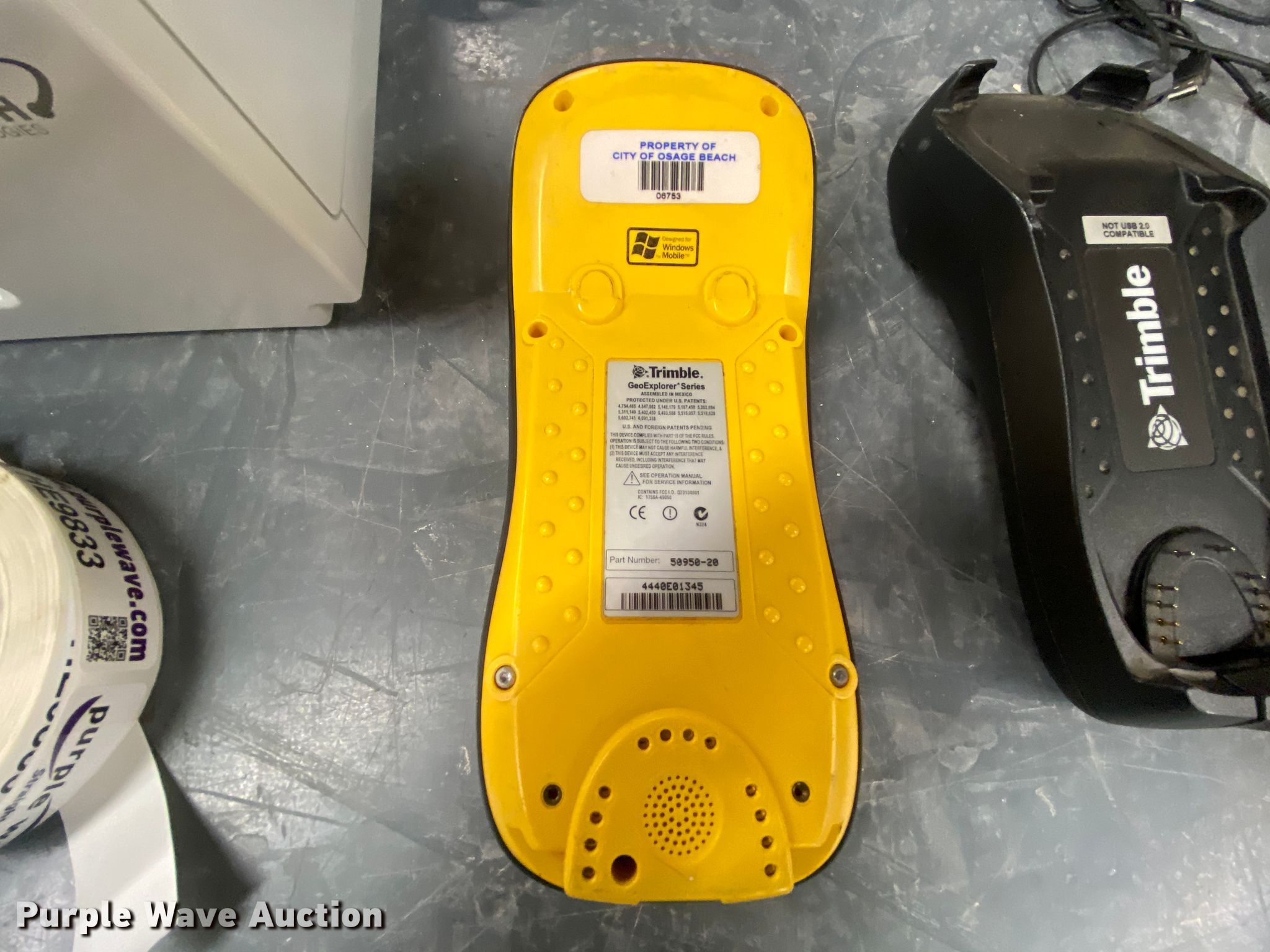 Purple Wave is selling a used Surveying Equip. in Missouri. This item is a Surveying equipment with the following: Trimble Geoexplorer 50950-20, Serial 440E01345, Trimble Geoexplorer 6000, Serial 5307428888, Trimble charging dock, USB adapter