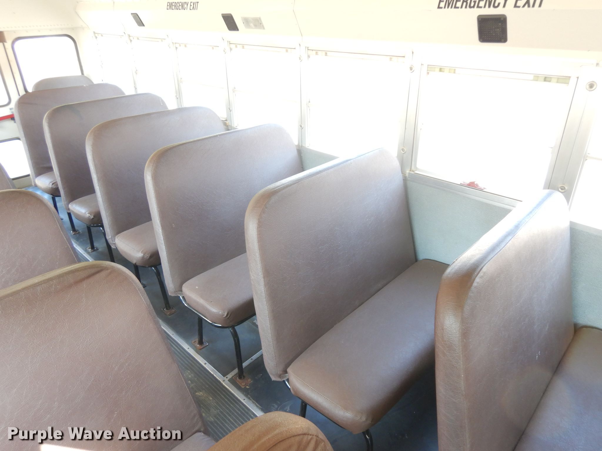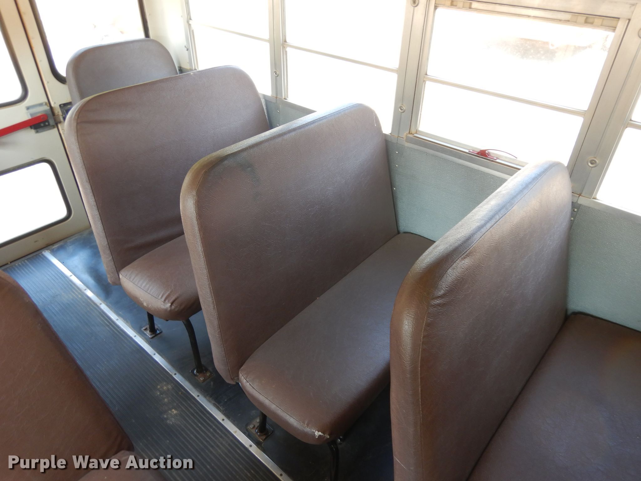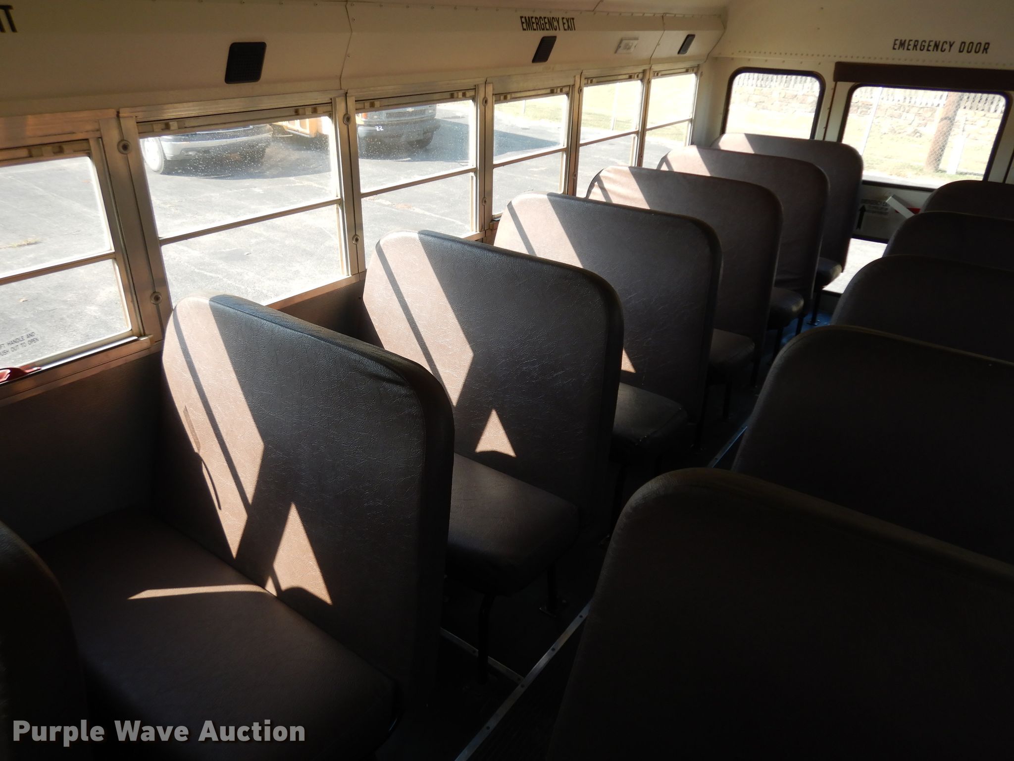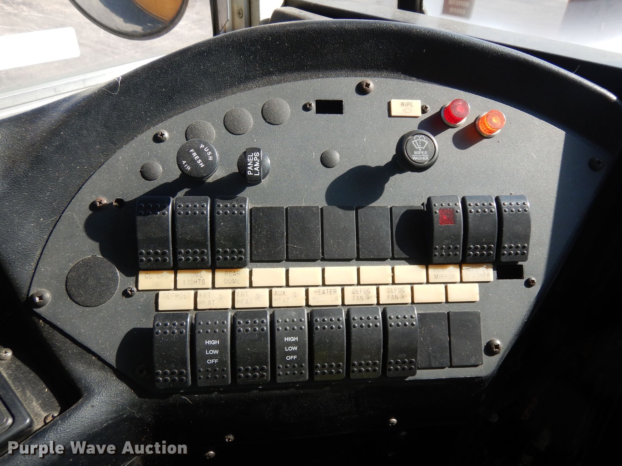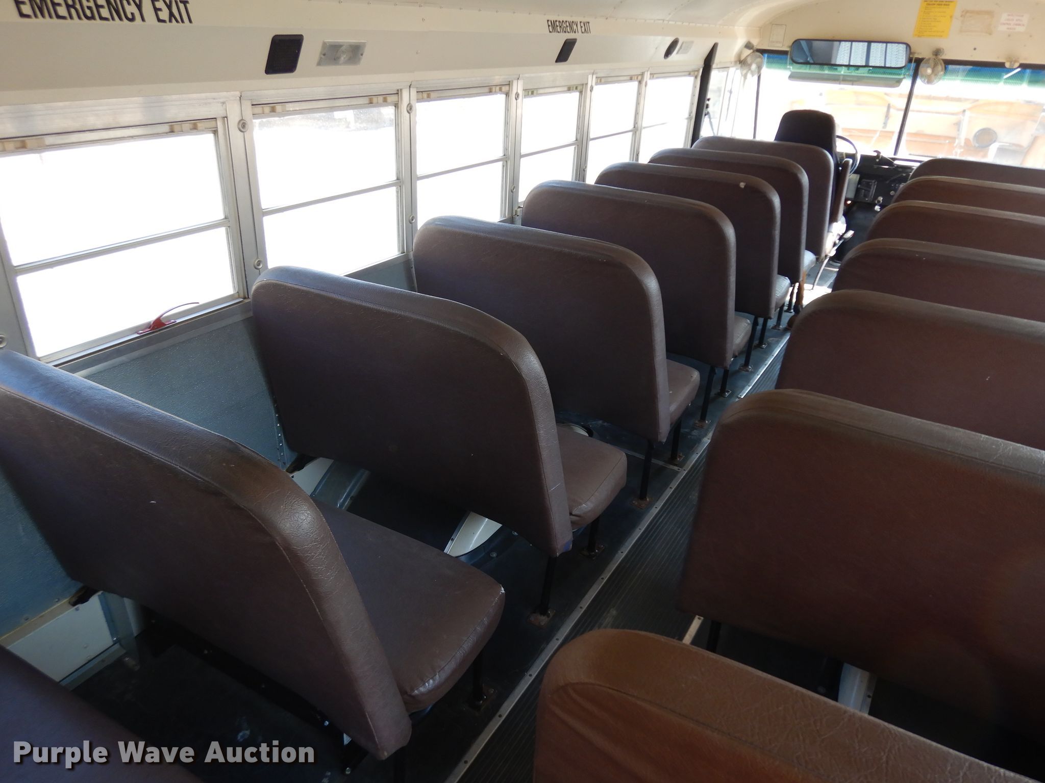 1999 International 3800 school bus. 133,248 miles on odometer, Engine hours: 5,411. Engine International DT466E, Displacement: 7.6L, Cylinders: 6, Fuel type: Diesel. Transmission Automatic. Chassis Axles: Single, Suspension: Spring, Brakes: Hydraulic, GVWR: 27,500 lbs. Interior Heat, Passengers: 31. Tires Size: 10R22.5. Kansas title. 1HVBBAAP6XH255889. 416 E Elm St. Sedan, KS 67361