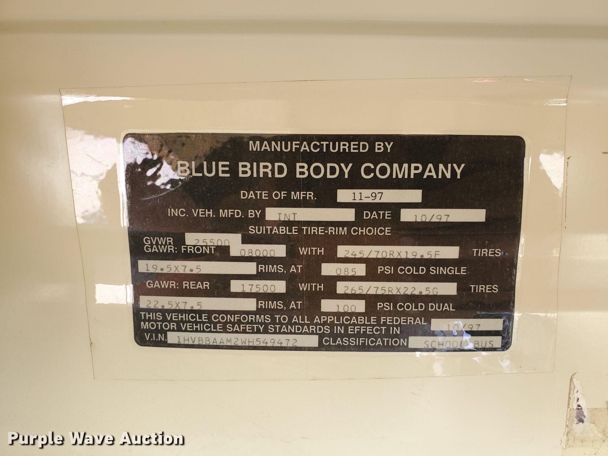 1998 International 3800 Blue Bird school bus | SOLD! November 3 Government Auction