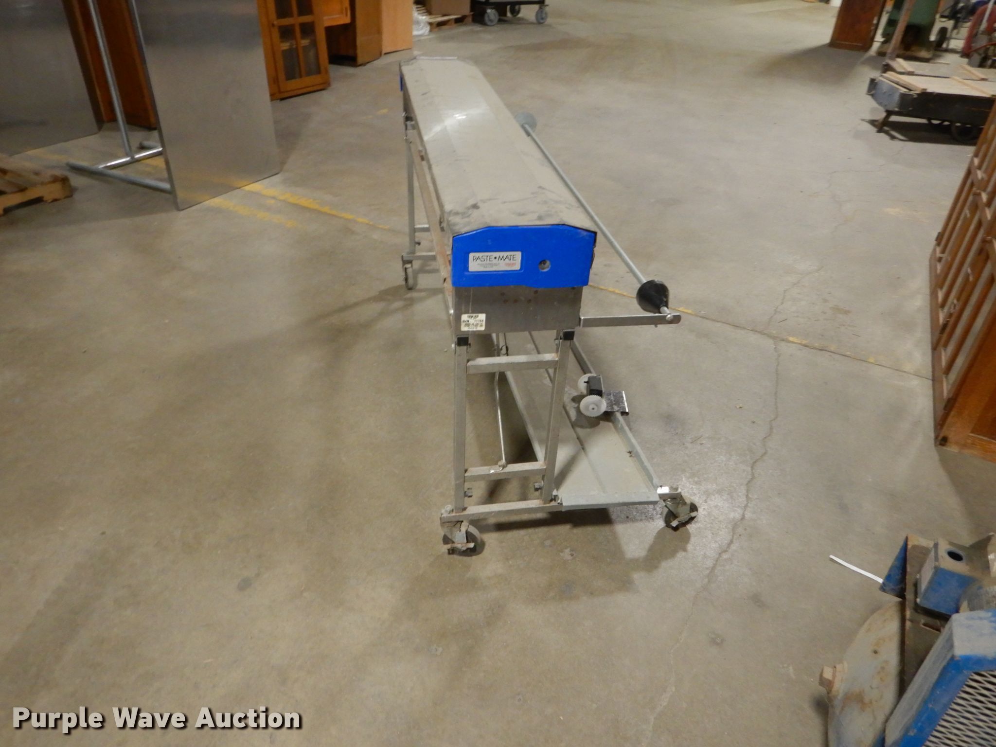 Purple Wave is selling a used Tools in Iowa. This item is a Paste-Mate wallpaper pasting machine with the following: Fits 62" rolls, Wheels