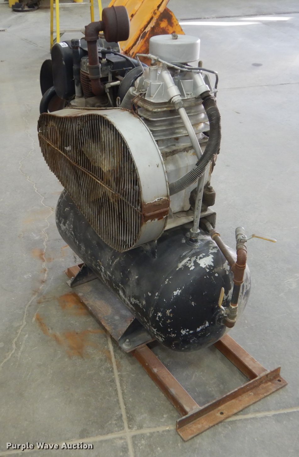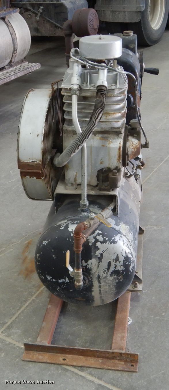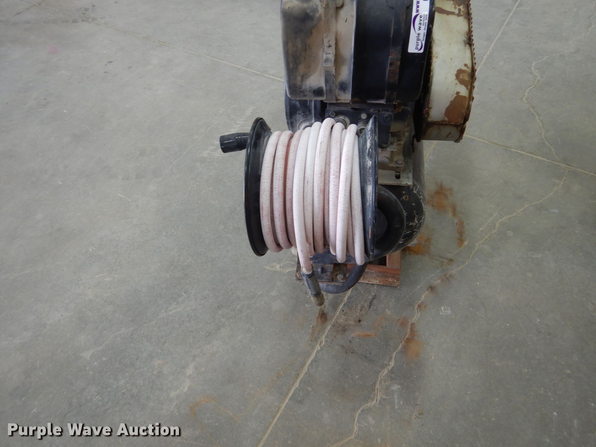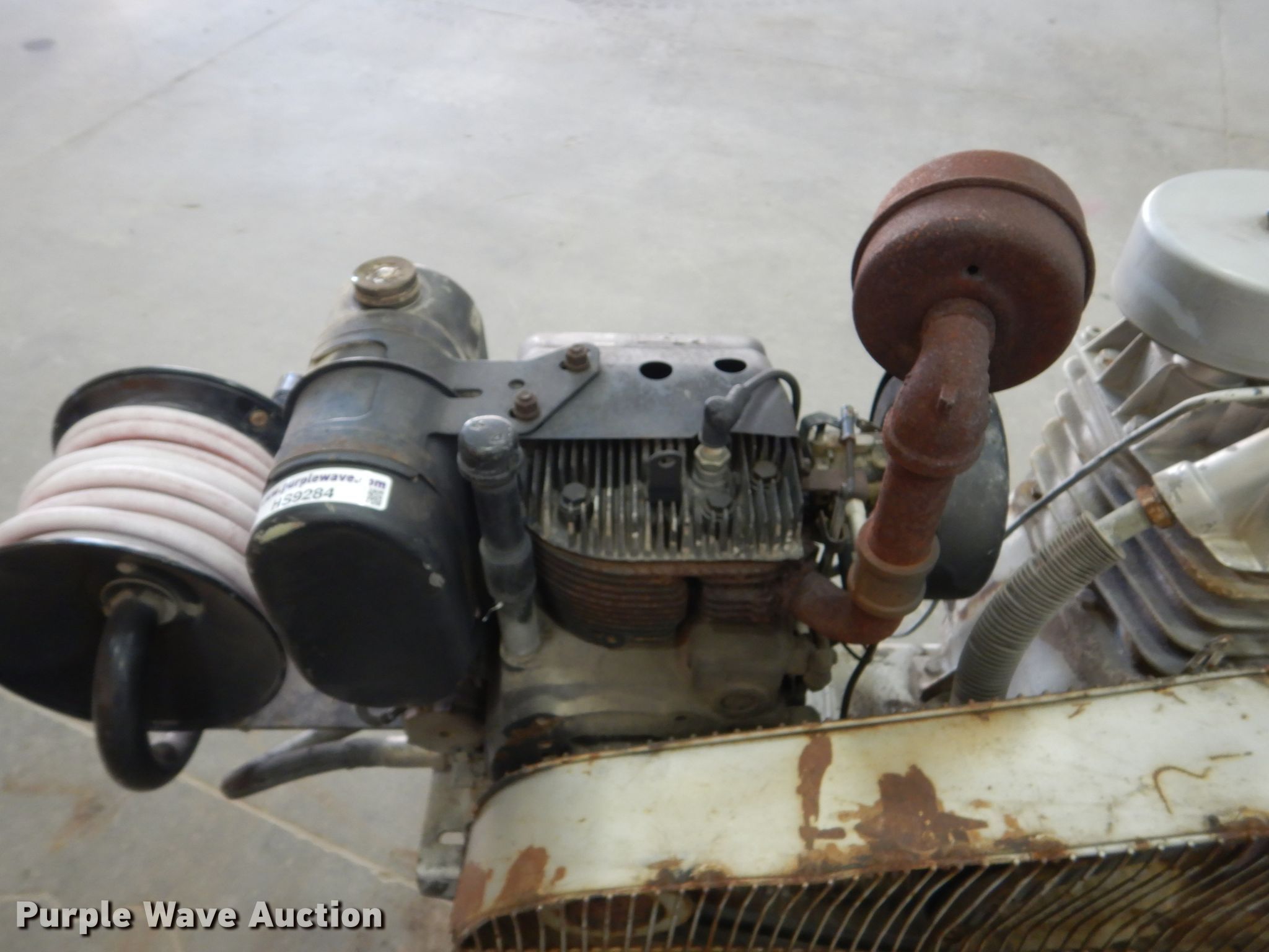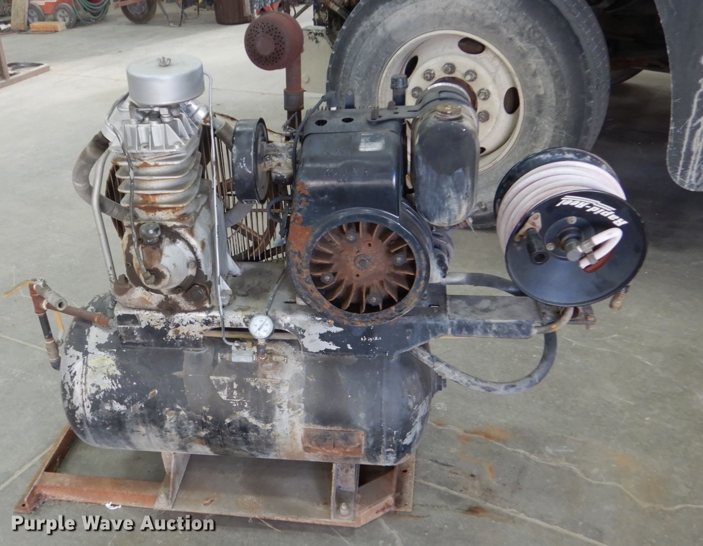 Purple Wave is selling a used Air Compressor in Iowa. This item is a Air compressor pump with the following: Kohler single cylinder gas engine, Hose, Reel