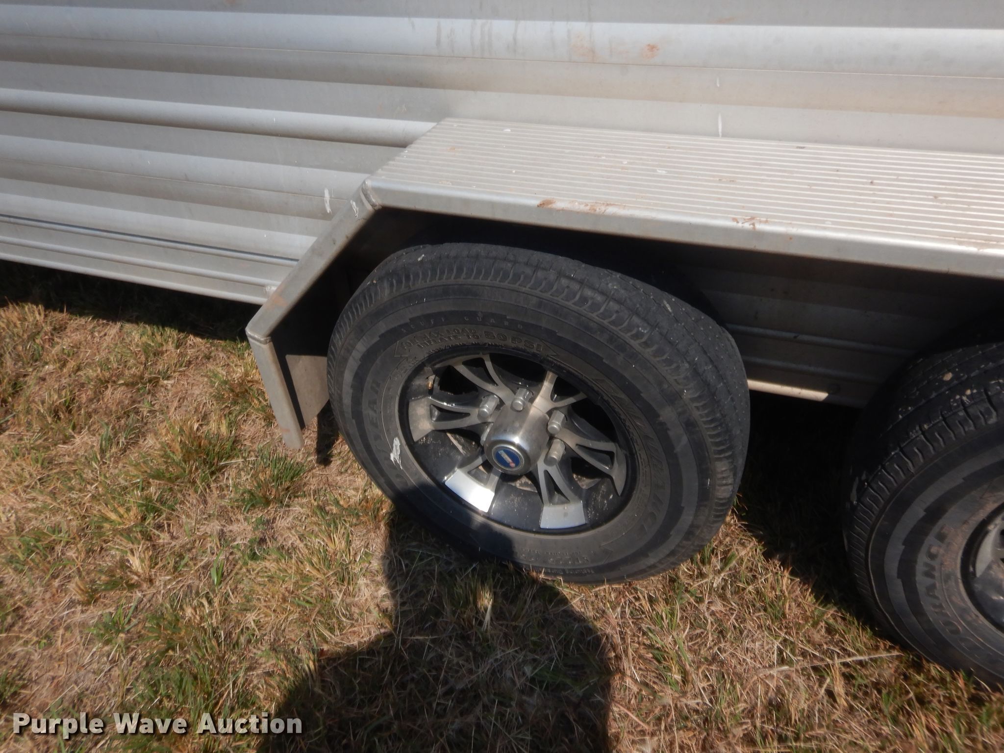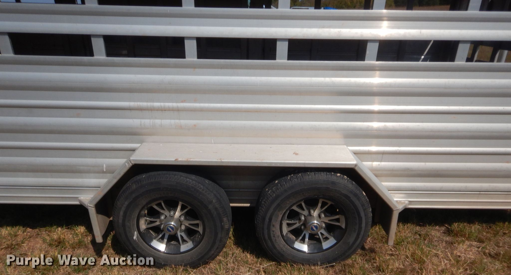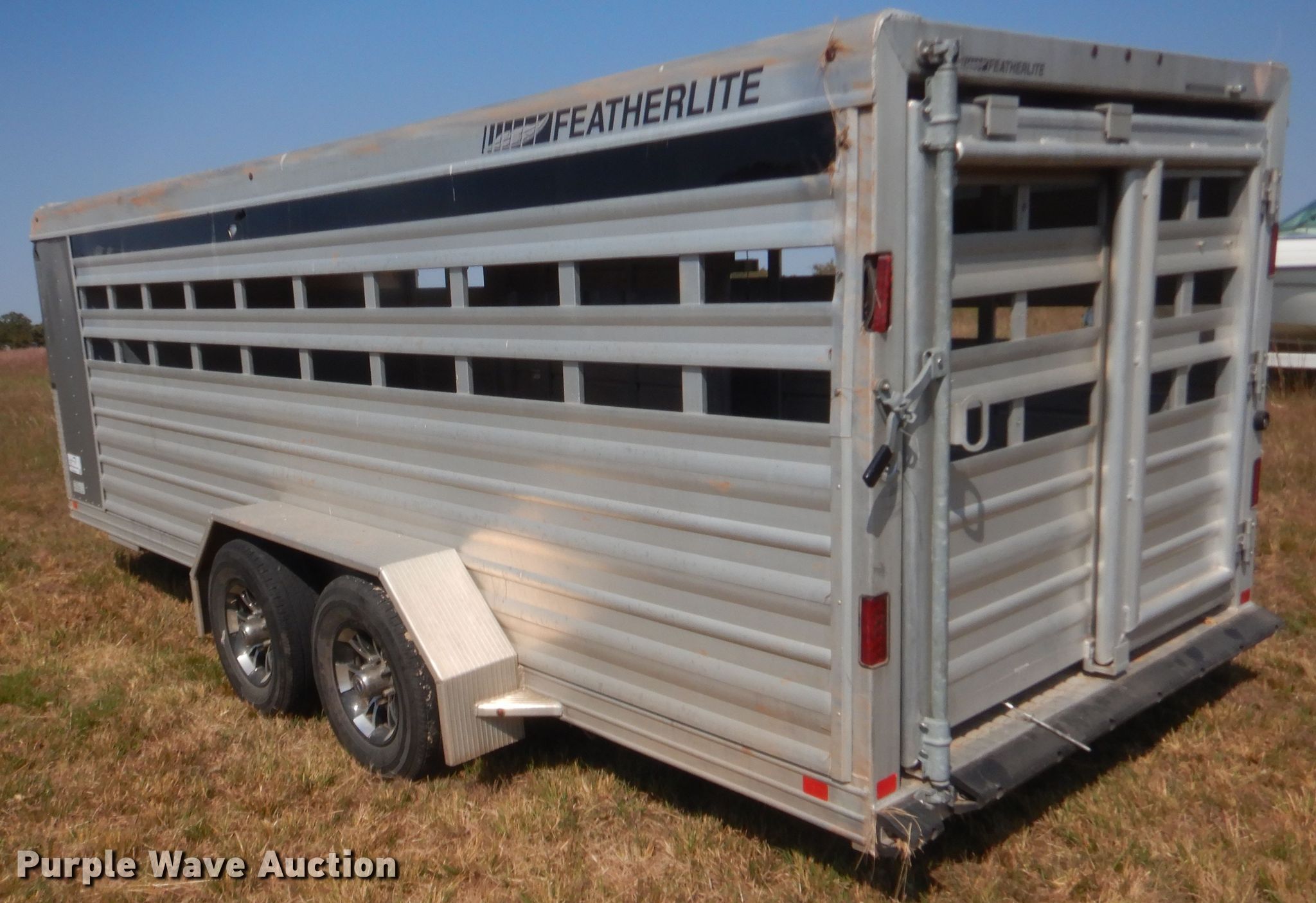 Purple Wave is selling a used Livestock Trailer in Oklahoma. This item is a 2018 Featherlite 8107-6716-STD livestock trailer with the following: 24'L x 102"W overall, 19'L x 79"W body, 5'3"H inside, (2) gates, 2" ball hitch, Spring suspension, Electric brakes, Tandem axle, 225/75R15 tires, GVWR 7,000 lbs, One gate unattached, but included in trailer, Collision damage, Insurance salvage, Claim# 2020812860
