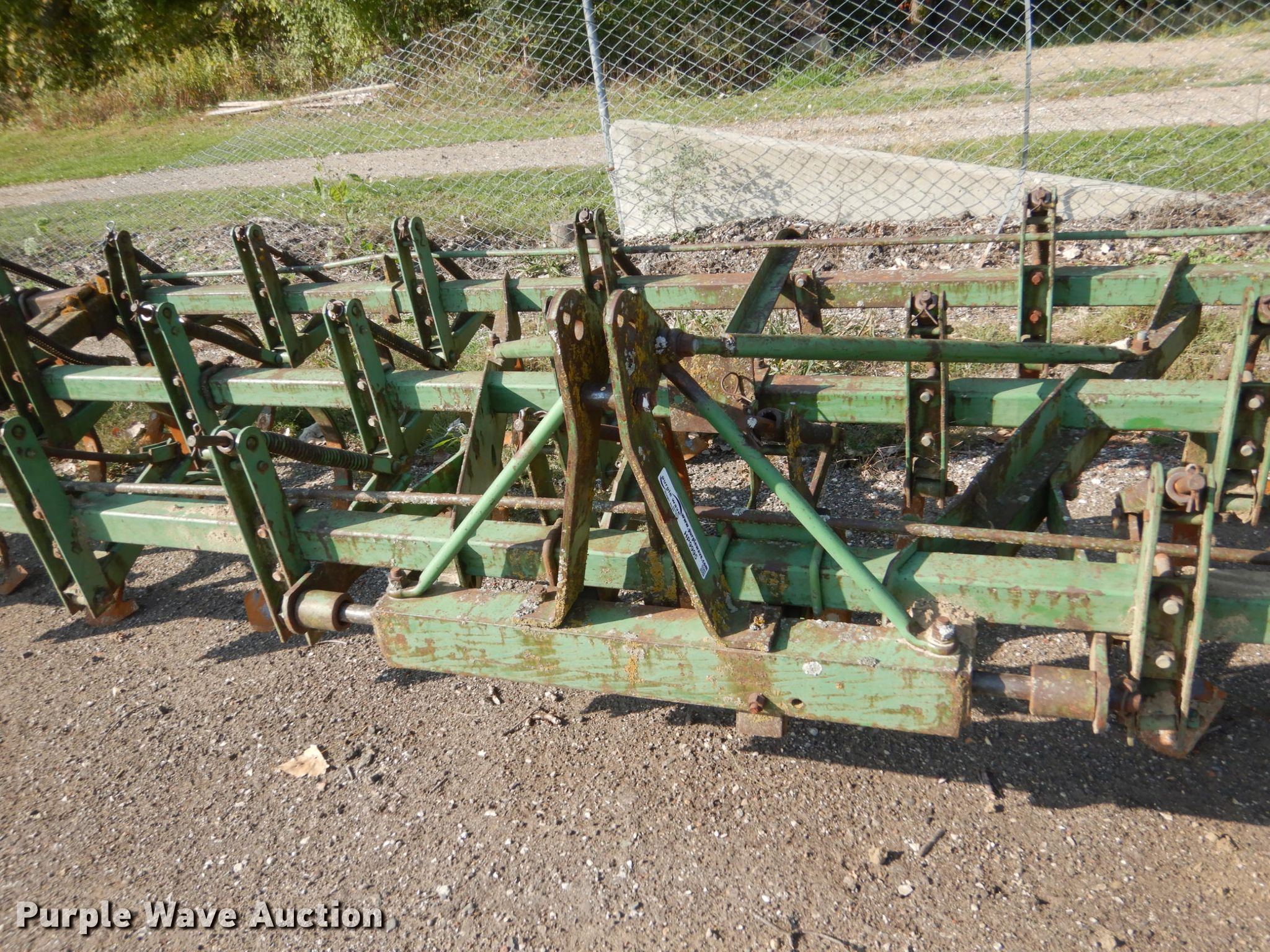 Purple Wave is selling a used Field Cultivator or Sweep Plow in Iowa. This item is a Sweep plow with the following: 18'5"W, (36) 6"W sweeps, Manual leveler, Three point hitch