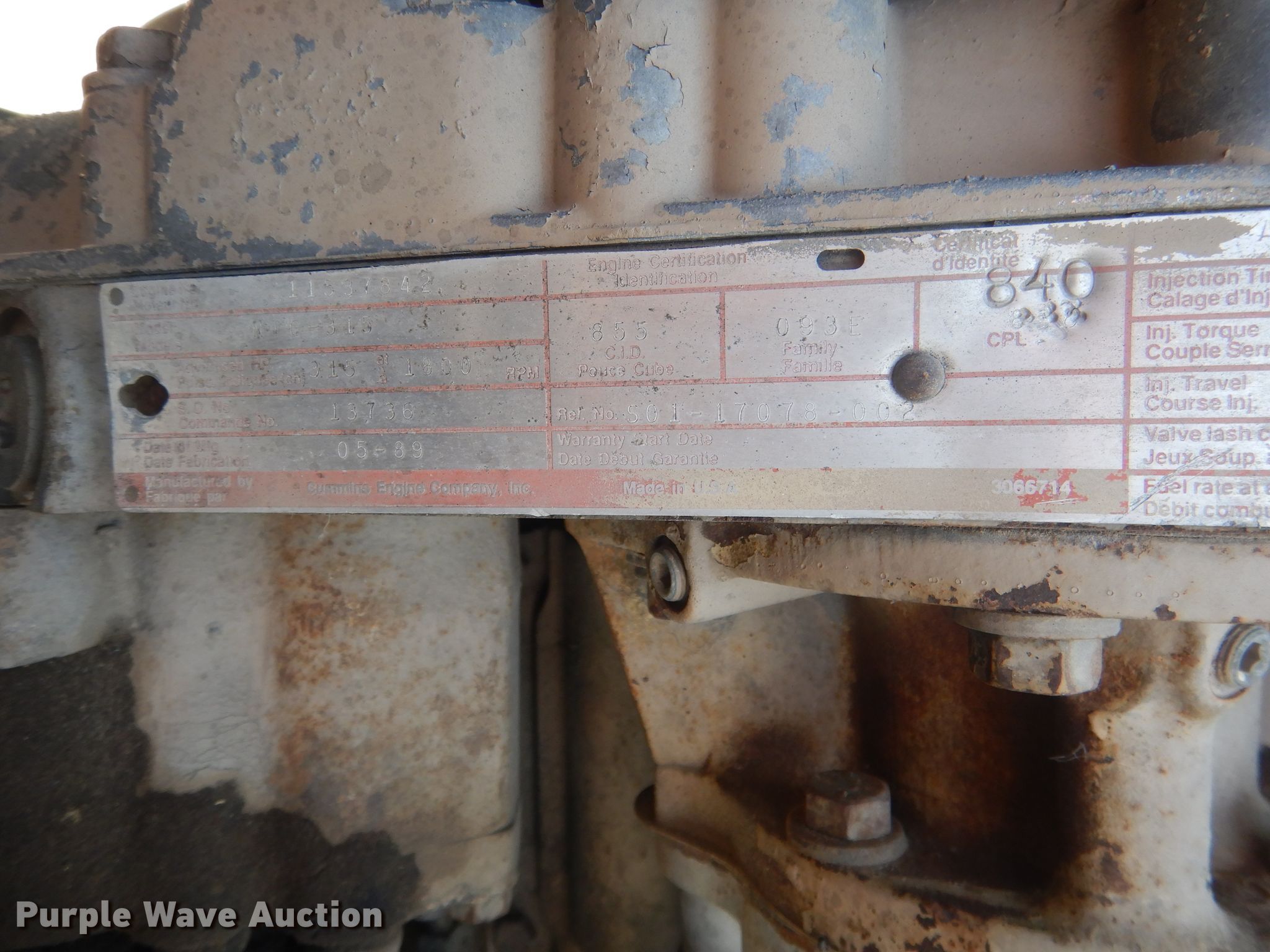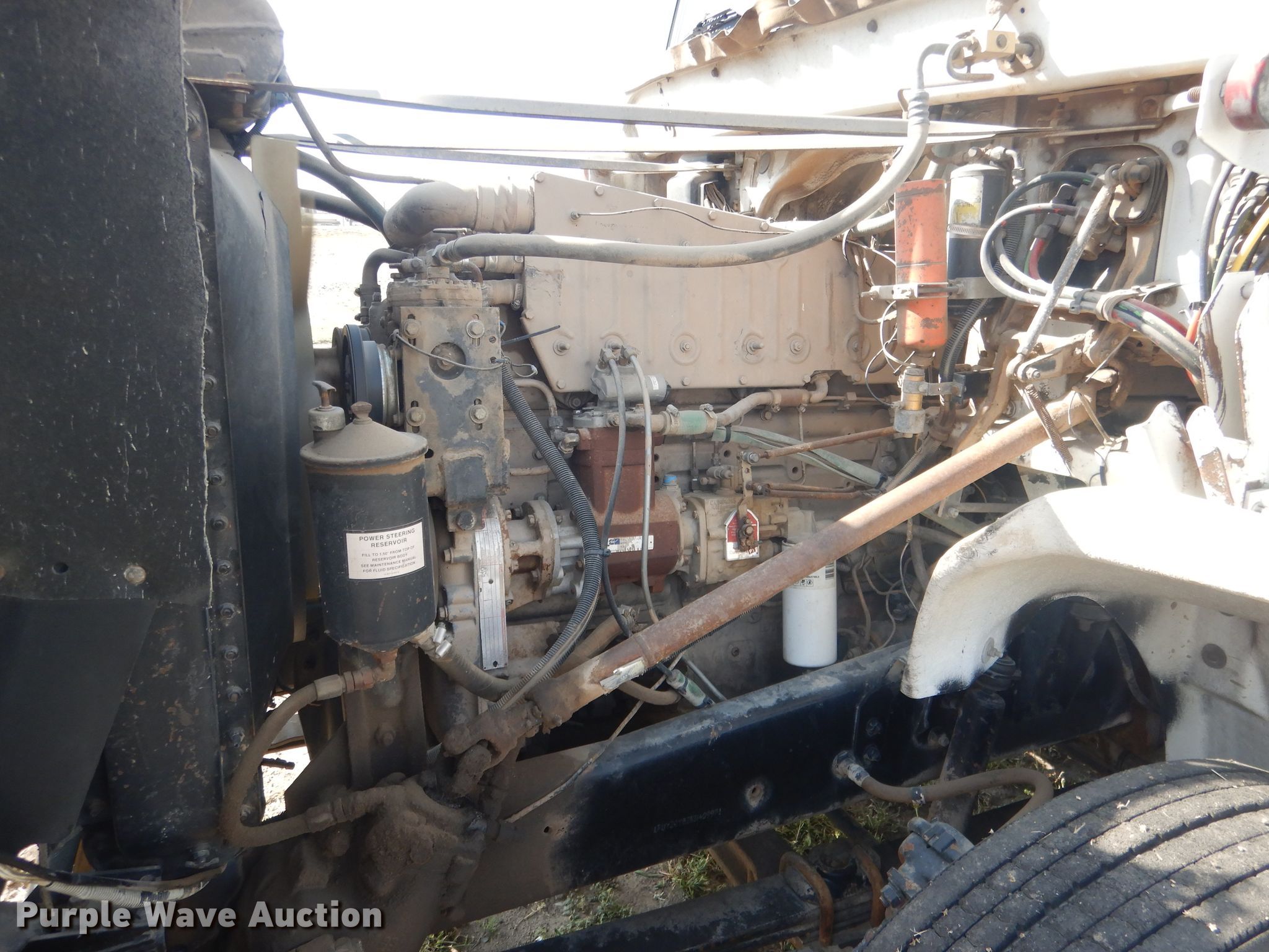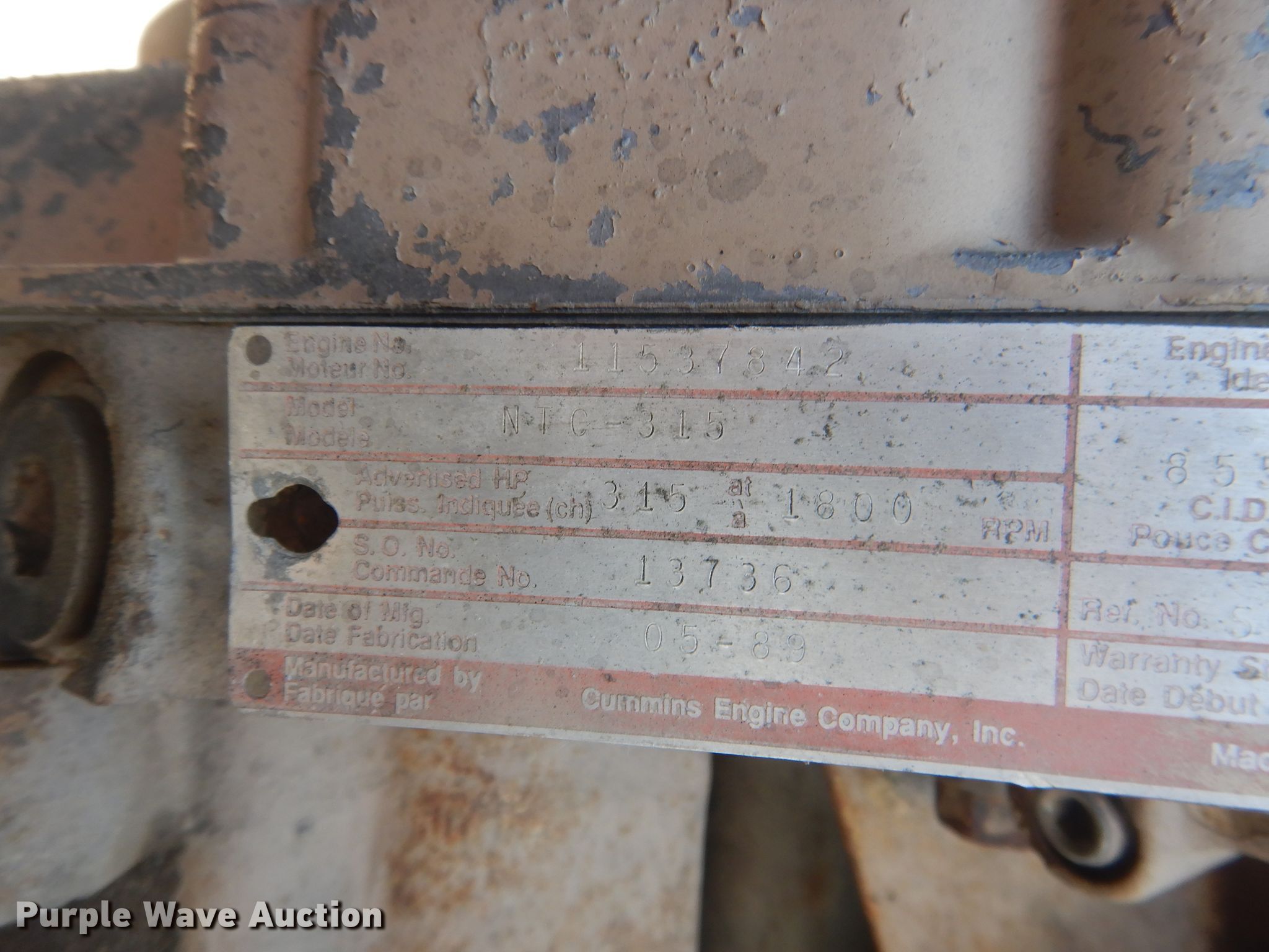 1989 Freightliner FLC112 semi truck. 119,152 miles on odometer. Engine Cummins NTC 855, Displacement: 14.0L, Cylinders: 6, Fuel type: Diesel, Engine brake. Transmission Eaton Fuller, Manual, Speed: 9. Chassis Axles: Tandem, Gear ratio: 3.90, Differential lock: Full, Suspension: Spring, Brakes: Air, PTO, Wet kit, Wheelbase: 150". Interior AC, Heat. Operational Deck plate: Steel, Fifth wheel type: Fixed, Fuel tank: Dual. Tires Size: 295/75R22.5. Nebraska title. 1FUYZCYB2KH409971. Western Resources Group. 3305 W H St. Ogallala, NE 69153