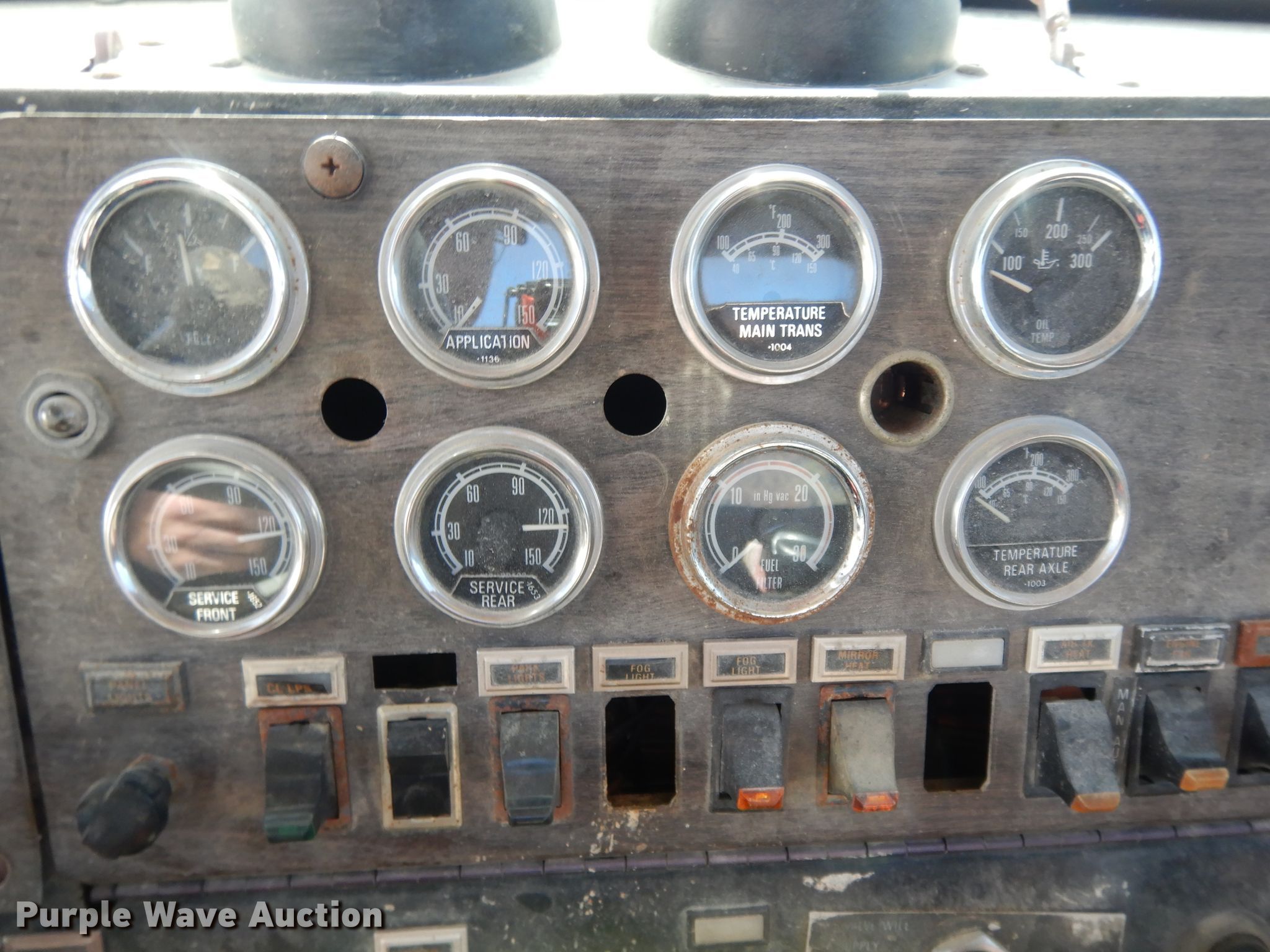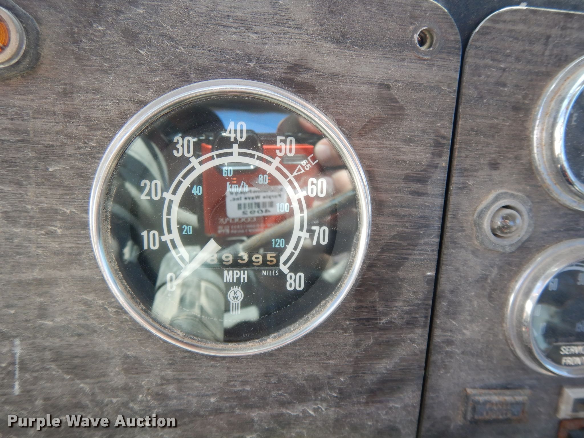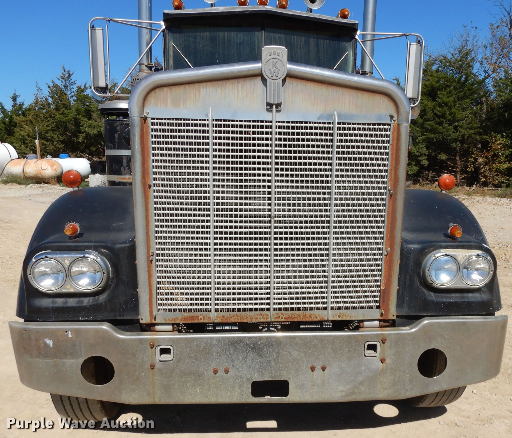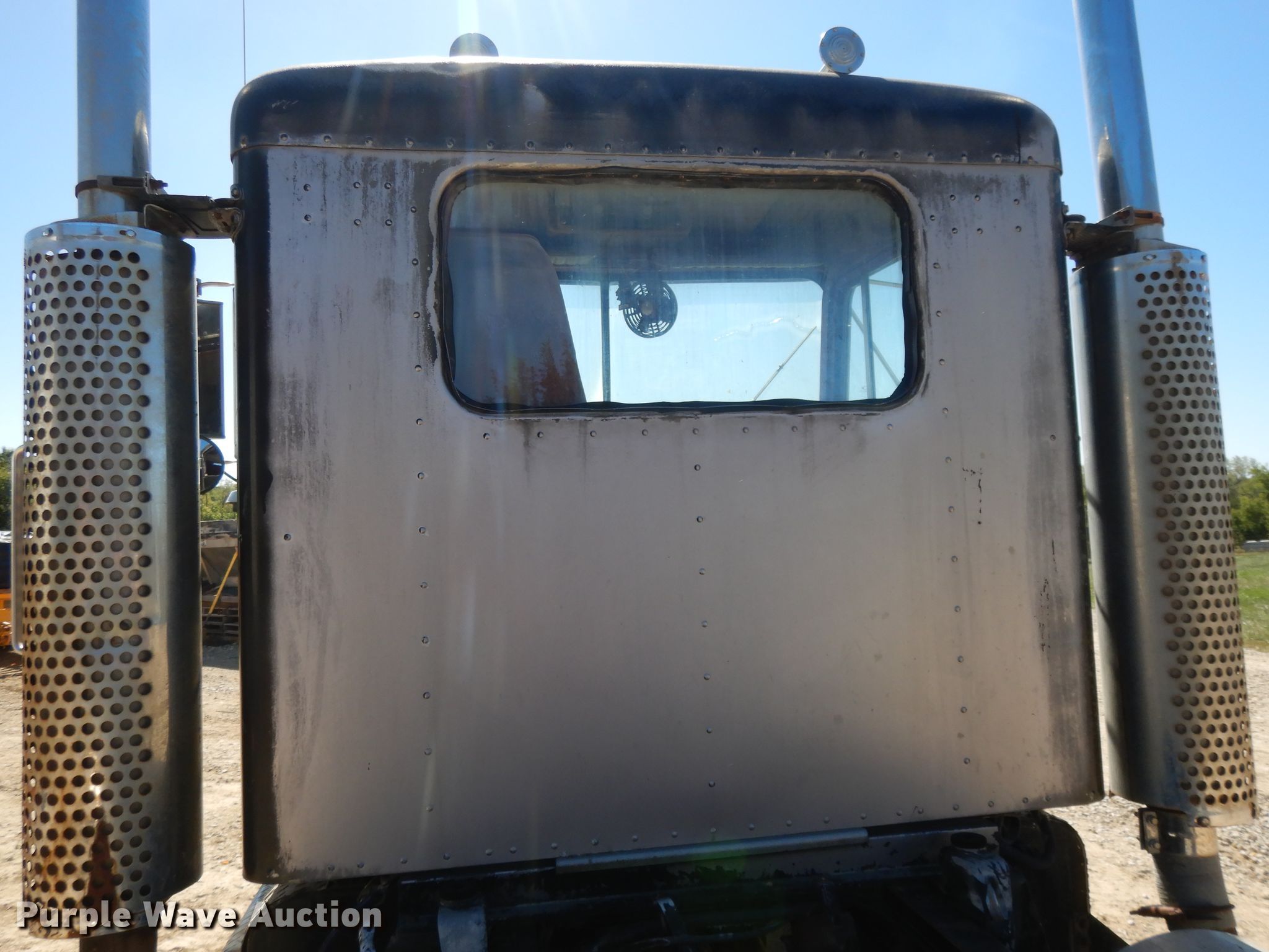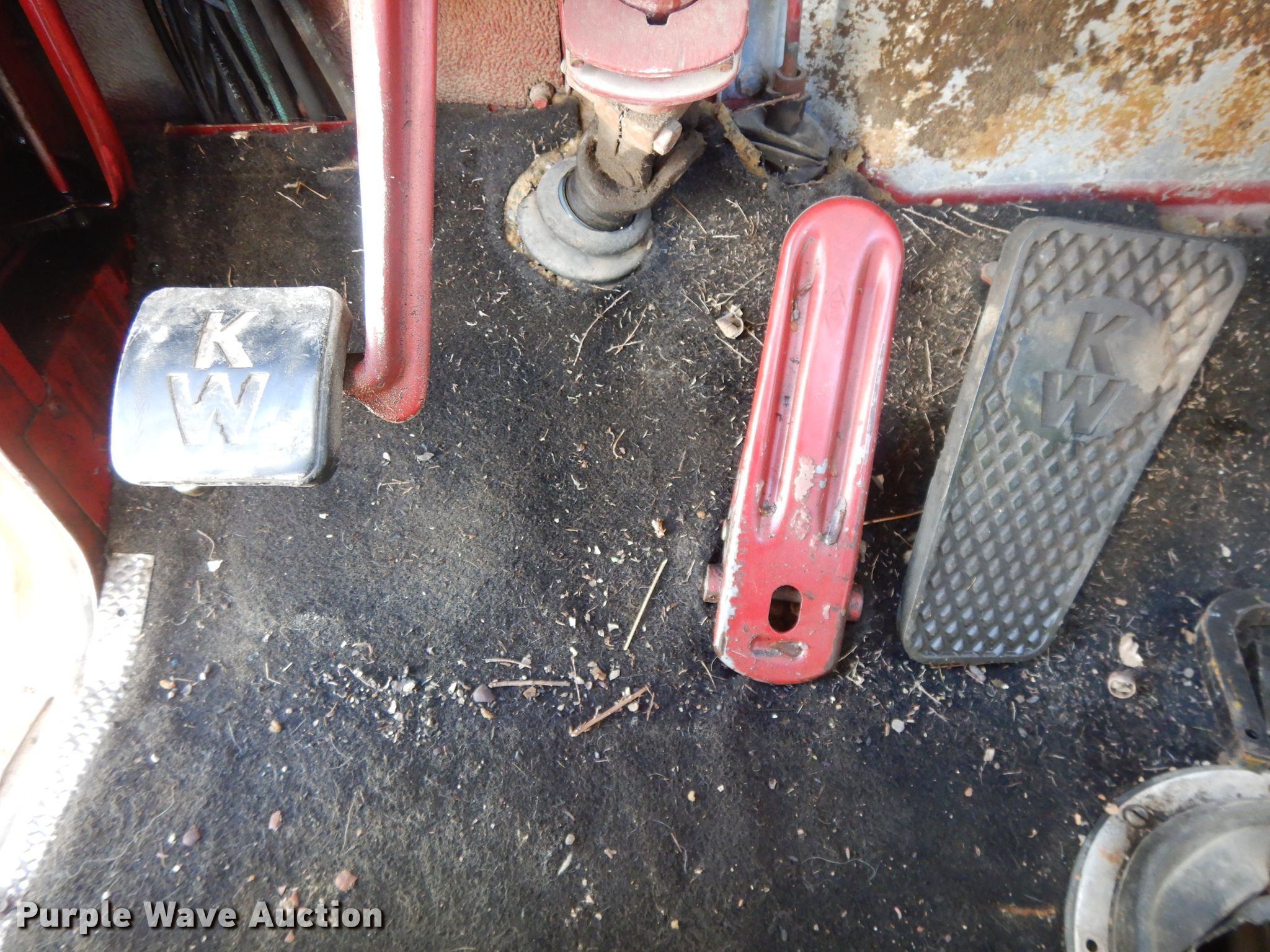 1980 Kenworth W900 semi truck. 289,395 miles on odometer. Engine Cummins, Cylinders: 6, Fuel type: Diesel. Transmission Eaton Fuller, Manual, Speed: 10. Chassis Axles: Tandem, Differential lock: Inter-axle, Suspension: Air, Brakes: Air, Wheelbase: 222". Interior Heat, Heated mirrors. Operational Fifth wheel type: Air operated, Fuel tank: Dual. Tires Front: 285/75R24.5, Rear: 275/80R24.5. Notes Windshield chipped or cracked. Kansas antique title. 184187S. Price Excavating. Baldwin City, KS 66006