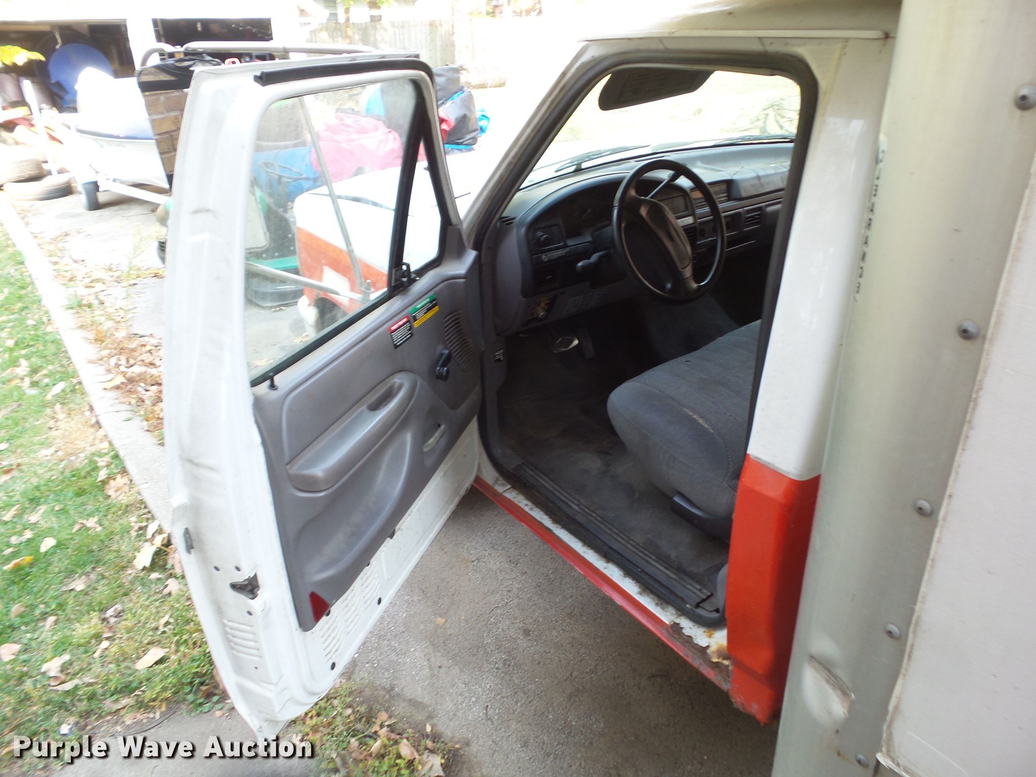 This 1997 Ford F350 XL box truck will sell to the highest bidder regardless of price.