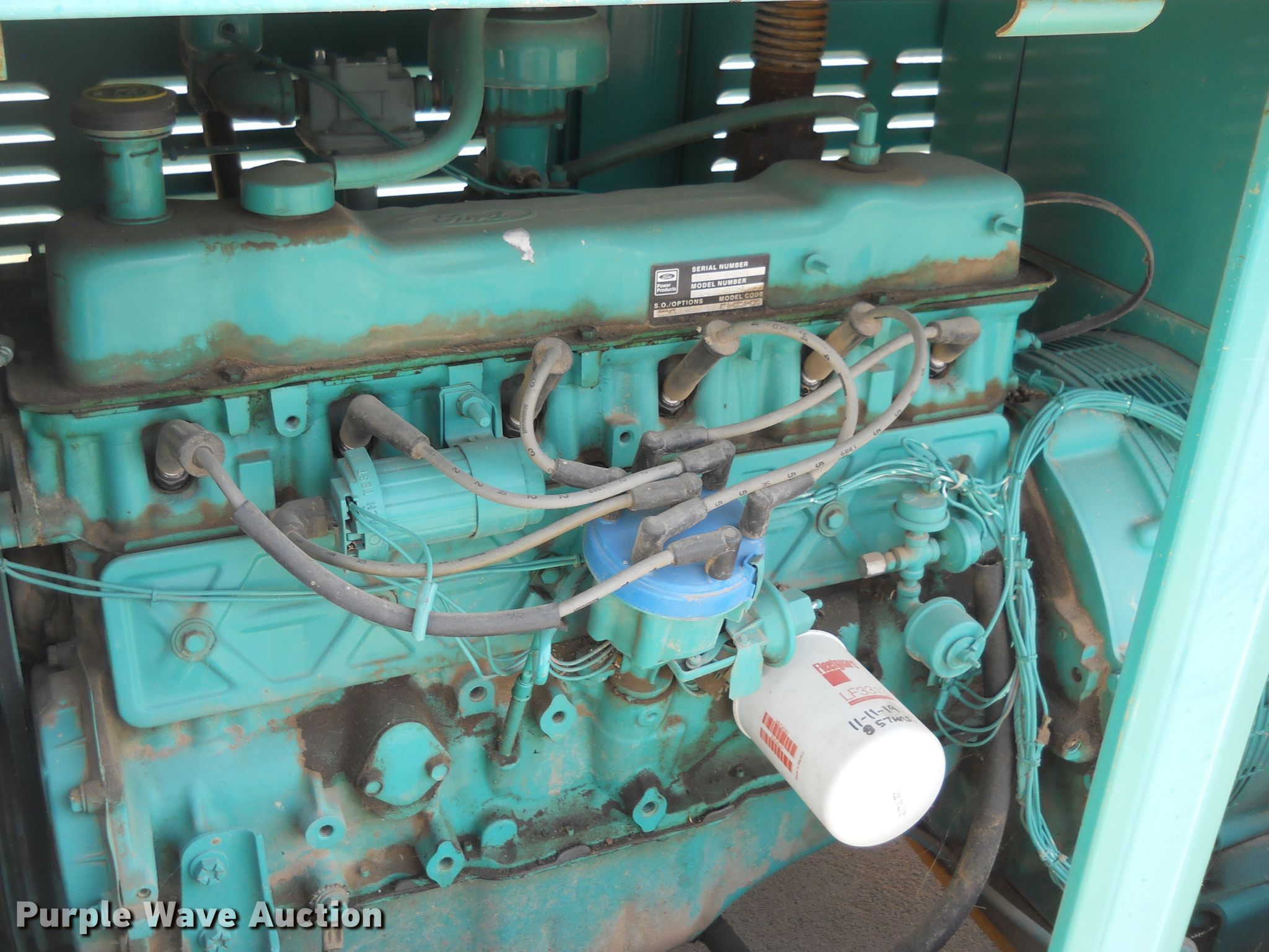 Onan 30EK-L-34464R generator. 873 hours on meter, Serial: G890254760. Engine Ford CSG6491-6005-A, Serial: 12774K20TR, Cylinders: 6, Fuel type: Natural gas. Operational kVA: 37.5, kW: 30, Phase: Single, Three, Electric start. Notes No battery included. Cunningham Telephone Co, Inc.. 220 W Main St. Glen Elder, KS 67446