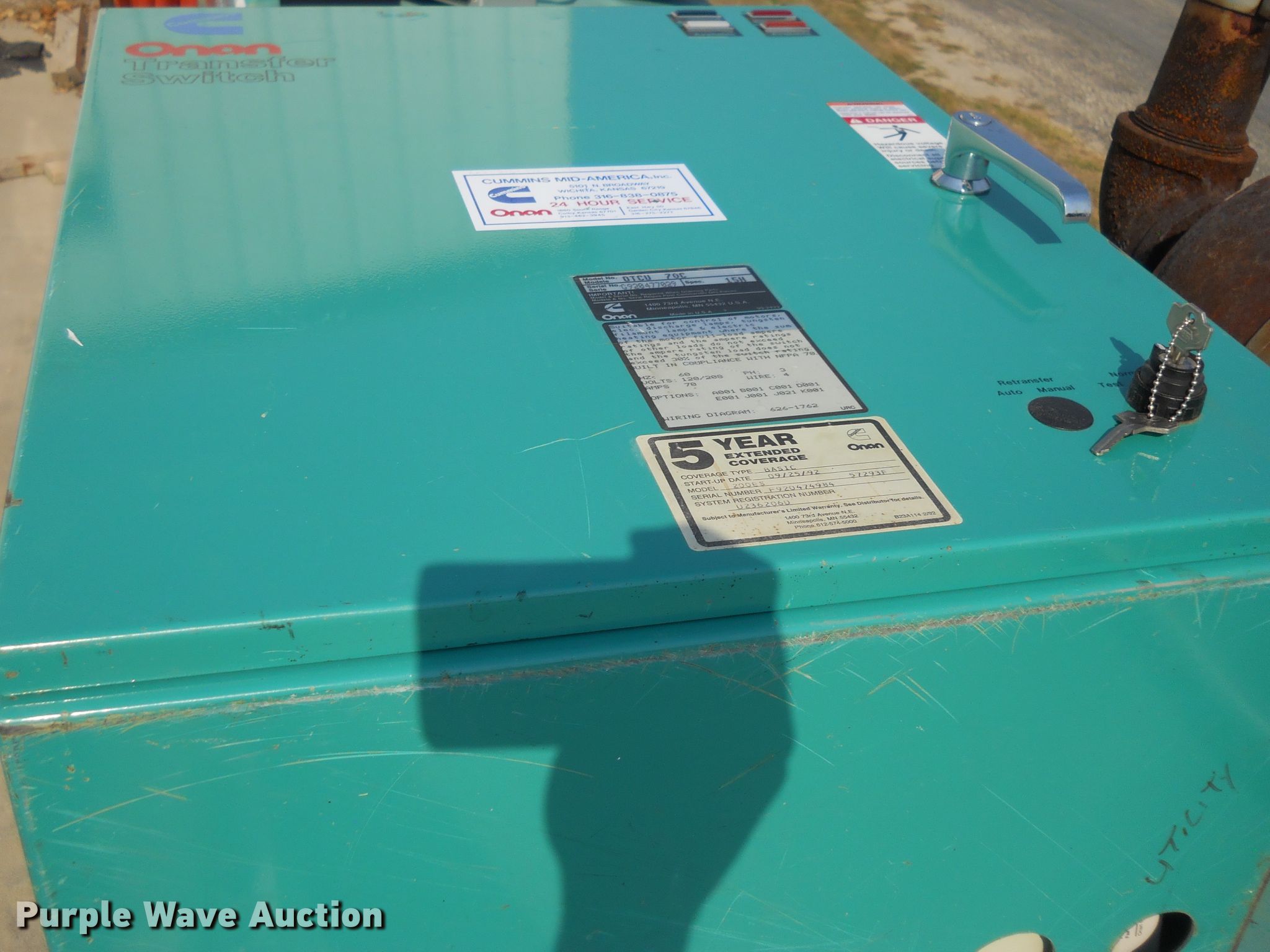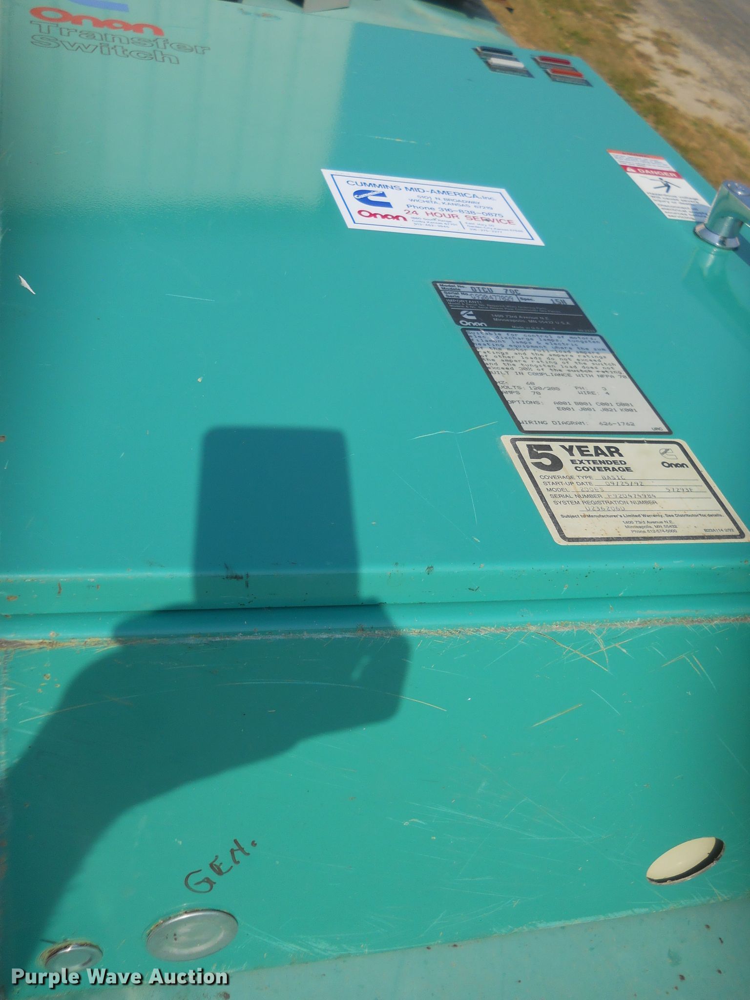 Purple Wave is selling a used Generator Set in Kansas. This item is a Onan 30EK-L-34464R generator with the following: 873 hours on meter, Serial: G890254760