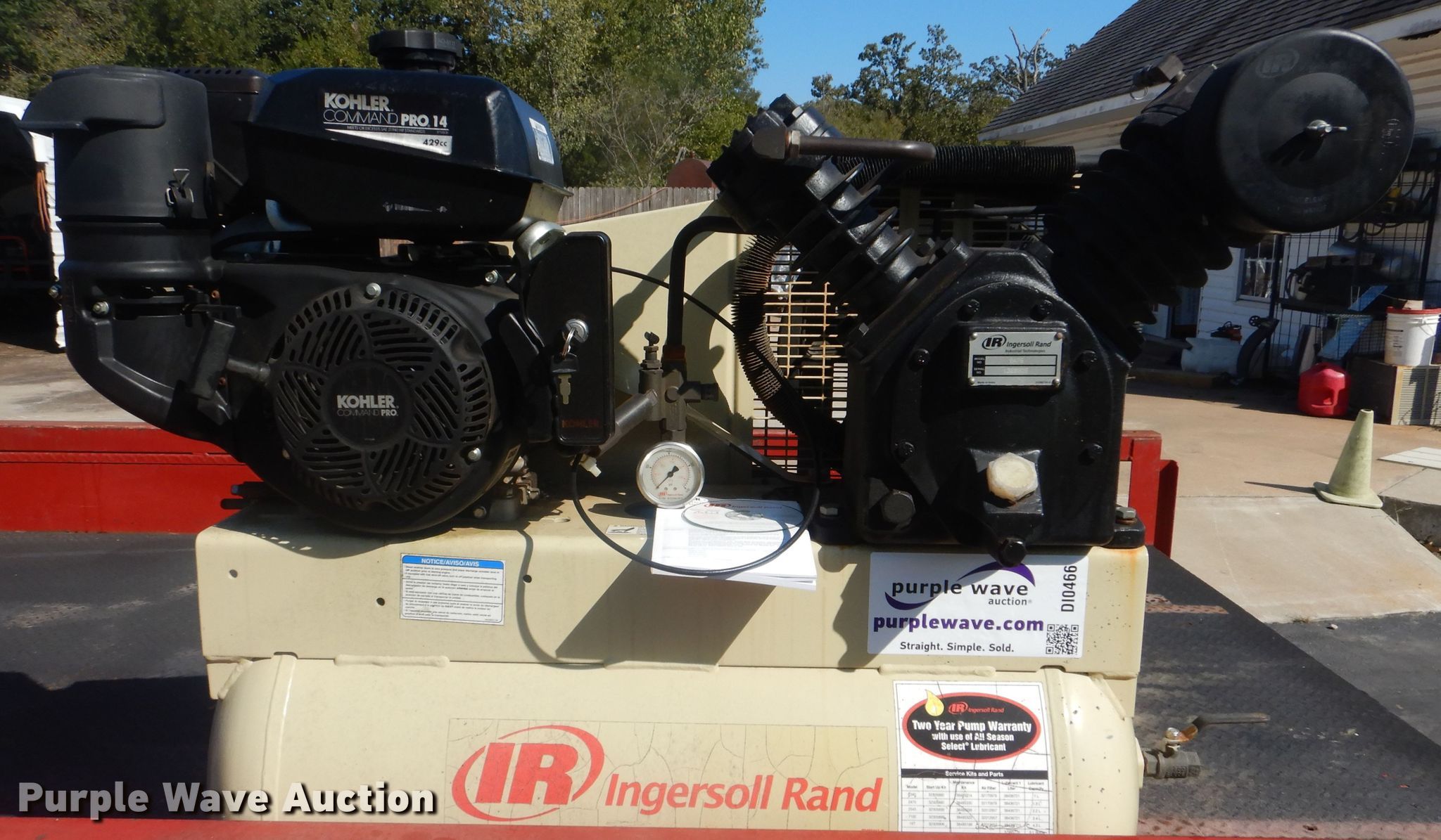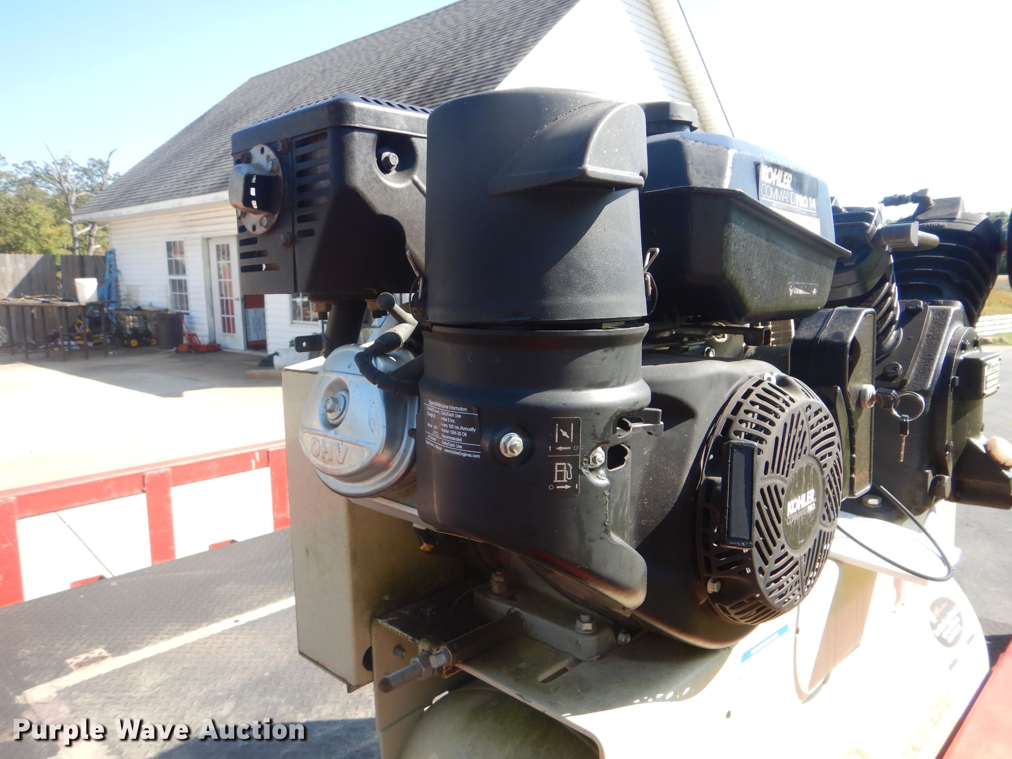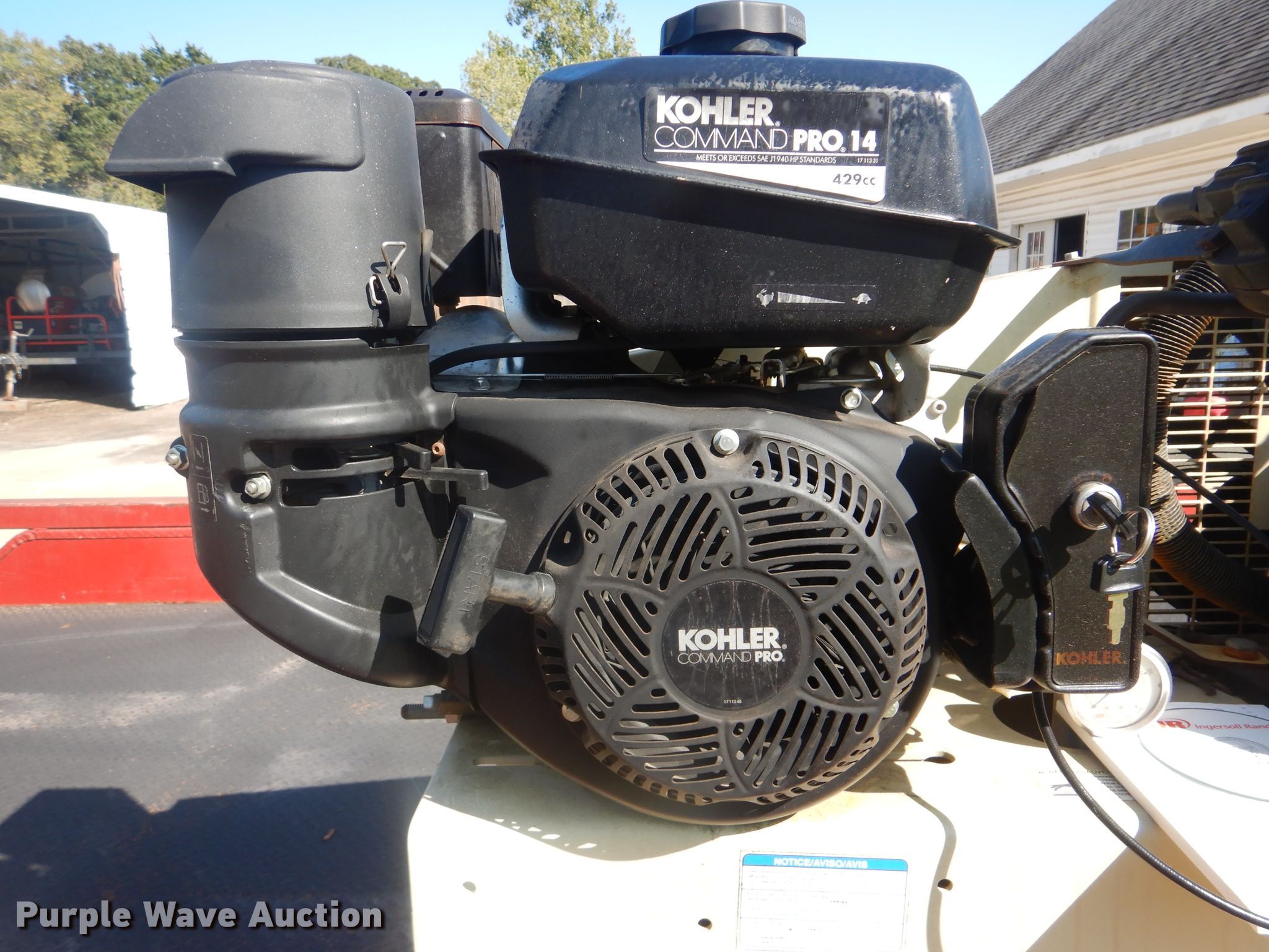 Ingersoll Rand 2475 air compressor. Serial: 1329329. Engine Kohler Command Pro 14, Displacement: 429cc, Cylinders: 1, Fuel type: Gas. Operational PSI: 175. Notes Manuals & DVD included, Trailer not included. Bristow, OK 74010