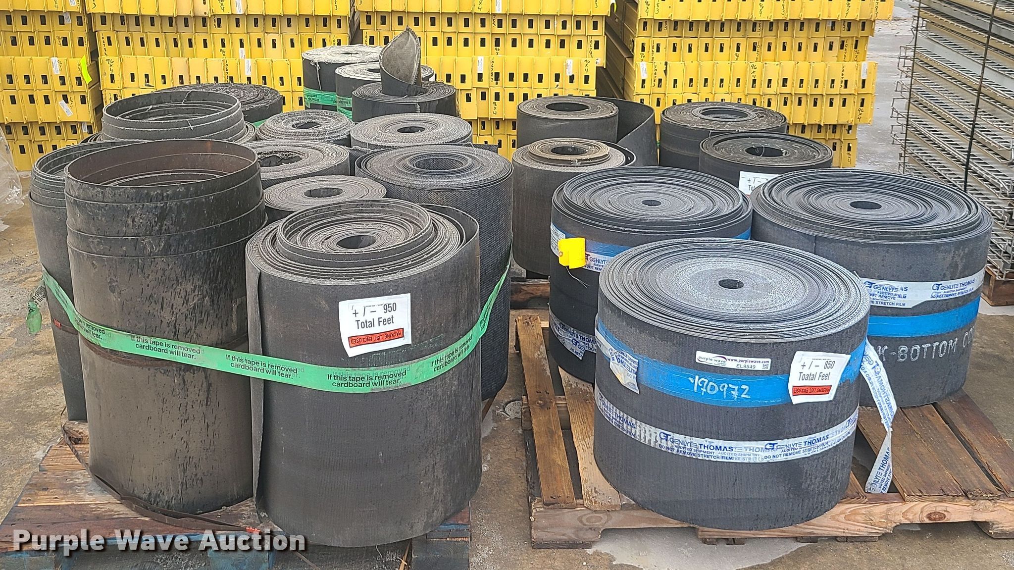 Purple Wave is selling a used Tools in Missouri. This item is a Conveyor belts with the following: 12"W, 16"W, 18"W, 24"W, Unused