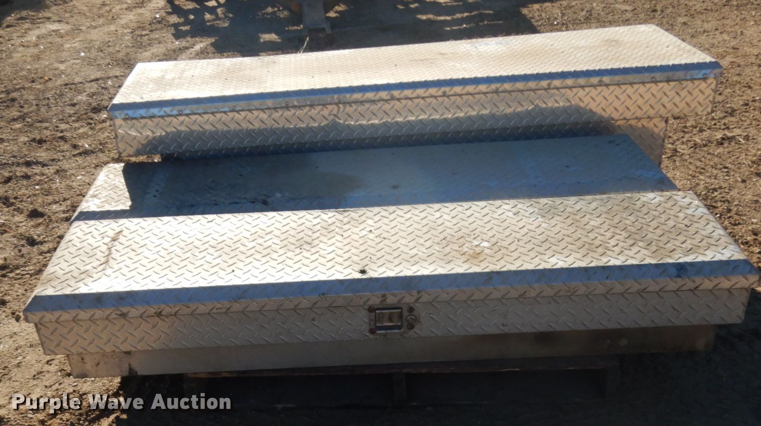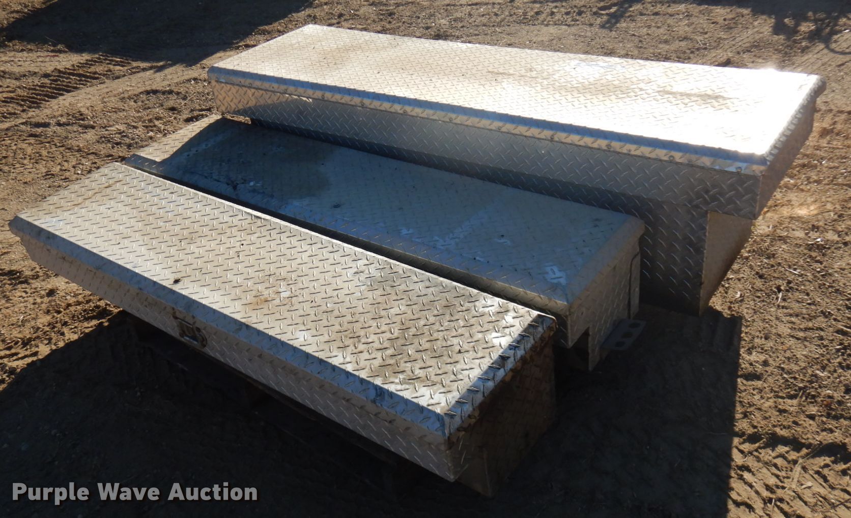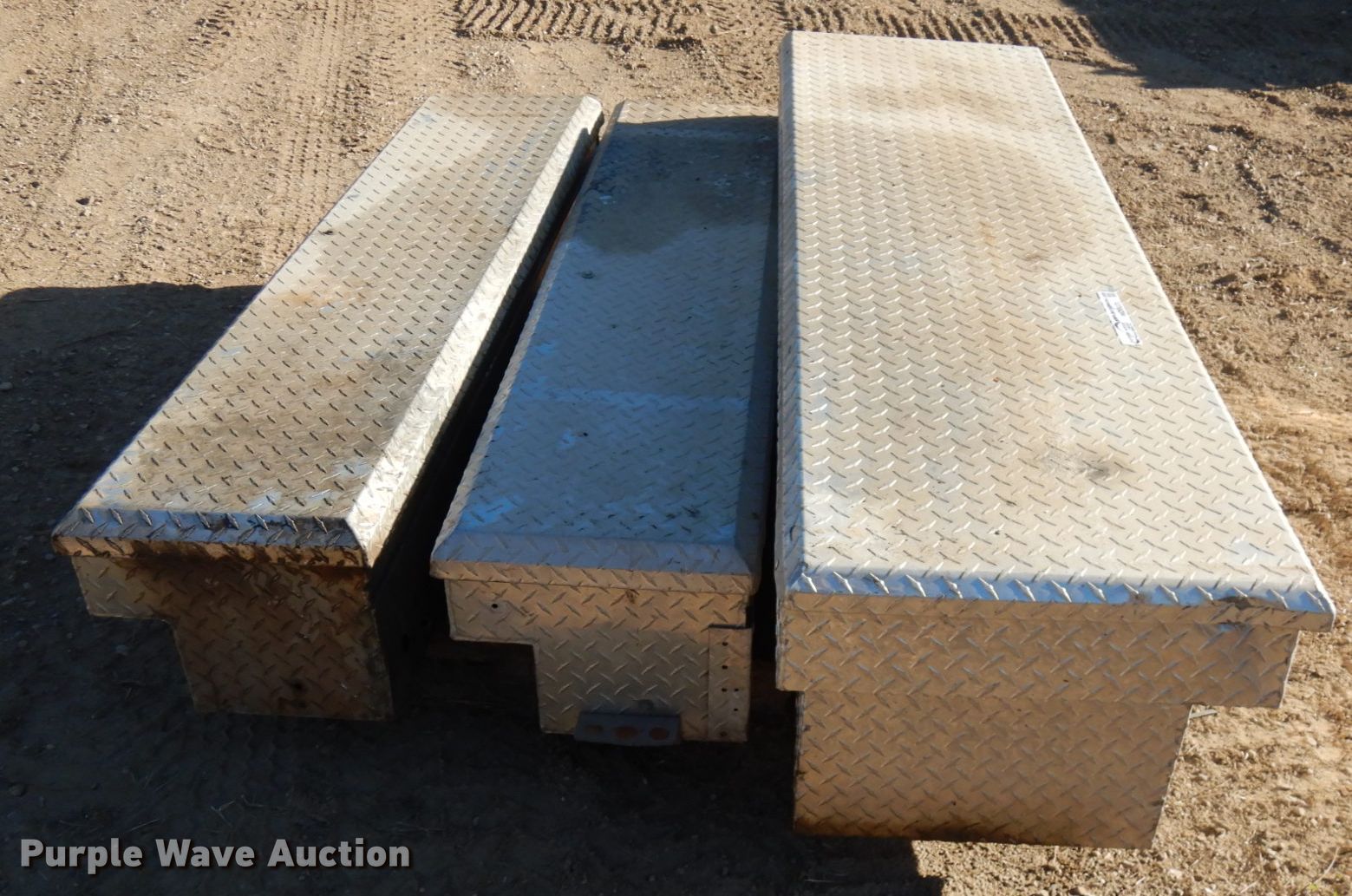 Purple Wave is selling a used Automotive Parts or Acces. in Wisconsin. This item is a (3) toolboxes with the following: 71"L x 21"D cross bed toolbox, (2) side boxes, 62"L x 15"D