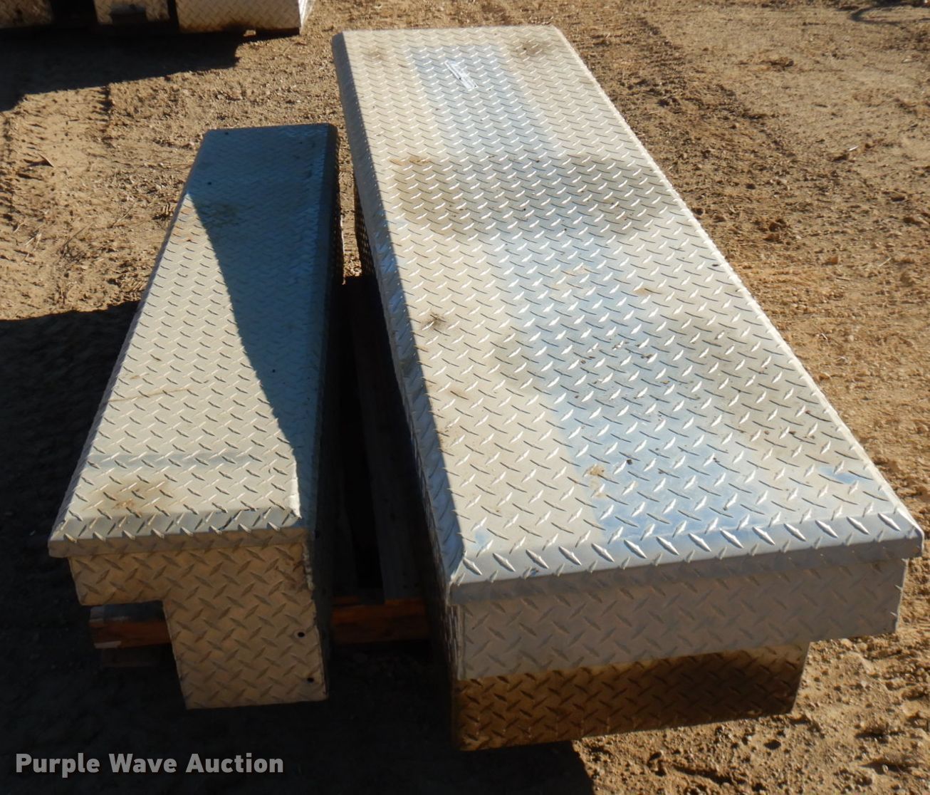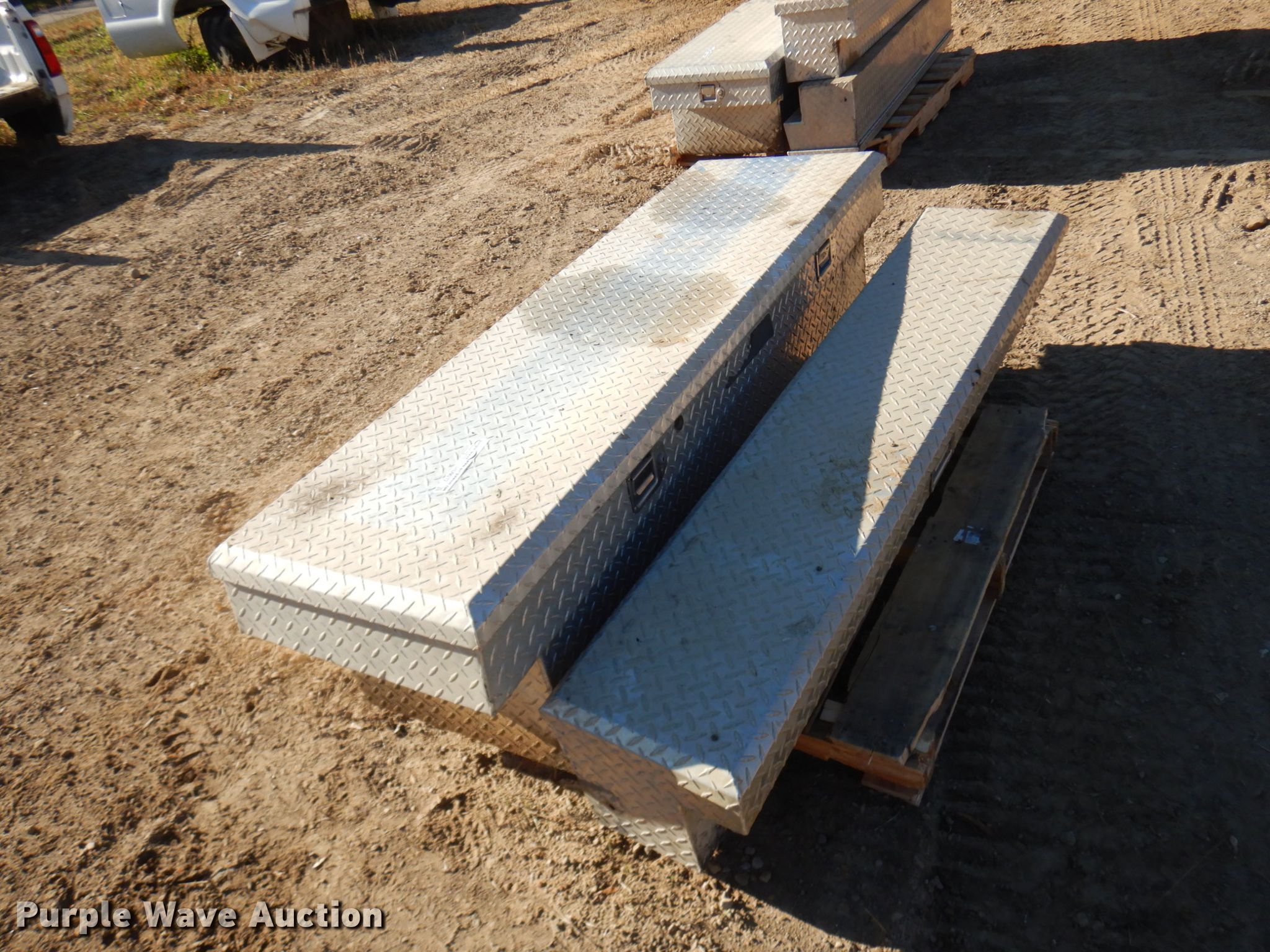 Purple Wave is selling a used Automotive Parts or Acces. in Wisconsin. This item is a (2) toolboxes with the following: 68"L x 21"D cross bed toolbox, 60"L x 11"D side toolbox