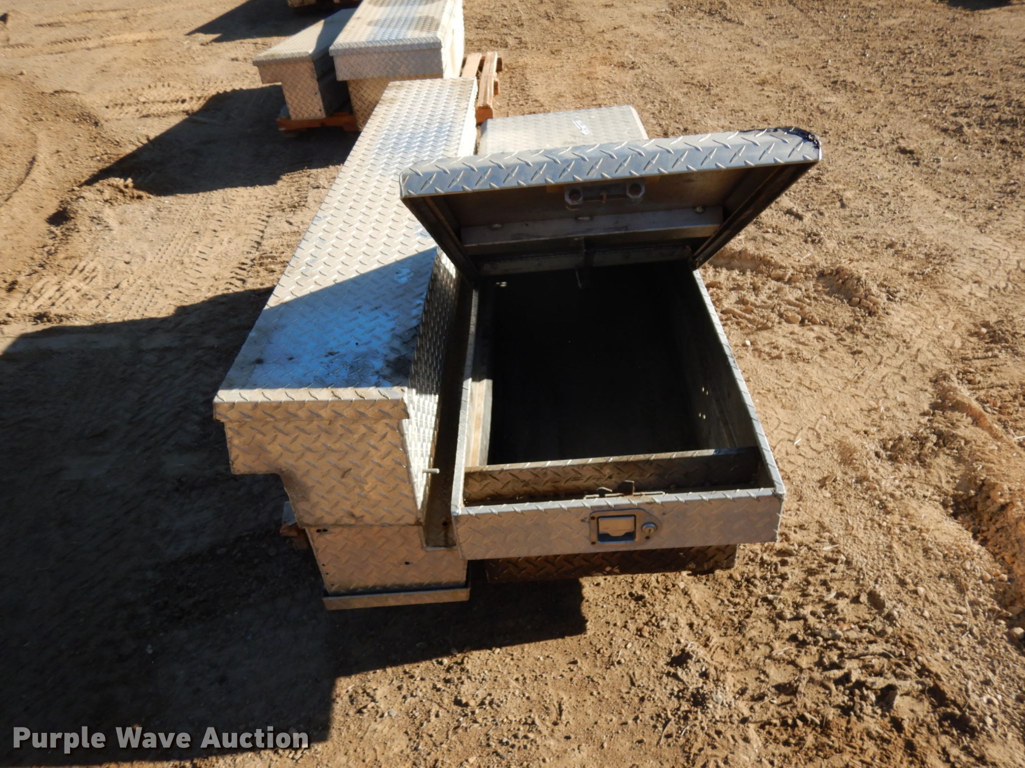 Purple Wave is selling a used Automotive Parts or Acces. in Wisconsin. This item is a (3) toolboxes with the following: 71"L crossbed toolbox, (2) 65"L side toolboxes