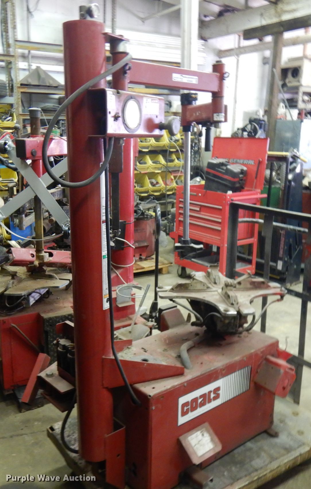 Purple Wave is selling a used Tools in Iowa. This item is a Coats 7065AX rim clamp tire machine with the following: 6" to 22" diameter exterior rim capacity, 8" to 24" diameter interior rim capacity, 14" max rim width, 50" max tire diameter
