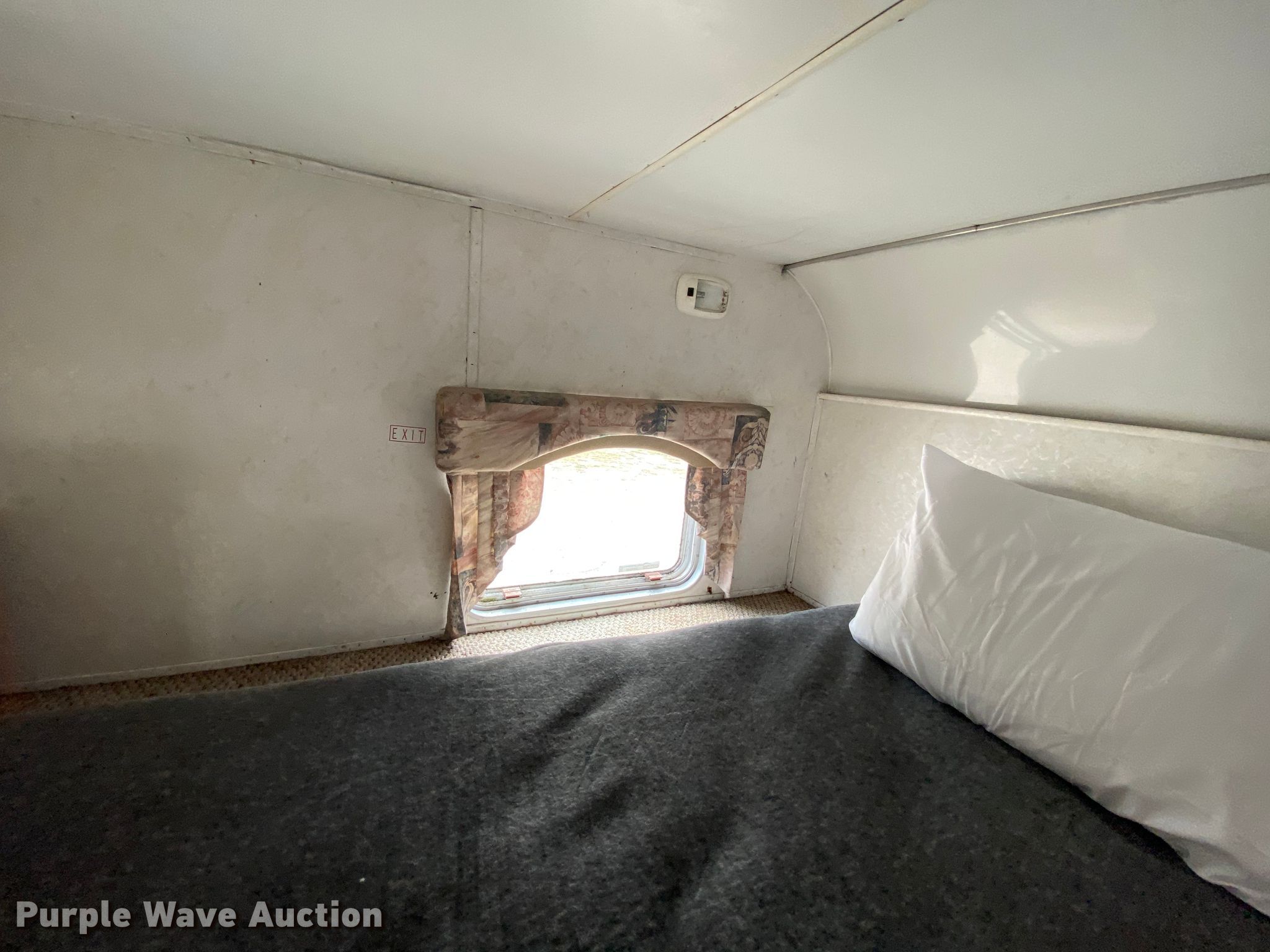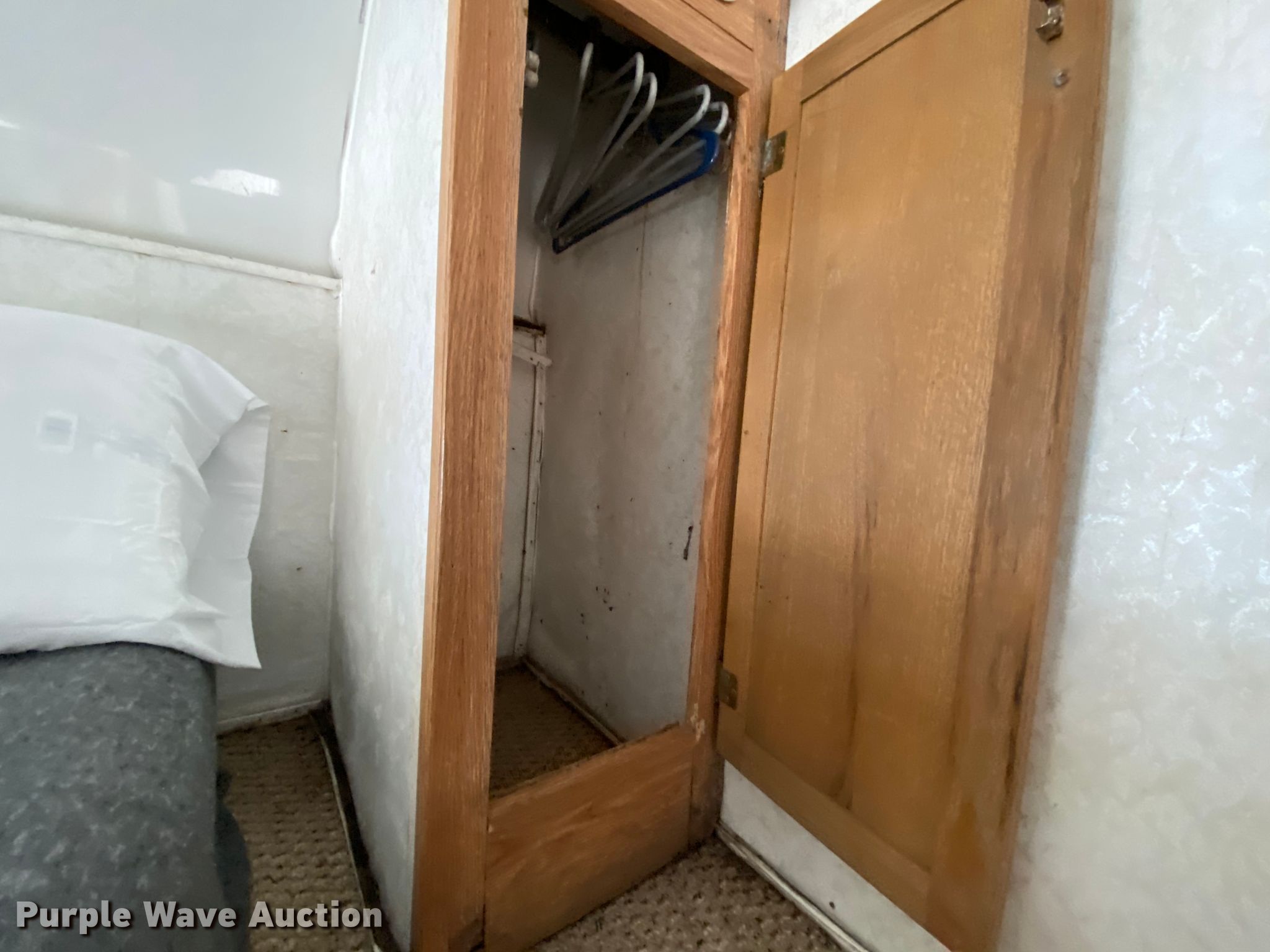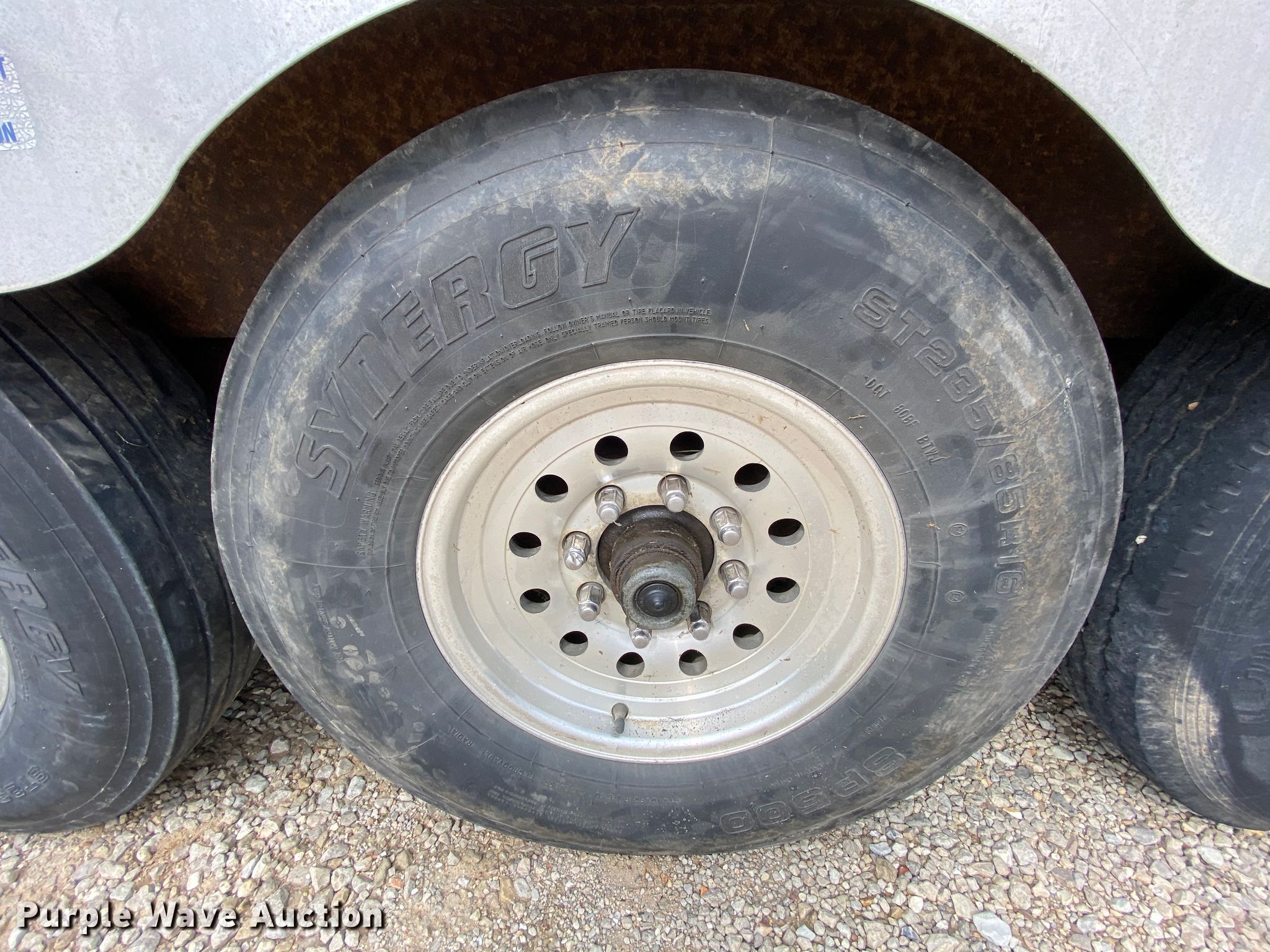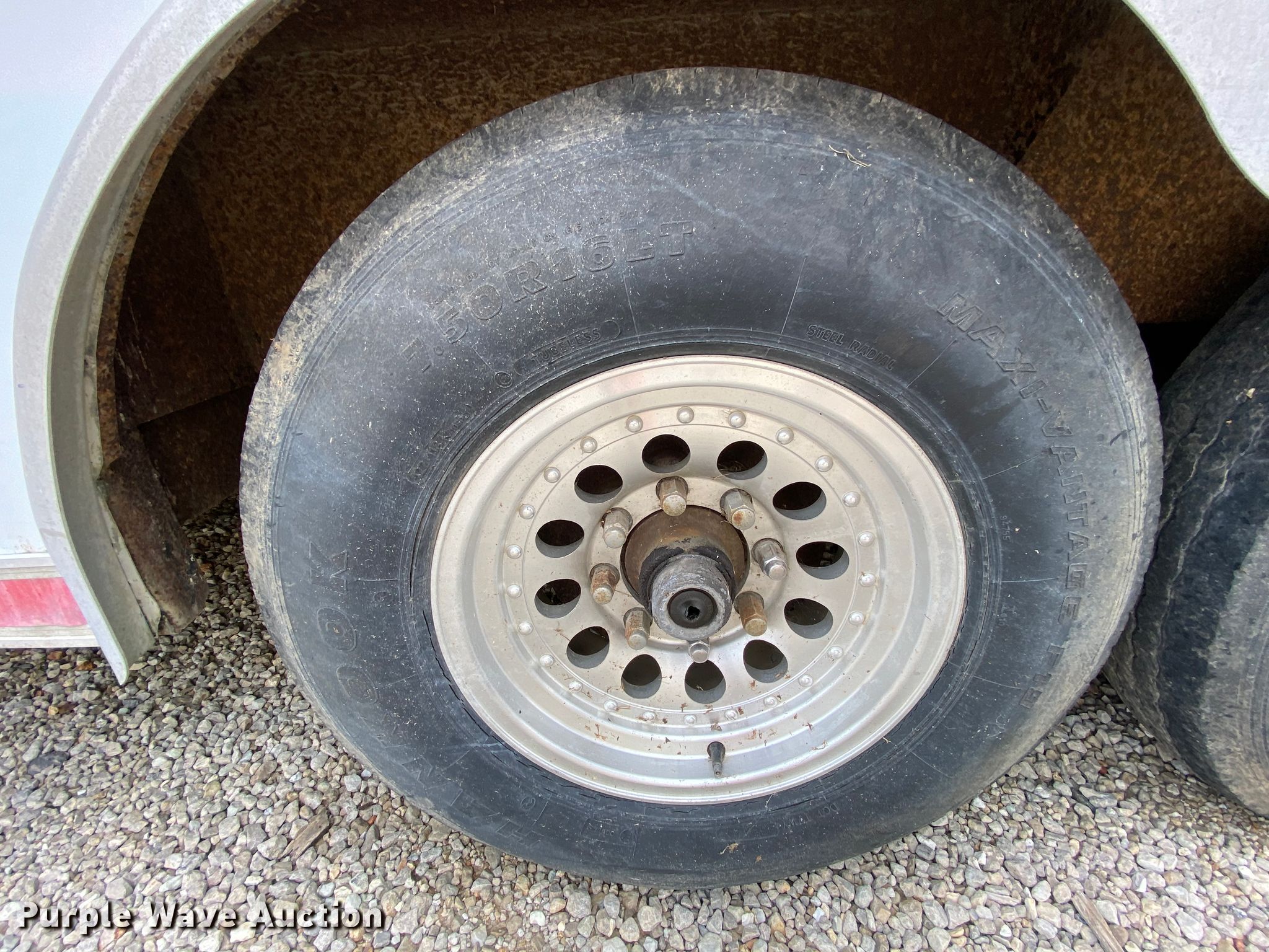 Purple Wave is selling a used Enclosed Cargo Trailer in Missouri. This item is a 2001 Pace American GT Shadow enclosed cargo trailer with the following: 48'L overall, 42'L x 8'W body, 20'L cargo area, (2) Coleman Mack AC unit, (2) 80 gallon fresh water tanks, 28'L living quarters, Queen bed, Fold out couch, (2) sets of bunk beds, Refrigerator/freezer, Stove, (2) sinks, Microwave, Full shower insert, Inverter box, Wood deck, Dual leg landing gear, Spring suspension, Electric brakes, Triple axle, Aluminum wheels, 7.50R16LT tires