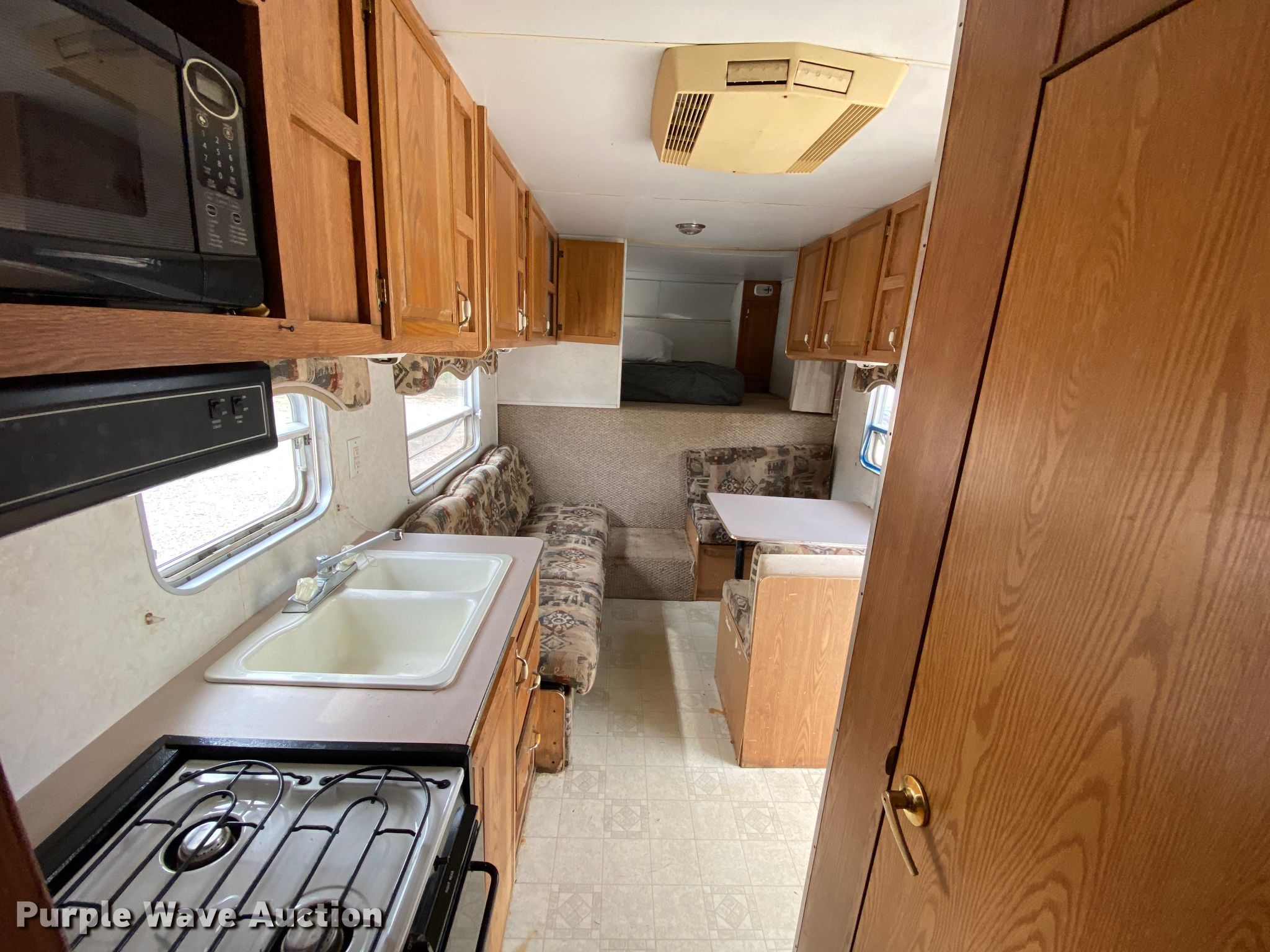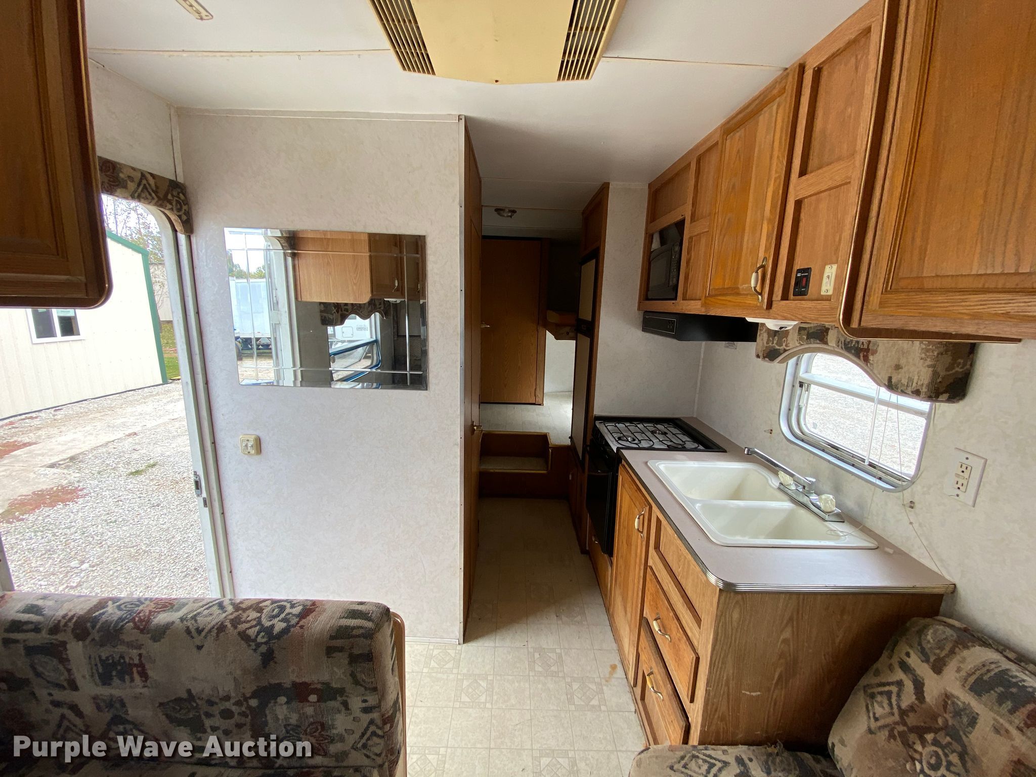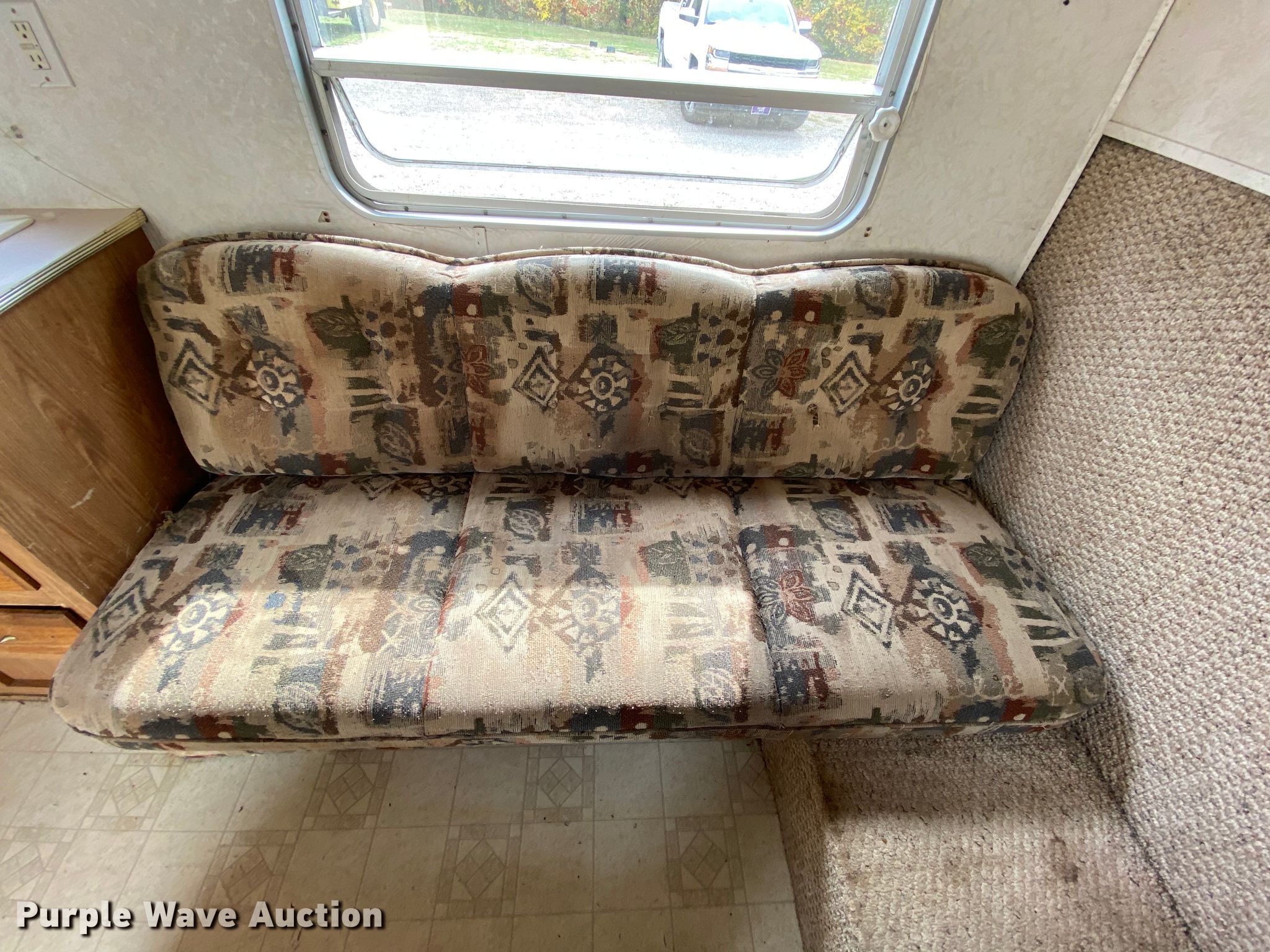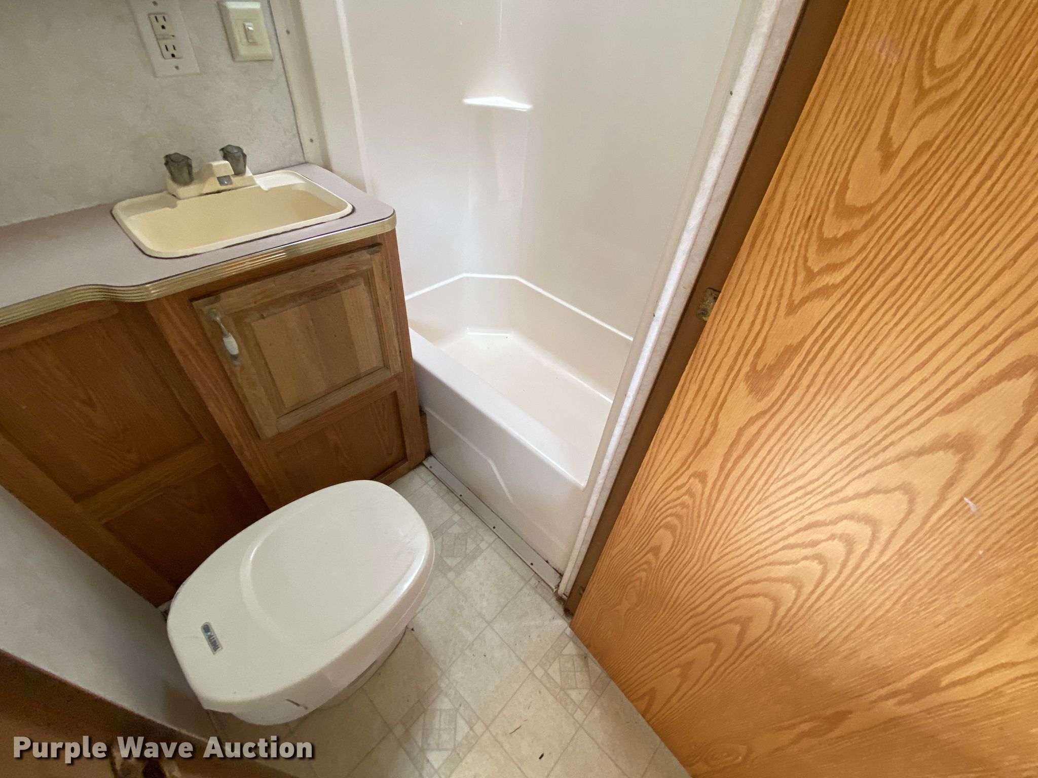 Purple Wave is selling a used Enclosed Cargo Trailer in Missouri. This item is a 2001 Pace American GT Shadow enclosed cargo trailer with the following: 48'L overall, 42'L x 8'W body, 20'L cargo area, (2) Coleman Mack AC unit, (2) 80 gallon fresh water tanks, 28'L living quarters, Queen bed, Fold out couch, (2) sets of bunk beds, Refrigerator/freezer, Stove, (2) sinks, Microwave, Full shower insert, Inverter box, Wood deck, Dual leg landing gear, Spring suspension, Electric brakes, Triple axle, Aluminum wheels, 7.50R16LT tires