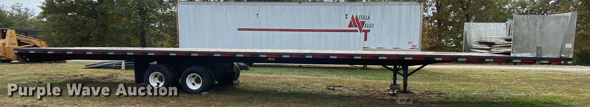 Purple Wave is selling a used Flat or Drop Deck Trailer in Missouri. This item is a 1995 Boerne flatbed trailer with the following: 48'5"L x 98"W deck, (20) 38" x 48" side wall sections, Wood deck, Dual leg landing gear, Spring suspension, Air brakes, Tandem axle, Aluminum wheels, 235/85R16 tires
