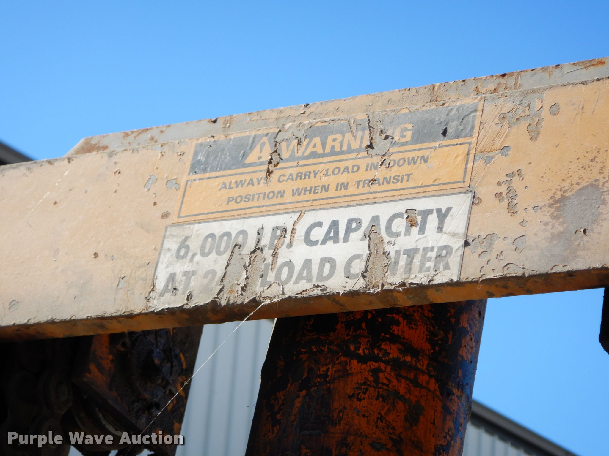 1978 John Deere 480B forklift. 3,761 hours on meter, Serial: 308628T. Engine John Deere, Serial: 475065T, Cylinders: 4, Fuel type: Diesel. Transmission Powershift, 8F - 8R. Operators station Canopy. Operational Maximum lift capacity: 600 lbs, Mast stages: 1, Mast tilt, Fork length: 72". Tires Front: 16.9-24, Rear: 11L-15. Notes Fuel issues, Unknown operating condition. Paul Mueller Company. 1715 Tieken Rd. Osceola, IA 50213