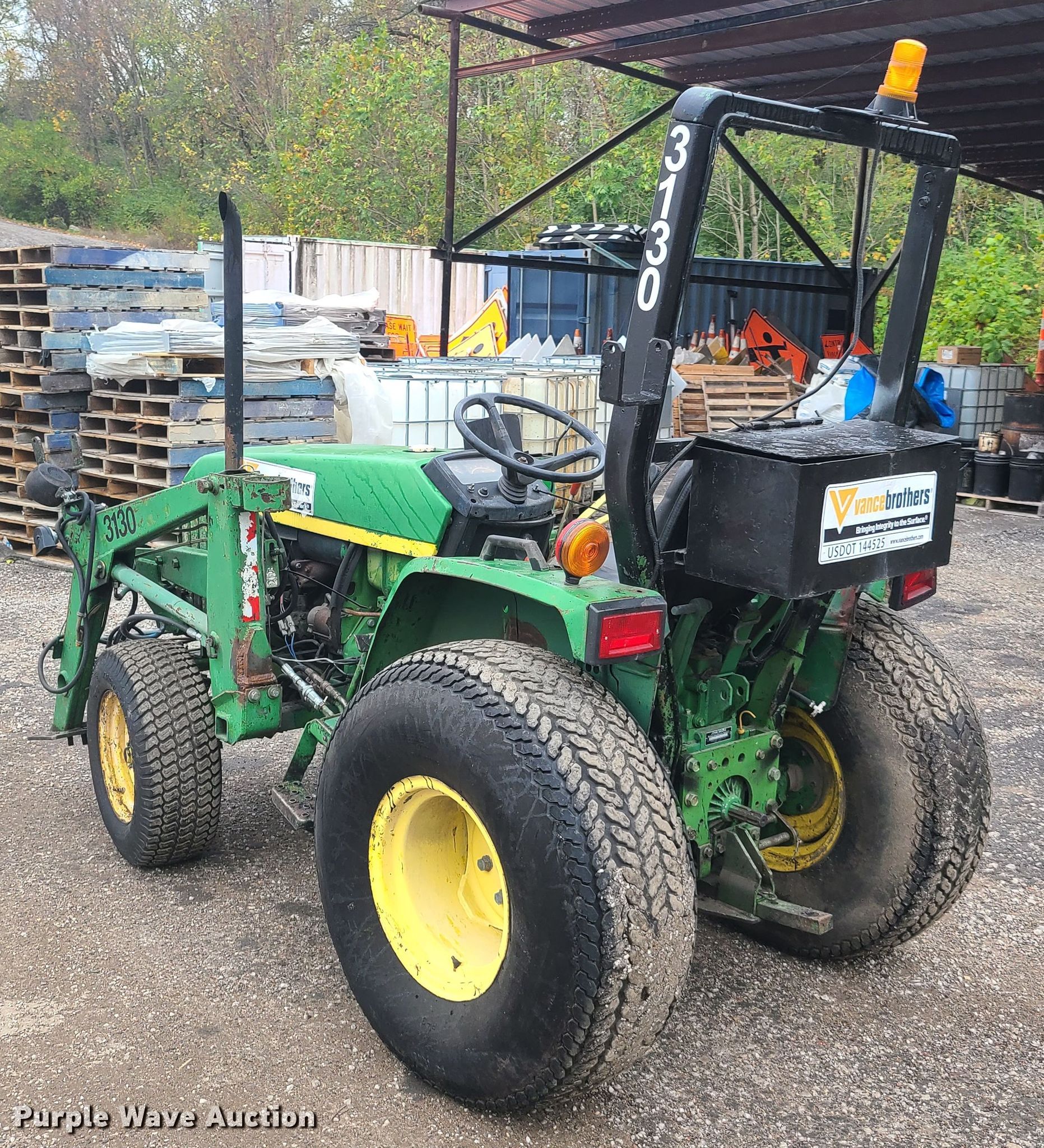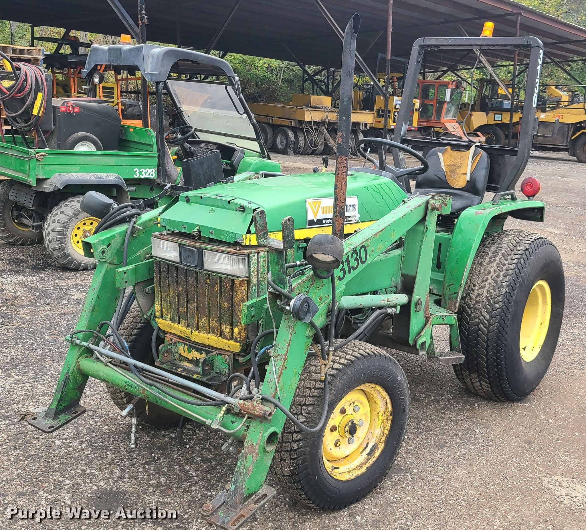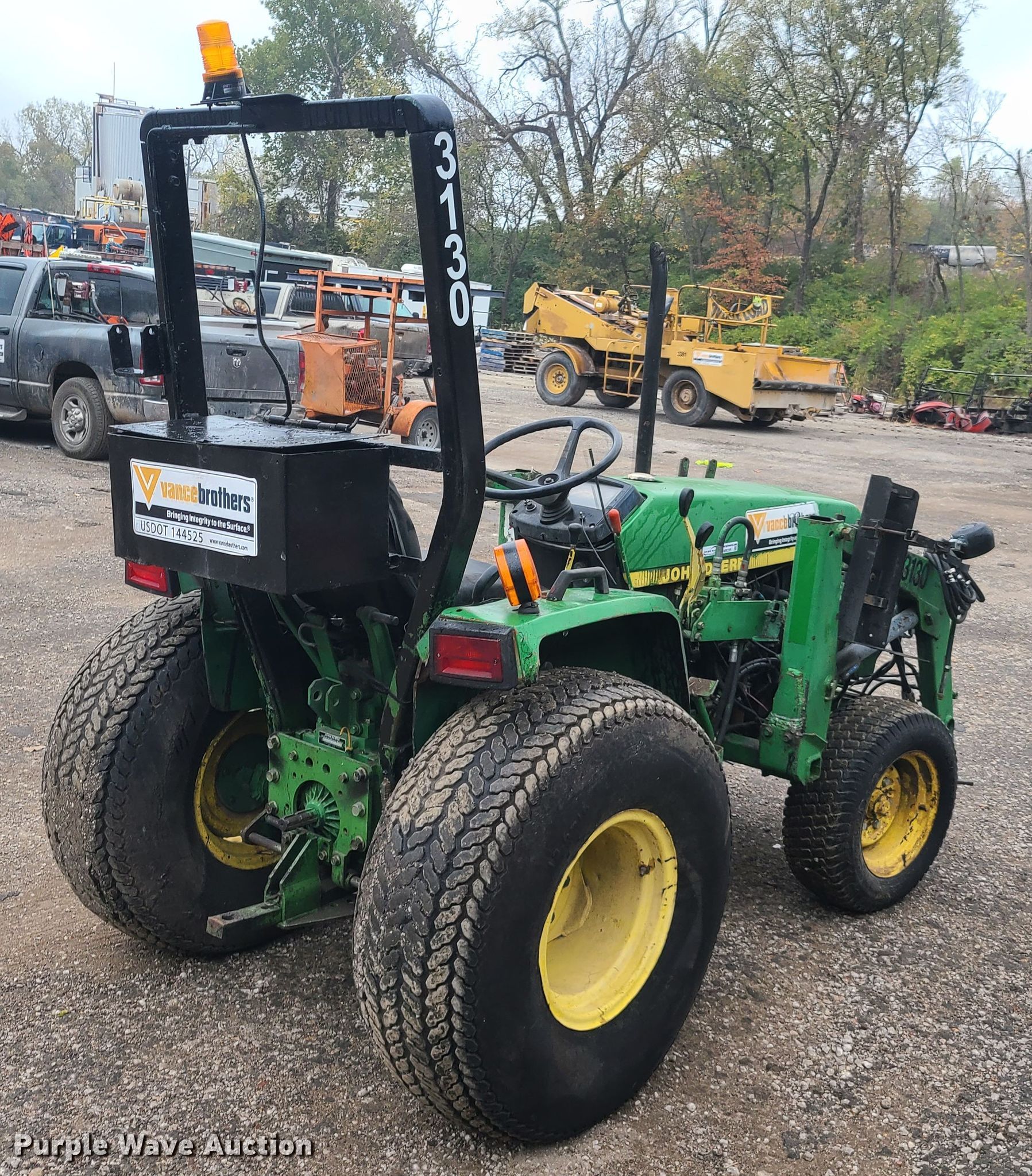 1989 John Deere 770 tractor. 3,470 hours on meter, Serial: M00770A001630. Engine Cylinders: 3, Fuel type: Diesel. Transmission Manual, 8F - 2R. Operational PTO: 540, Loader Controls: Two lever. Tires Front: 25x8.50x14, Rear: 13.6x18. Vance Bros Inc.. 5201 Brighton Ave. Kansas City, MO 64130