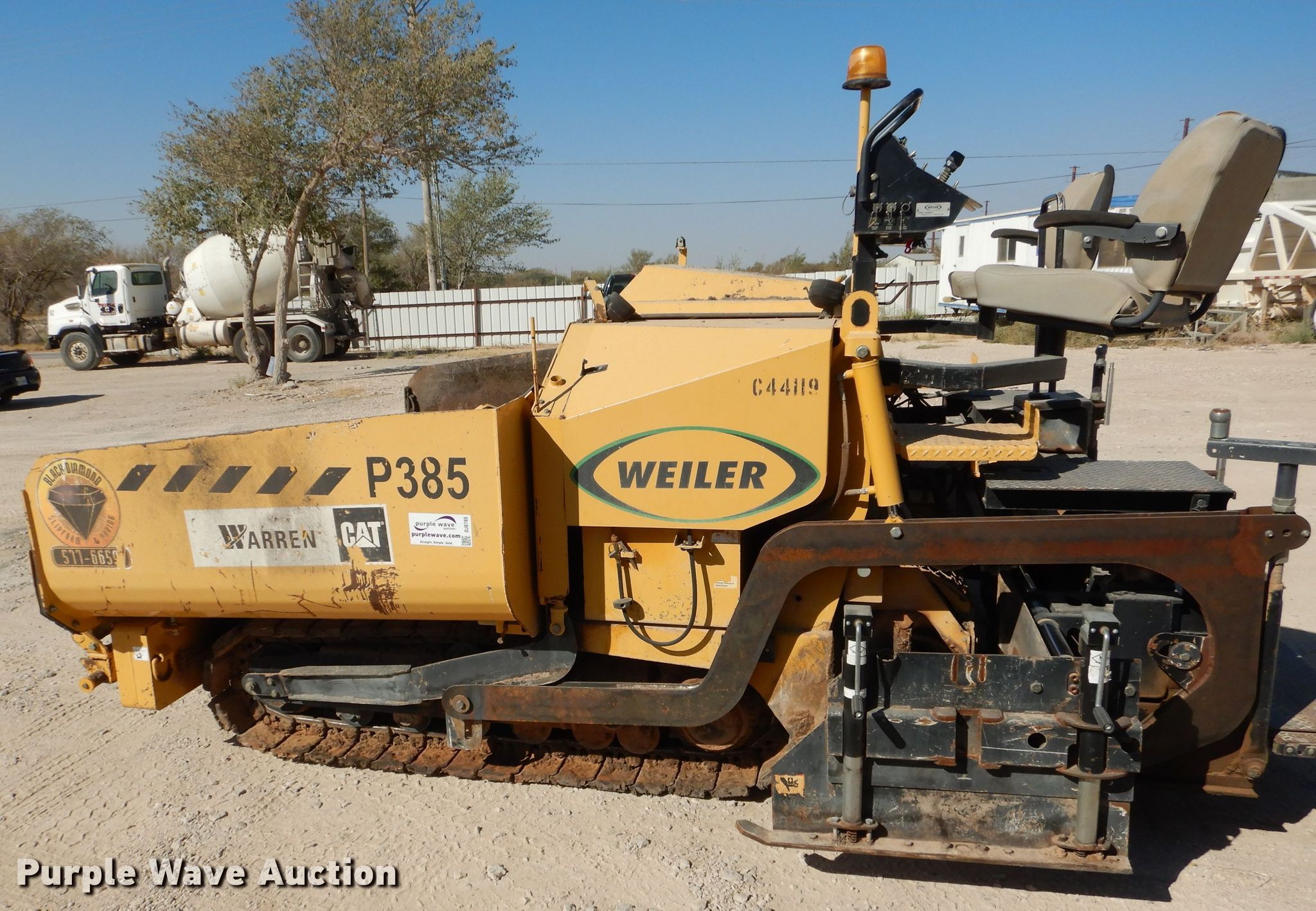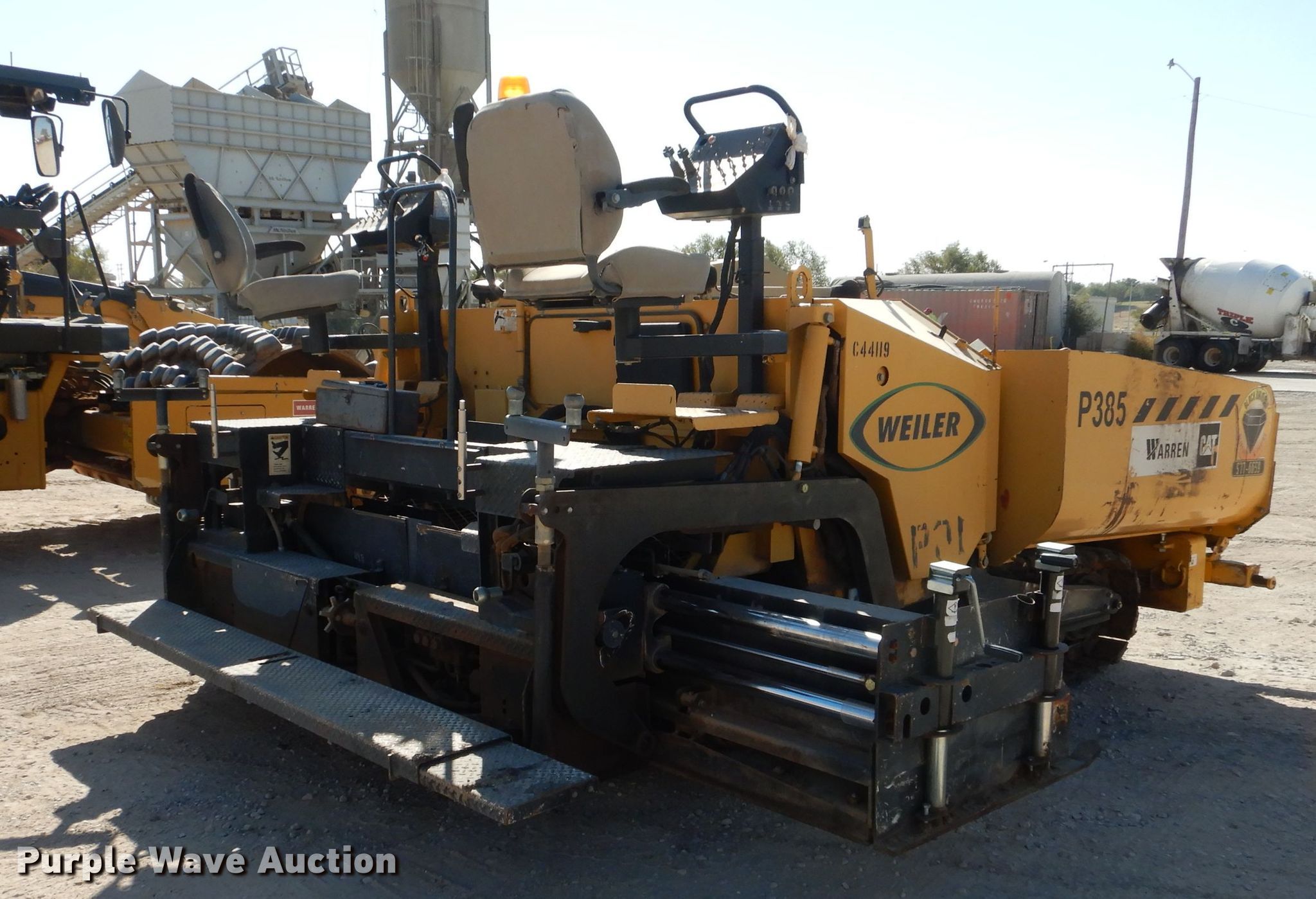Purple Wave is selling a used Paver or Screed in Texas. This item is a 2011 Weiler P385 paver with the following: Unknown hours on meter, Serial: P385-1021