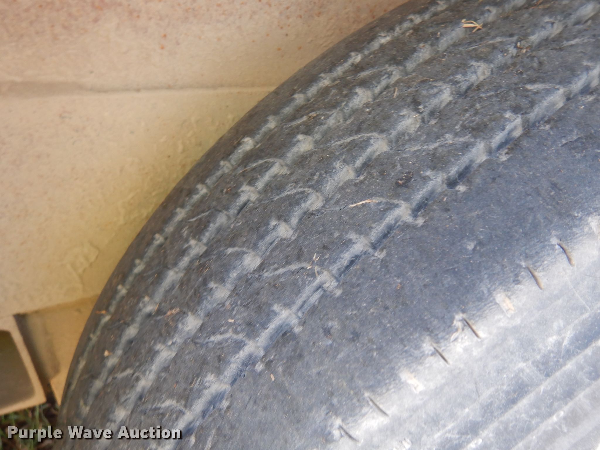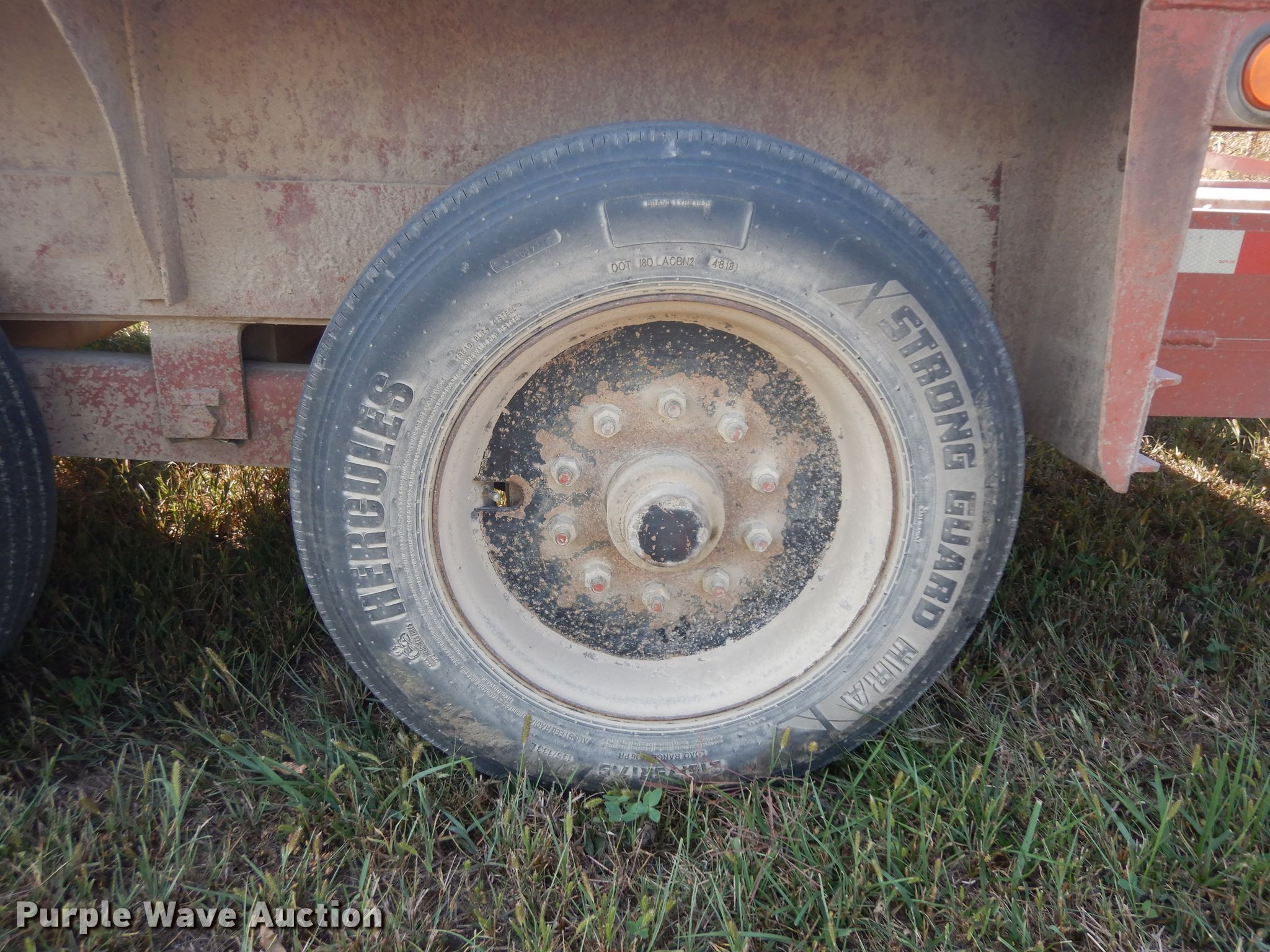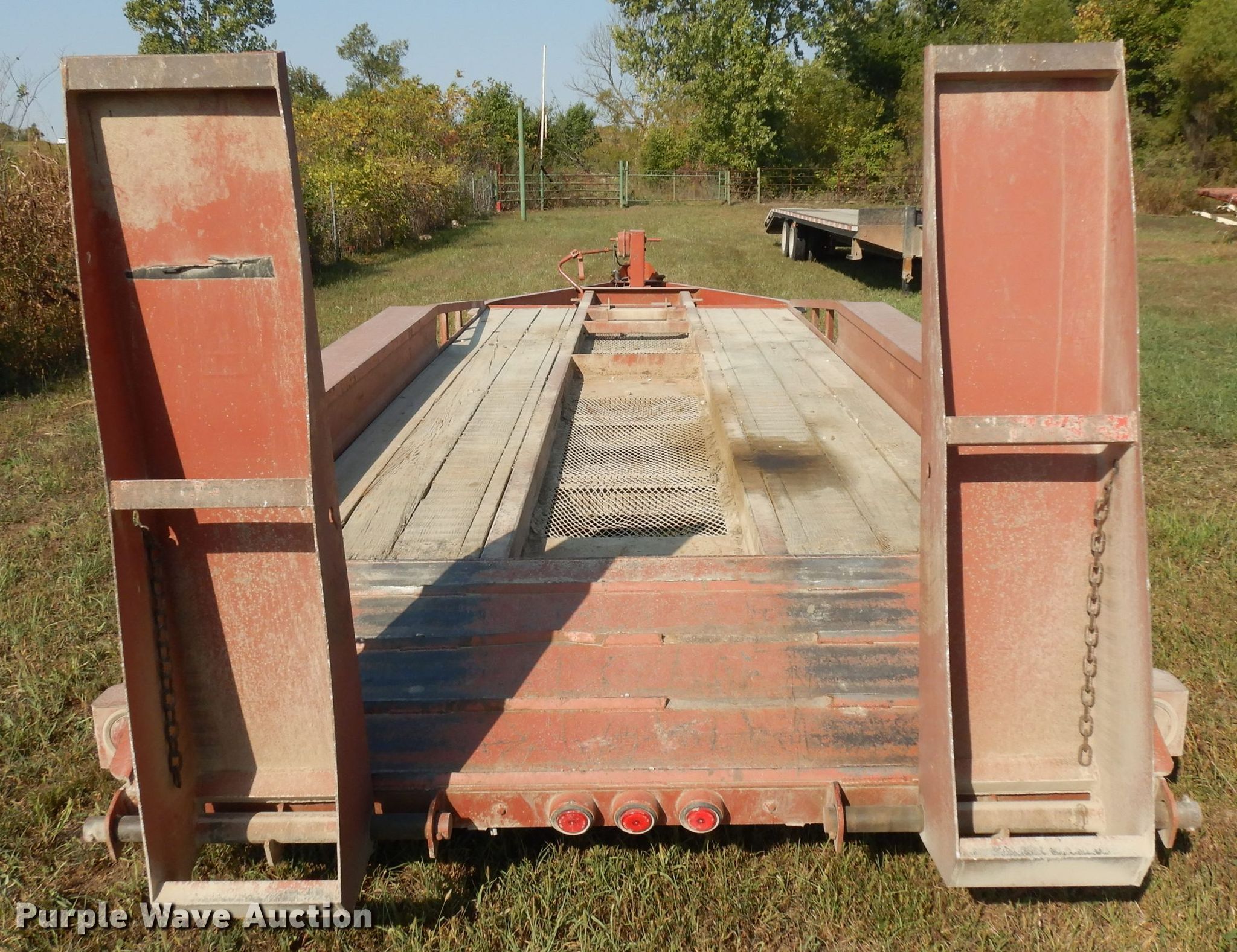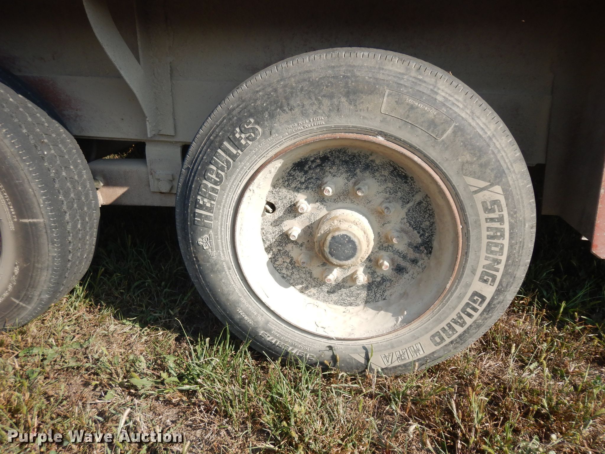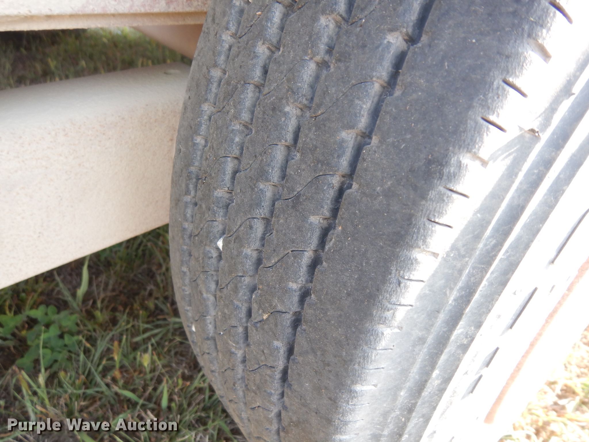 Purple Wave is selling a used Equip. Trailer in Kansas. This item is a 2002 Belshe T-18 equipment trailer with the following: 28'L x 102"W, 18'L x 82"W wood deck, 26" floor height, 2.5' tail length, 5'L ramps, Single leg landing gear, Spring suspension, Electric brakes, Triple axle, Steel wheels, 215/75R17.5 tires, GVWR 24,000 lbs, (2) additional tires included