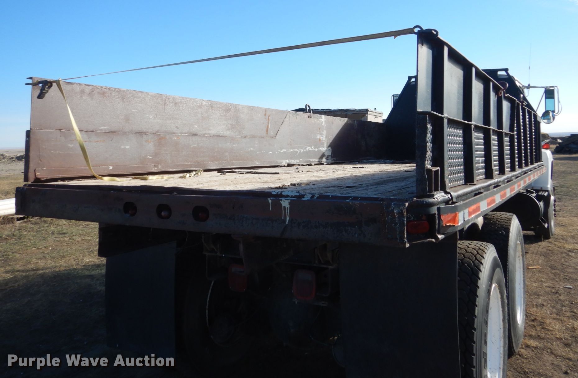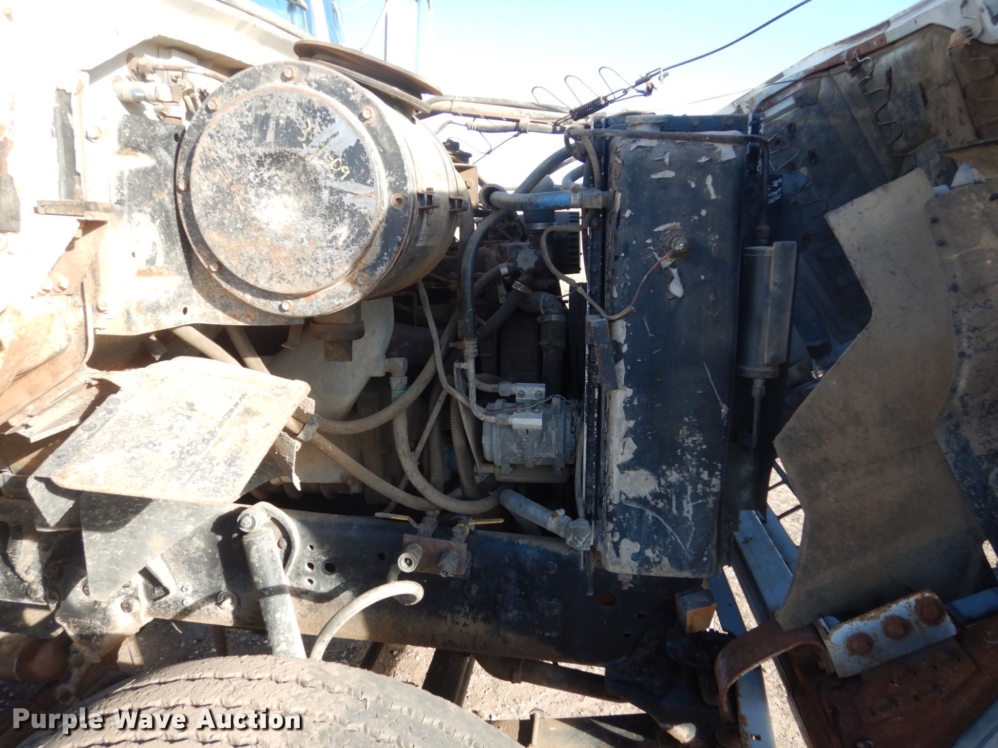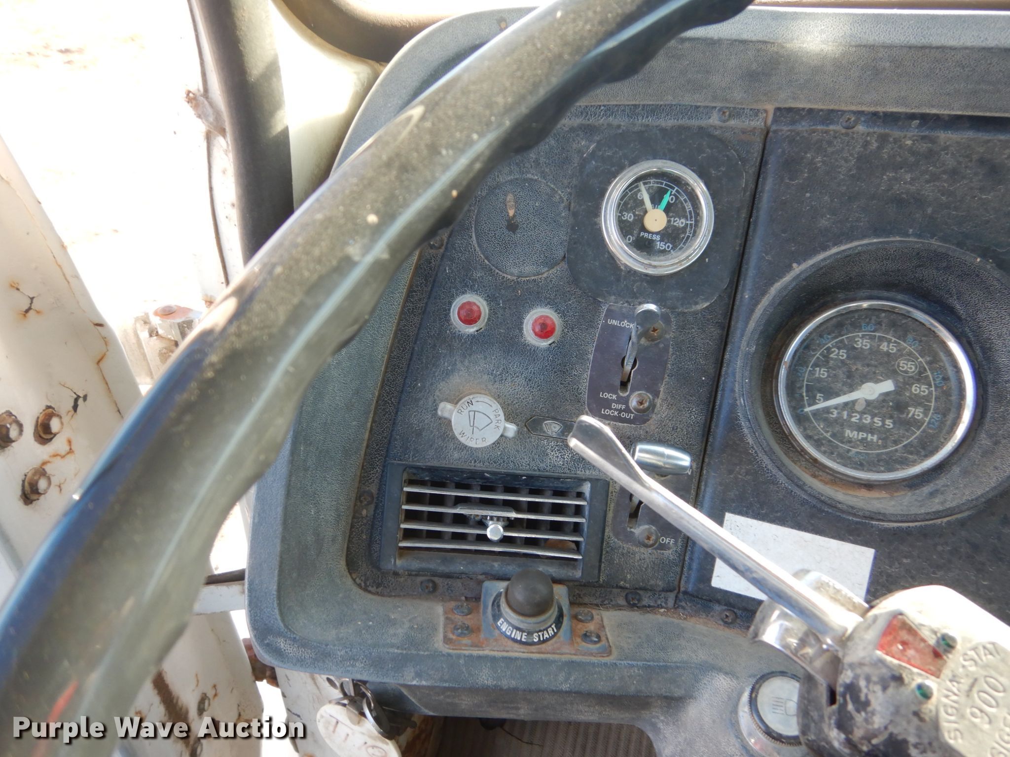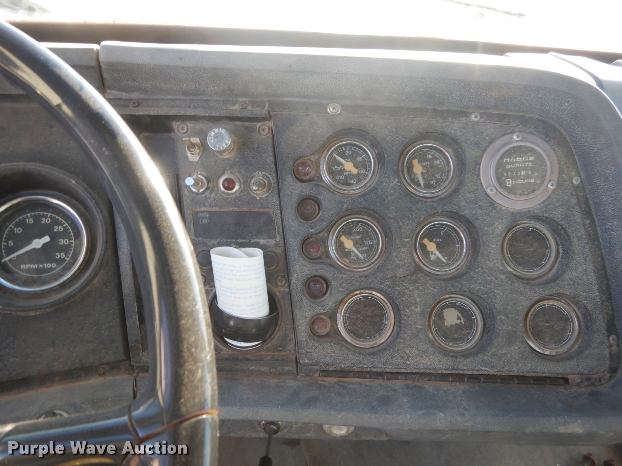 1985 Ford 9000 dump truck. 312,355 miles on odometer, Engine hours: 5,073. Engine Detroit Diesel 6-71, Displacement: 7.0L, Cylinders: 6, Fuel type: Diesel. Transmission Eaton Fuller Roadranger RT-11609, Manual, Speed: 8. Chassis Axles: Tandem, Differential lock: Inter-axle, Suspension: Spring over walking beam, Brakes: Air, PTO, GVWR: 46,000 lbs, Wheelbase: 230". Interior AC, Heat. Operational Dump bed 20' L x 94" W, Side height: 24", Ram: Dual. Tires Front: 12R22.5, Rear: 11R24.5. Notes Windshield chipped or cracked. South Dakota title. 1FDYW90J2FVA27402. Leskca Inc. 210 Cottonwood Dr. Box Elder, SD 57719