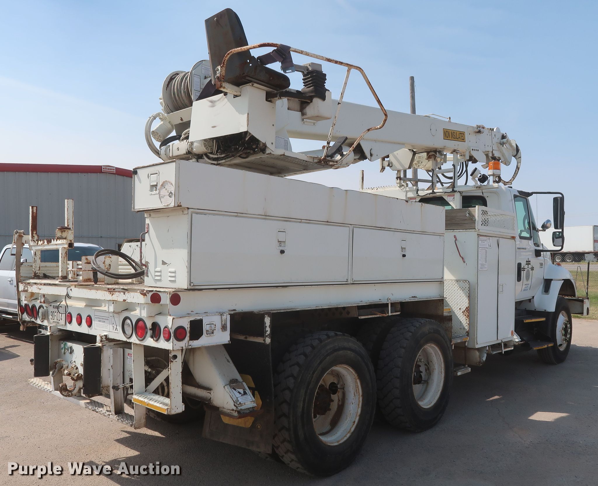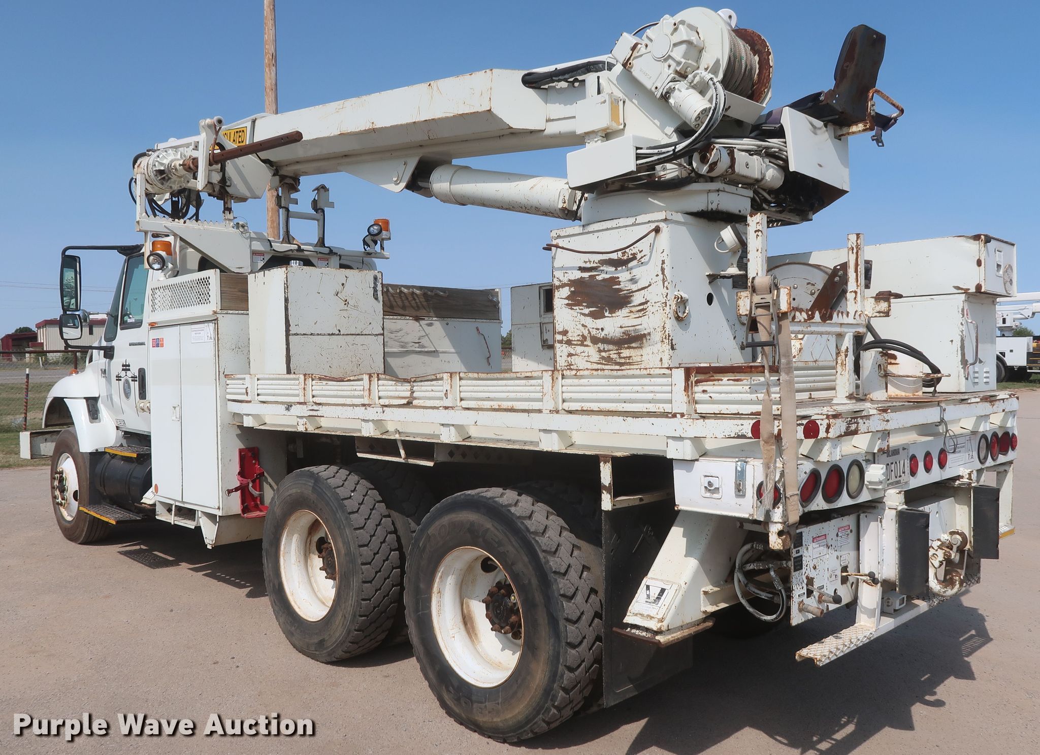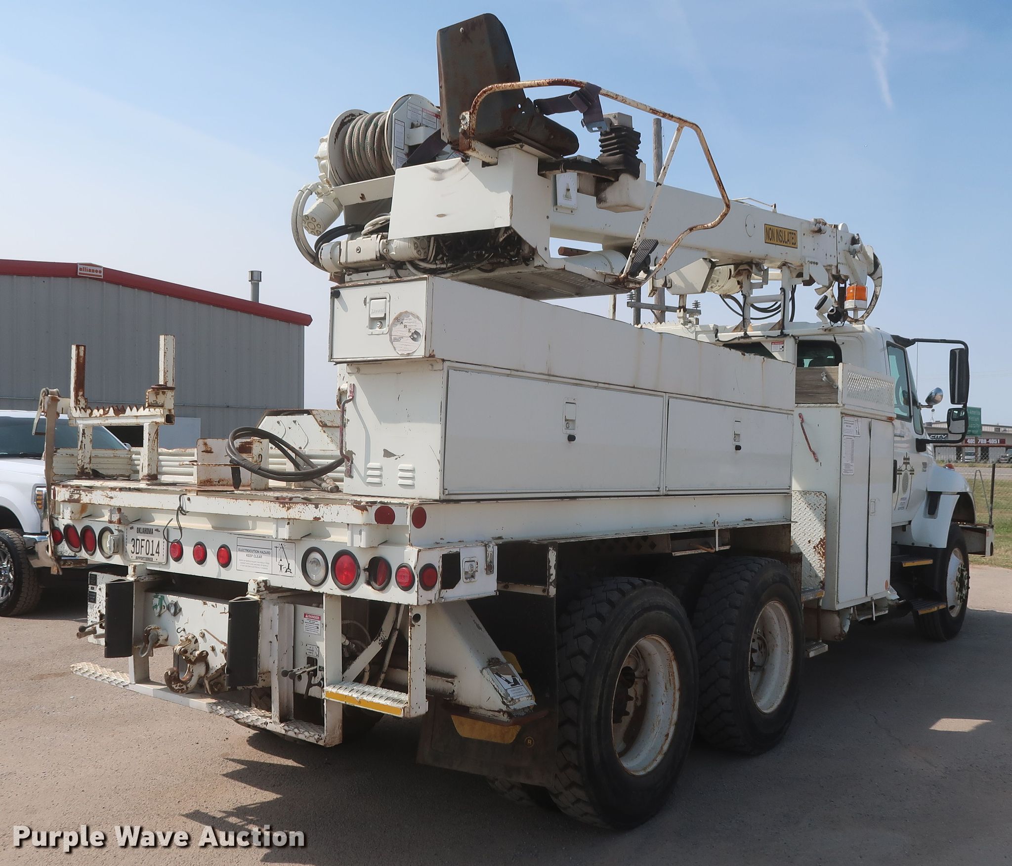 Purple Wave is selling a used Digger Derrick Truck in Oklahoma. This item is a 2003 International 7400 digger derrick truck with the following: 189,690 miles on odometer, Engine hours: 14,130, PTO hours: 1,990