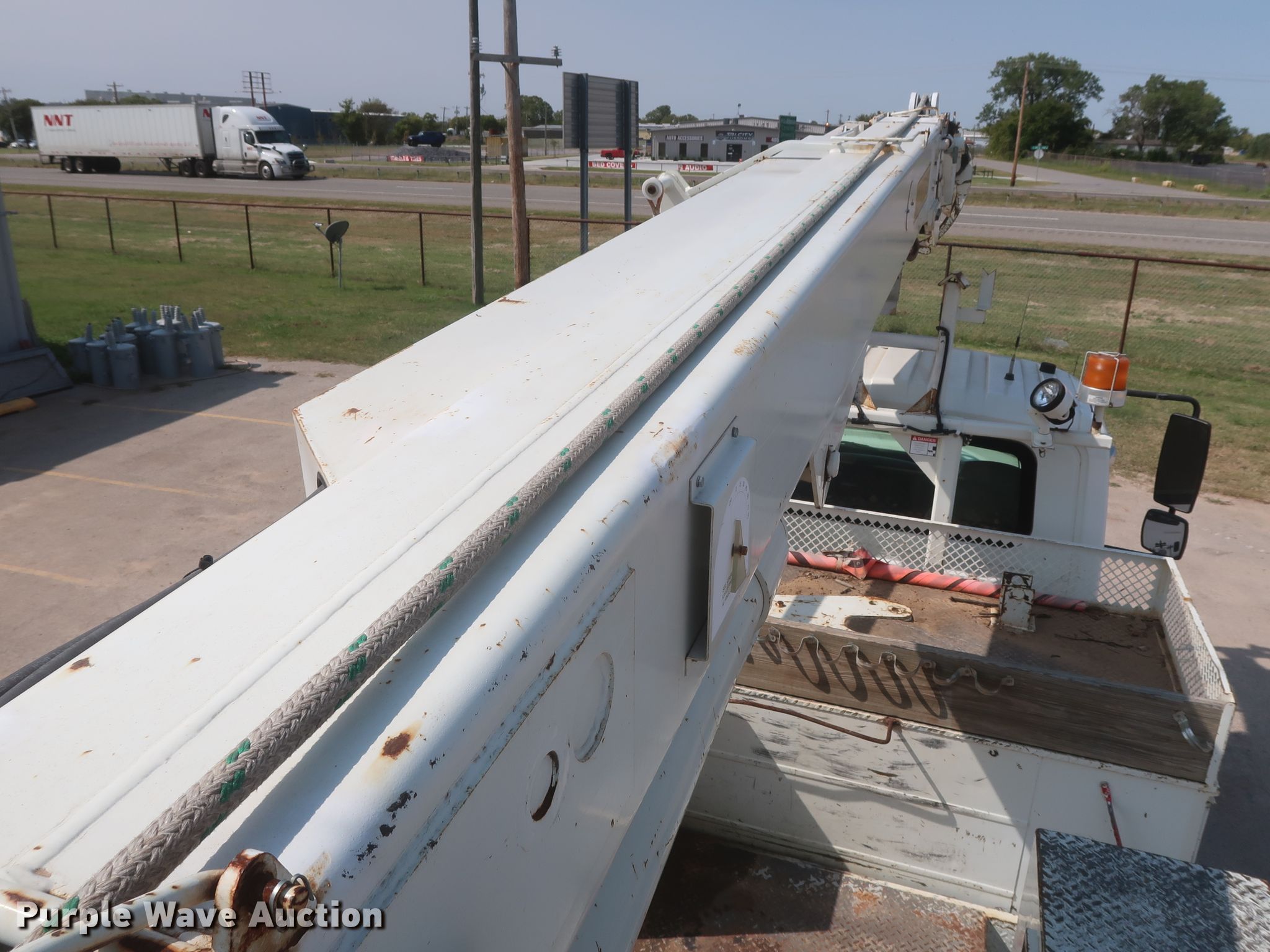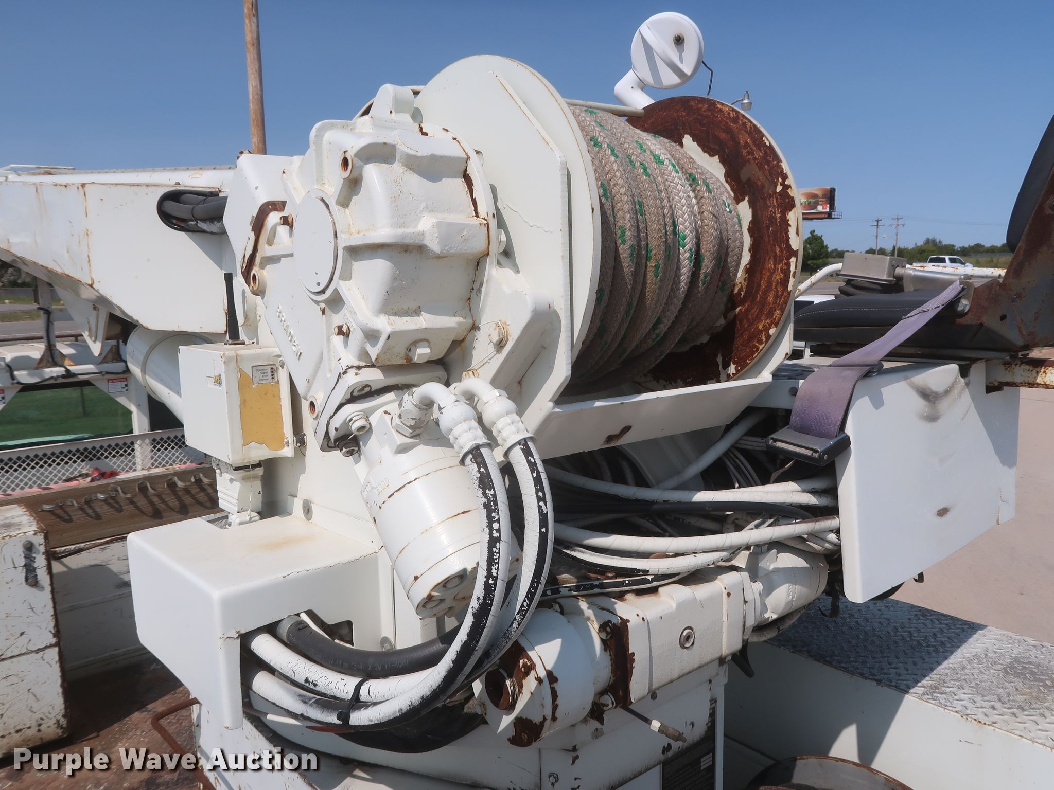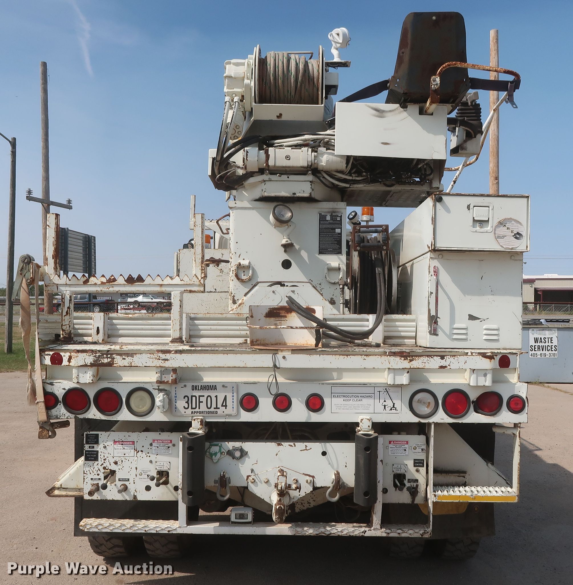 Purple Wave is selling a used Digger Derrick Truck in Oklahoma. This item is a 2003 International 7400 digger derrick truck with the following: 189,690 miles on odometer, Engine hours: 14,130, PTO hours: 1,990