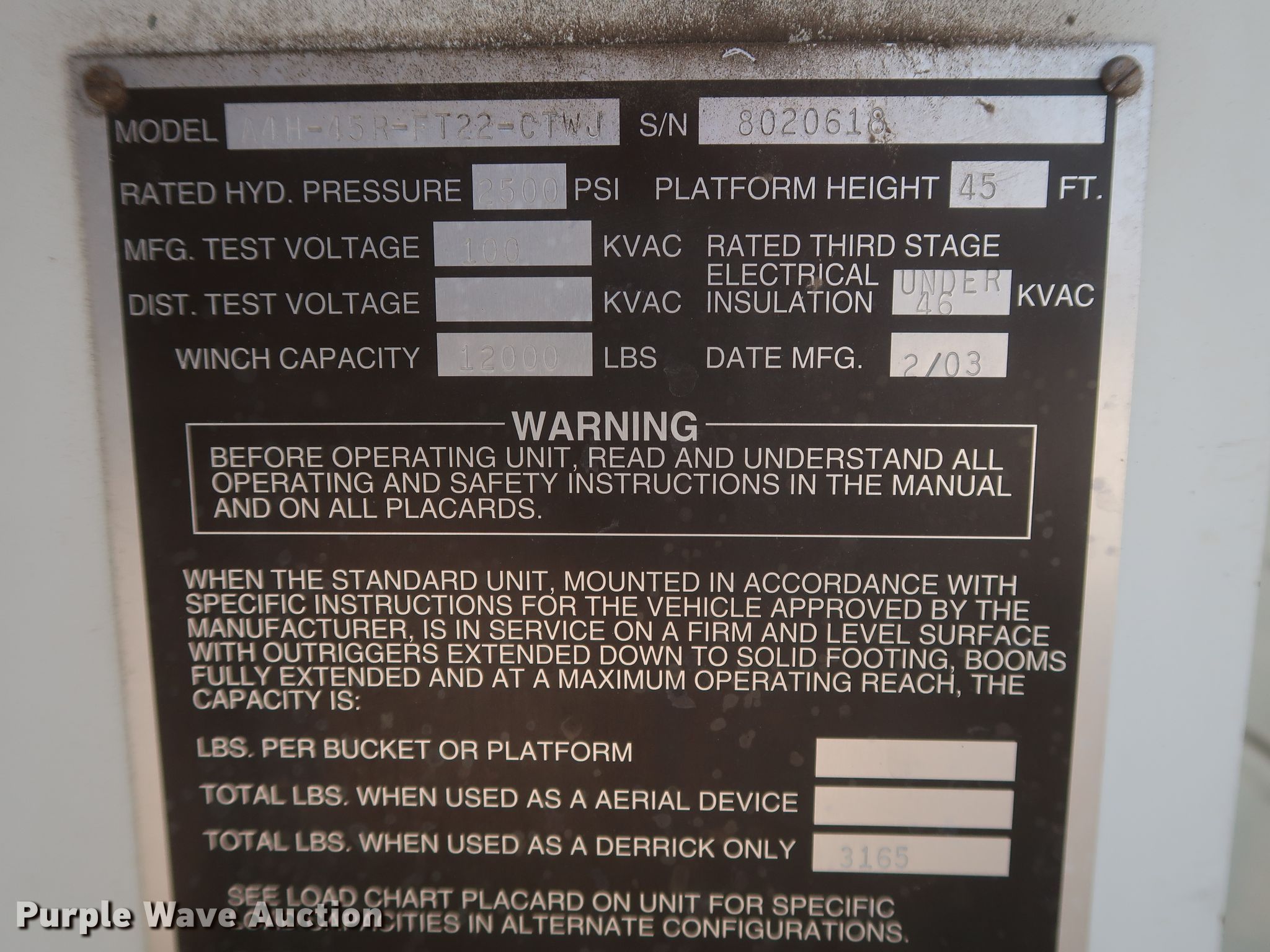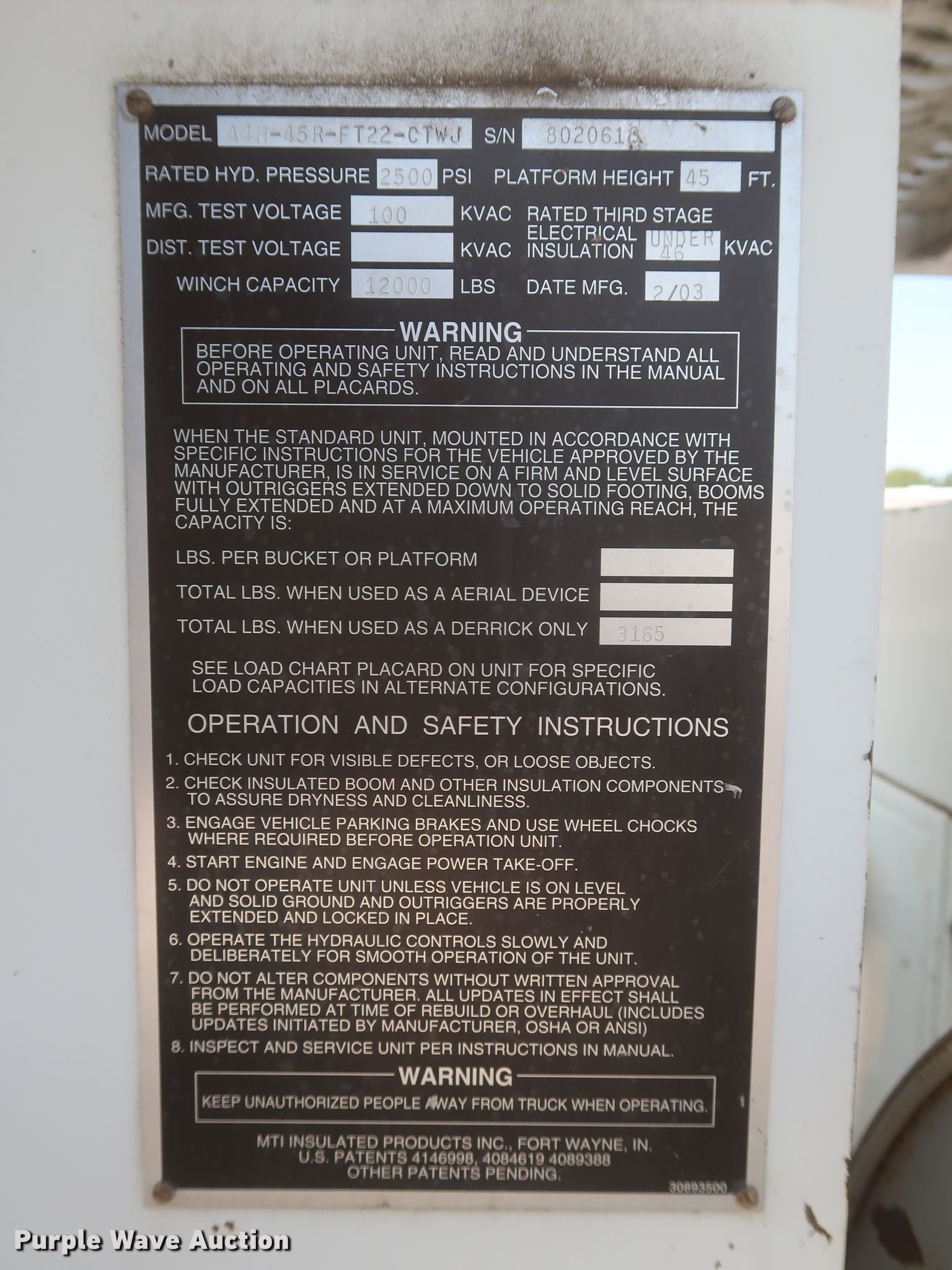 - 2003 MTI A4H-45R-FT22-CTWJ
