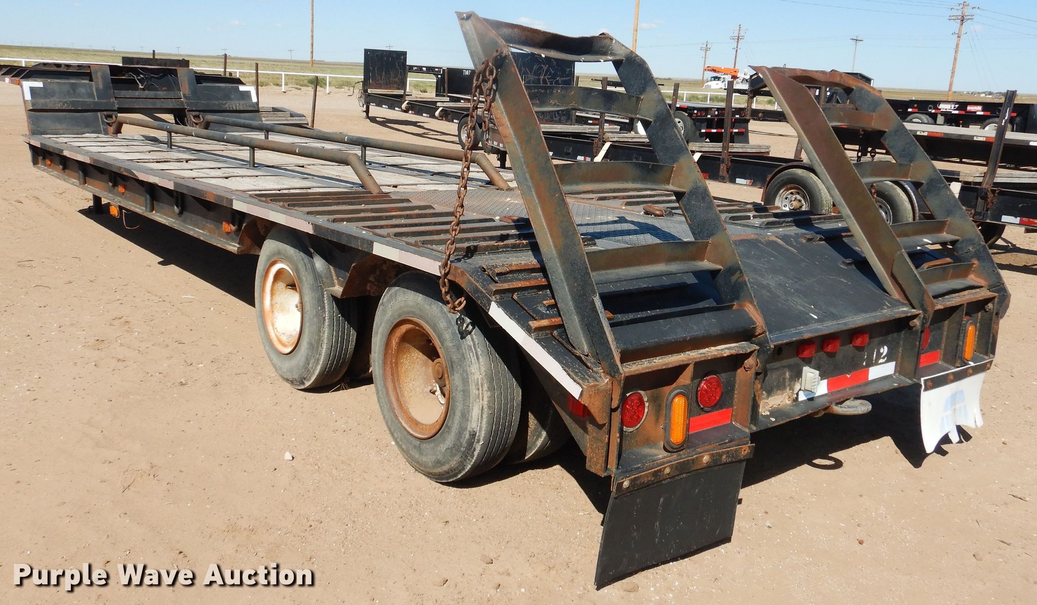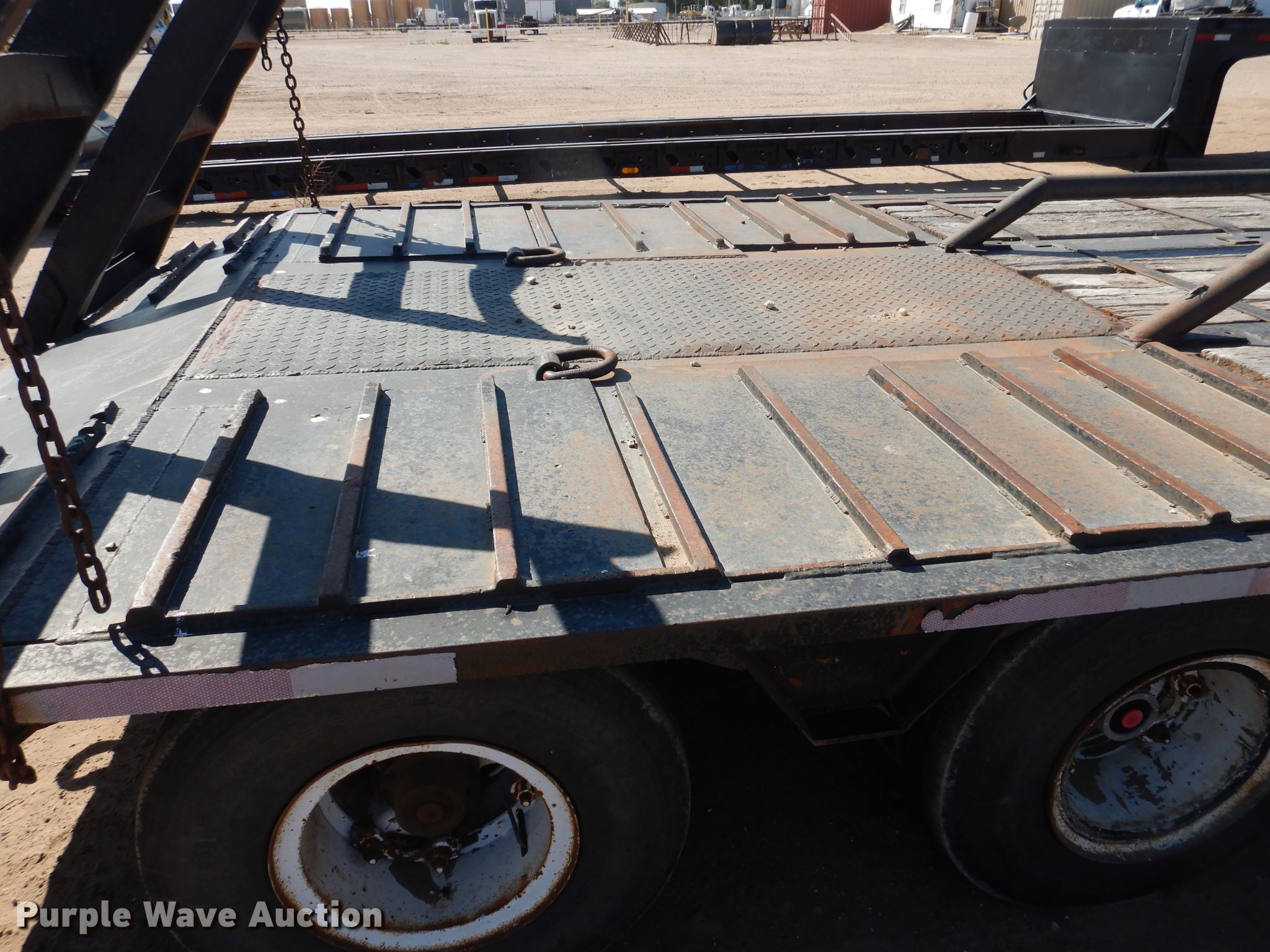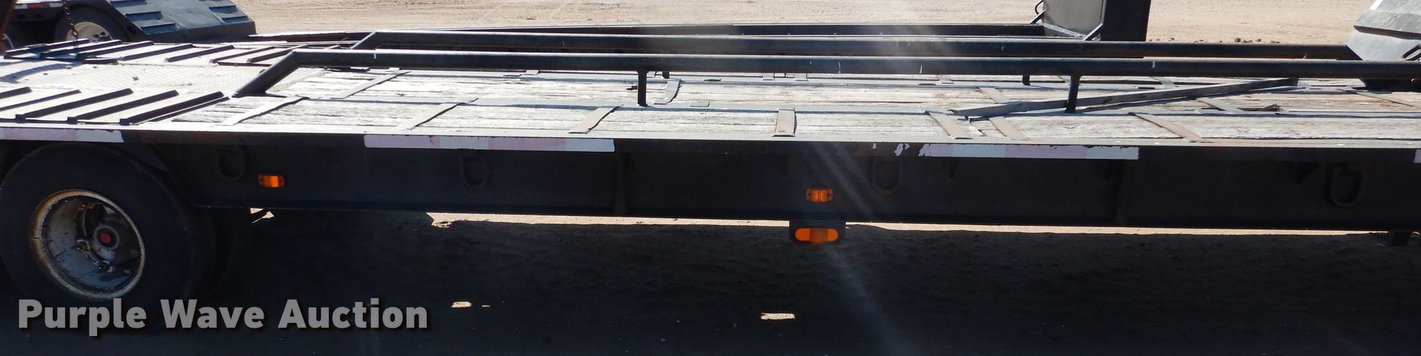 Purple Wave is selling a used Equip. Trailer in Kansas. This item is a 1980 Hold equipment trailer with the following: 35'7"L x 103"W overall, 24'8"L deck, 2.3' tail length, 4.5'L ramps, Dual leg landing gear, Spring suspension, Air brakes, Tandem axle, Steel wheels, 8.25R15 tires, GVWR 50,000 lbs, GAWR 20,000 lbs