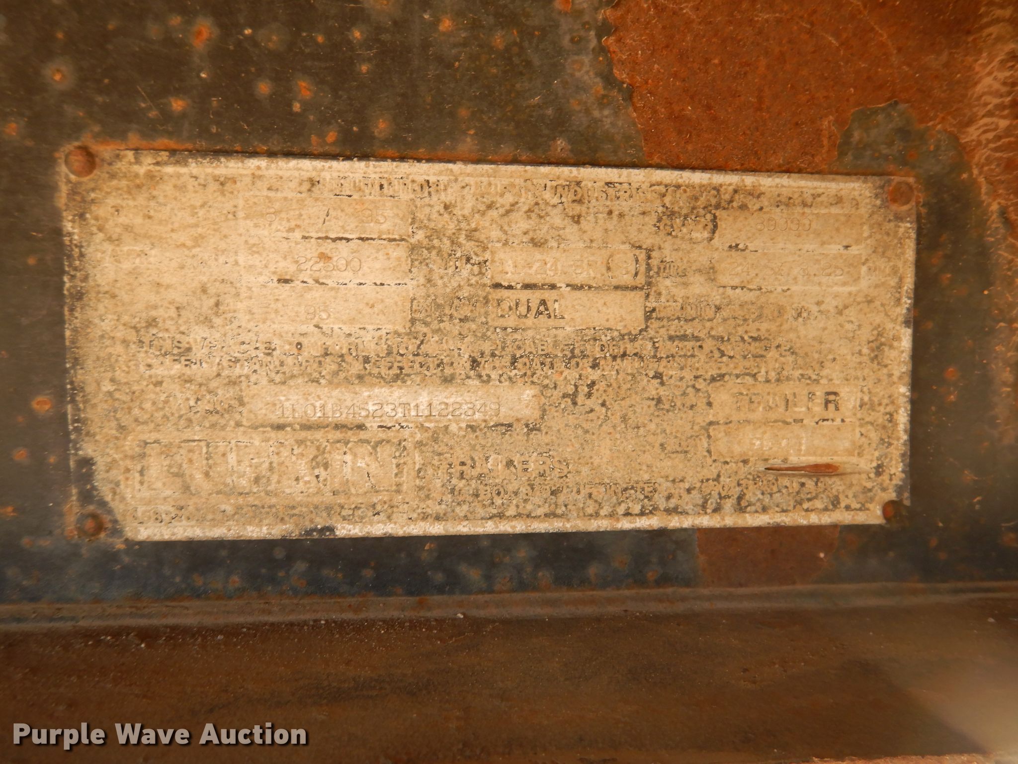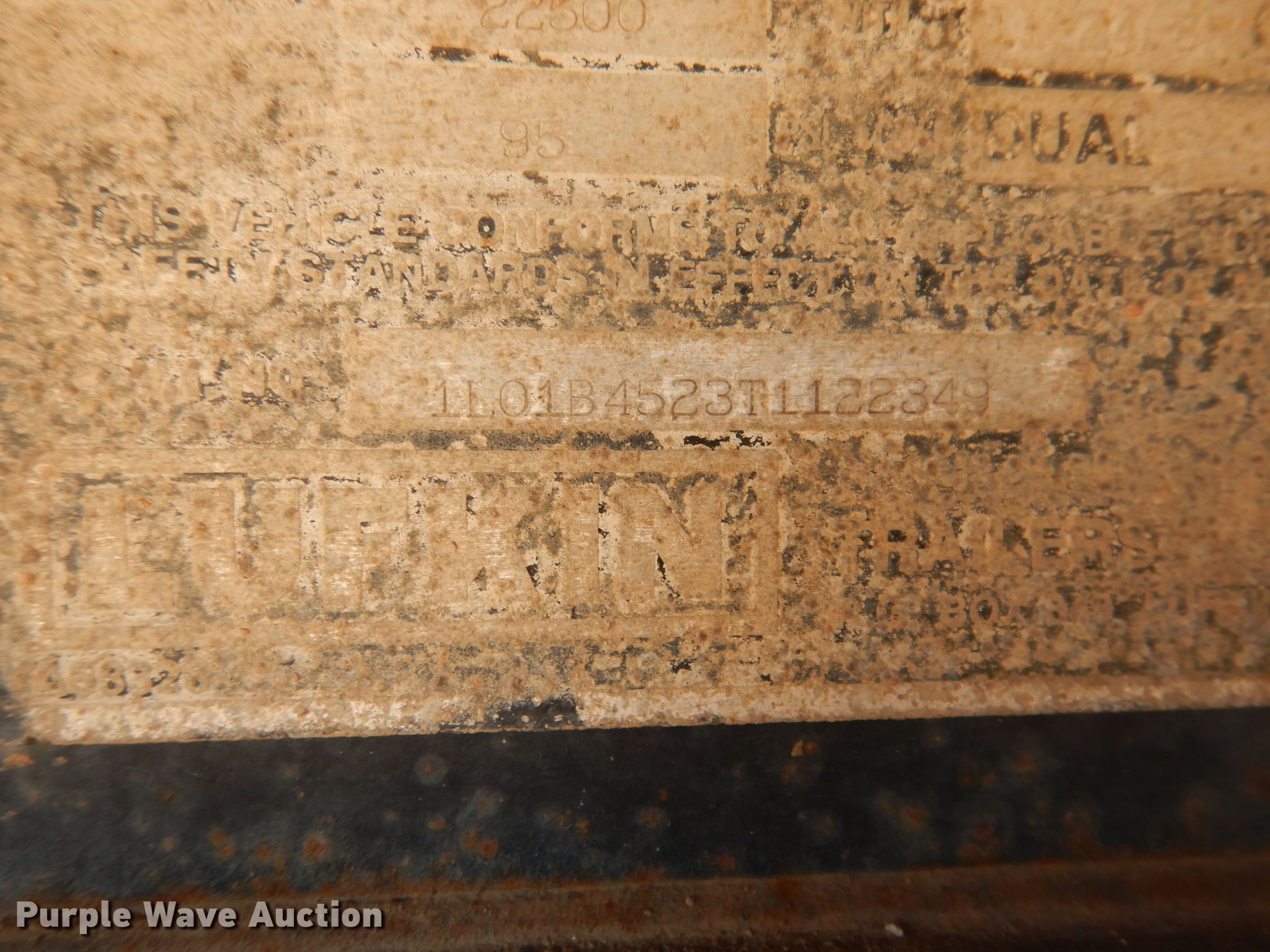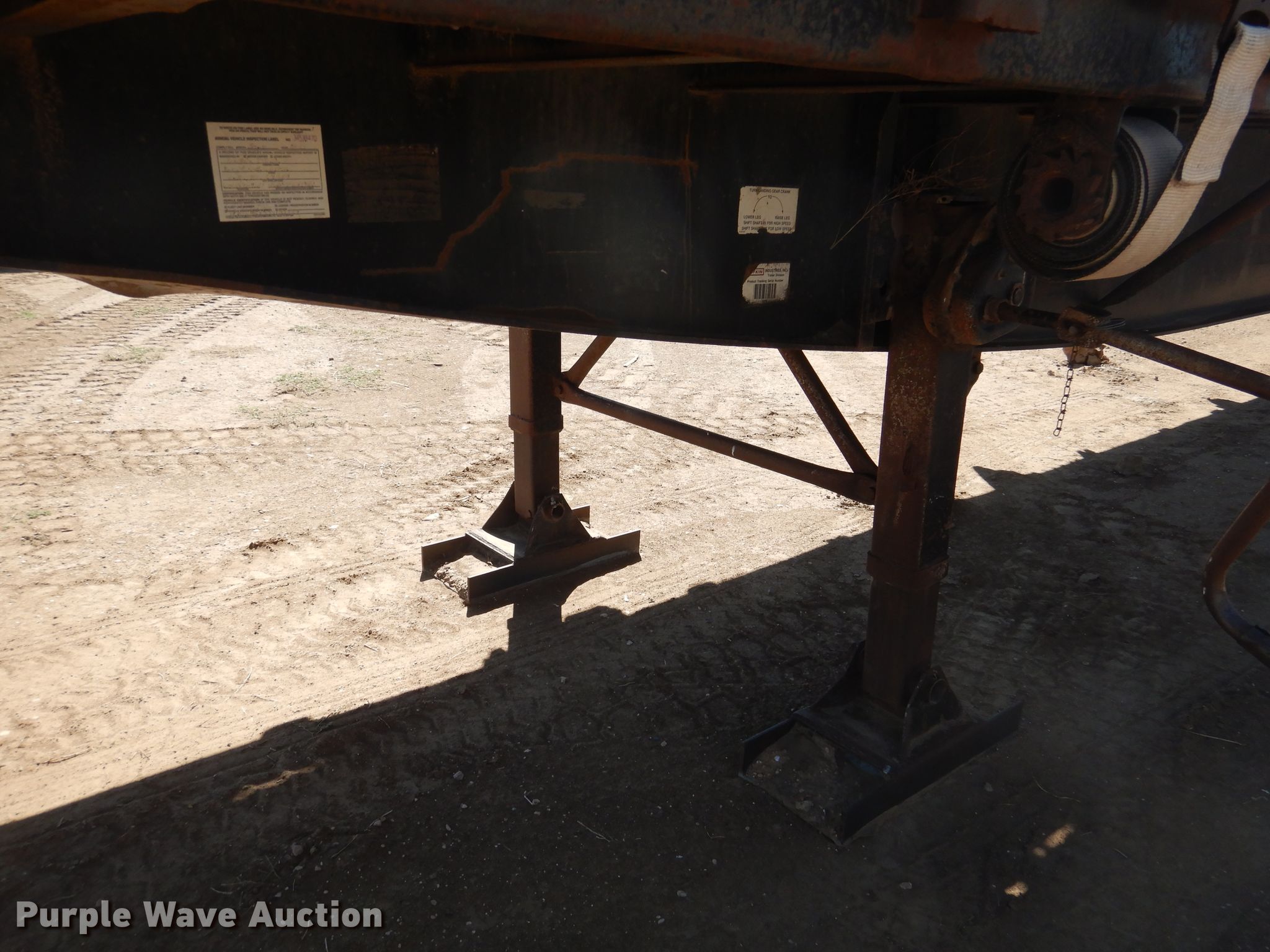 Purple Wave is selling a used Flat or Drop Deck Trailer in Kansas. This item is a 1996 Lufkin flatbed trailer with the following: 45'4"L x 8'W overall, 45'L x 93"W deck, 4' side height, Wood deck, Dual leg two speed landing gear, Spring suspension, Air brakes, Tandem axle, Steel wheels, 11R24.5 tires