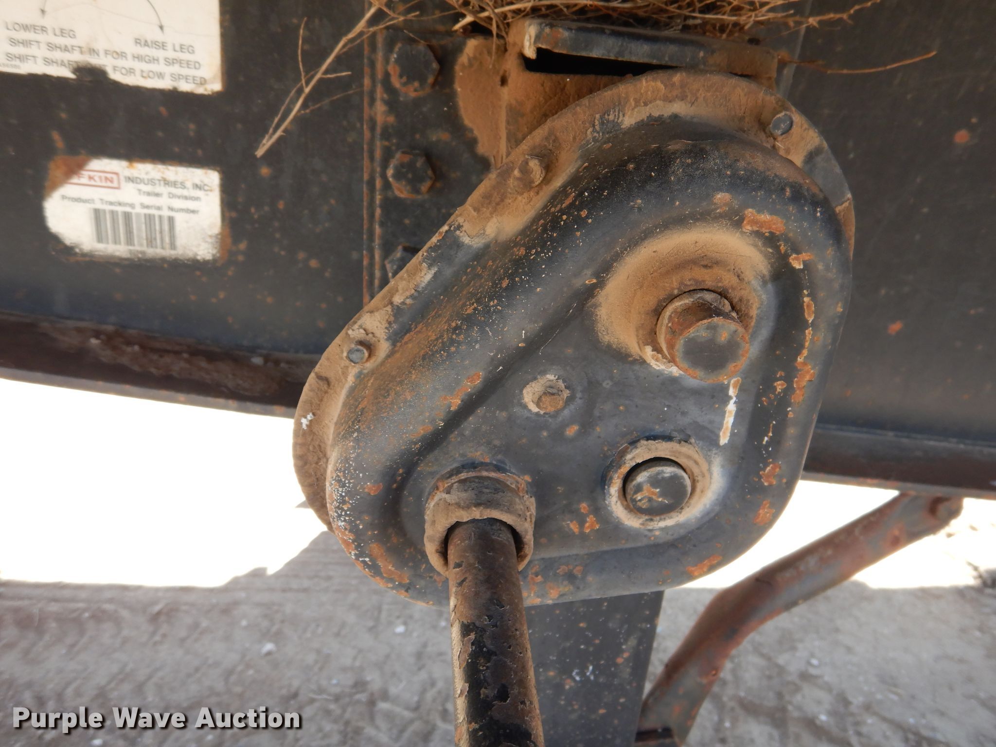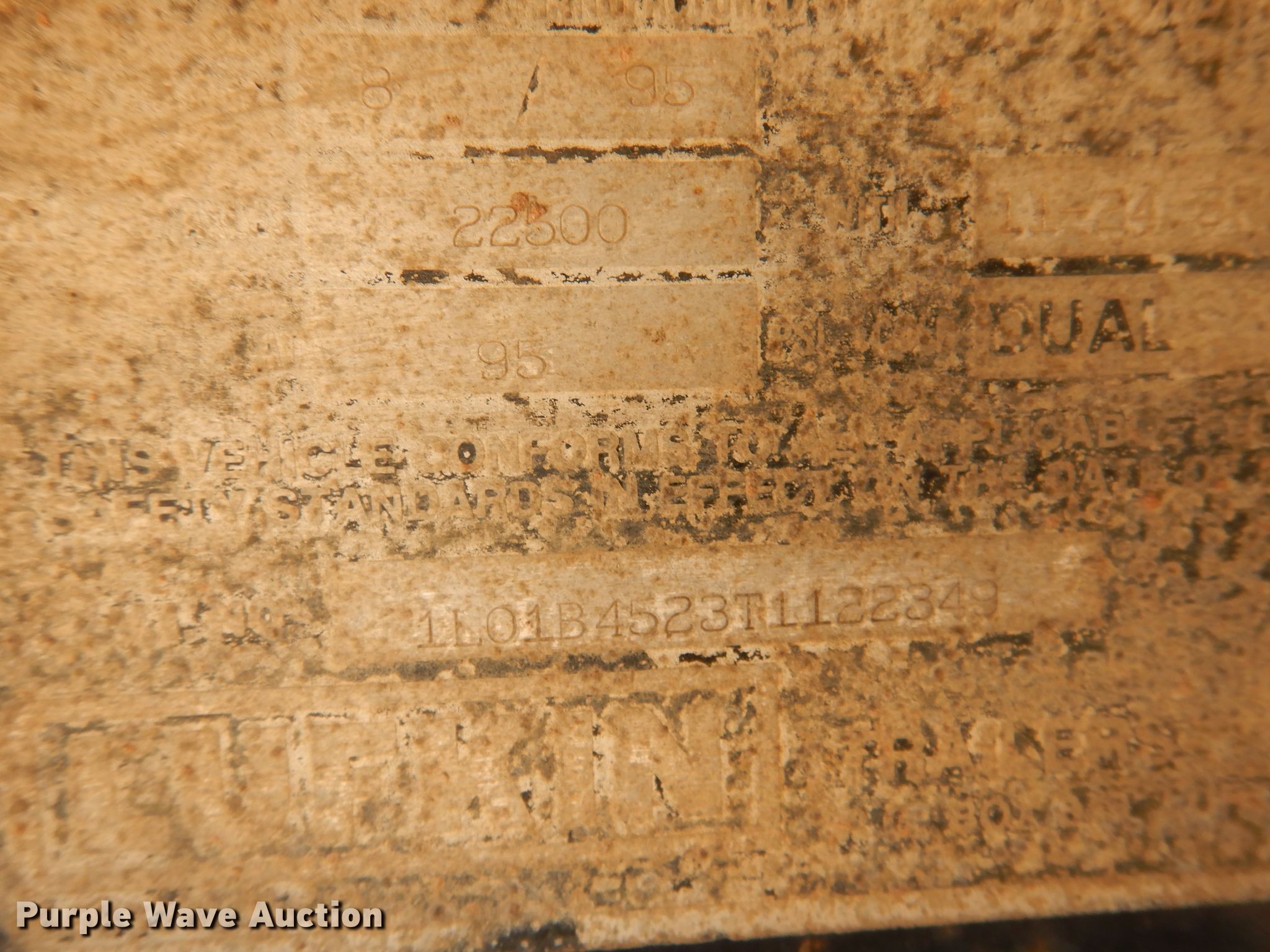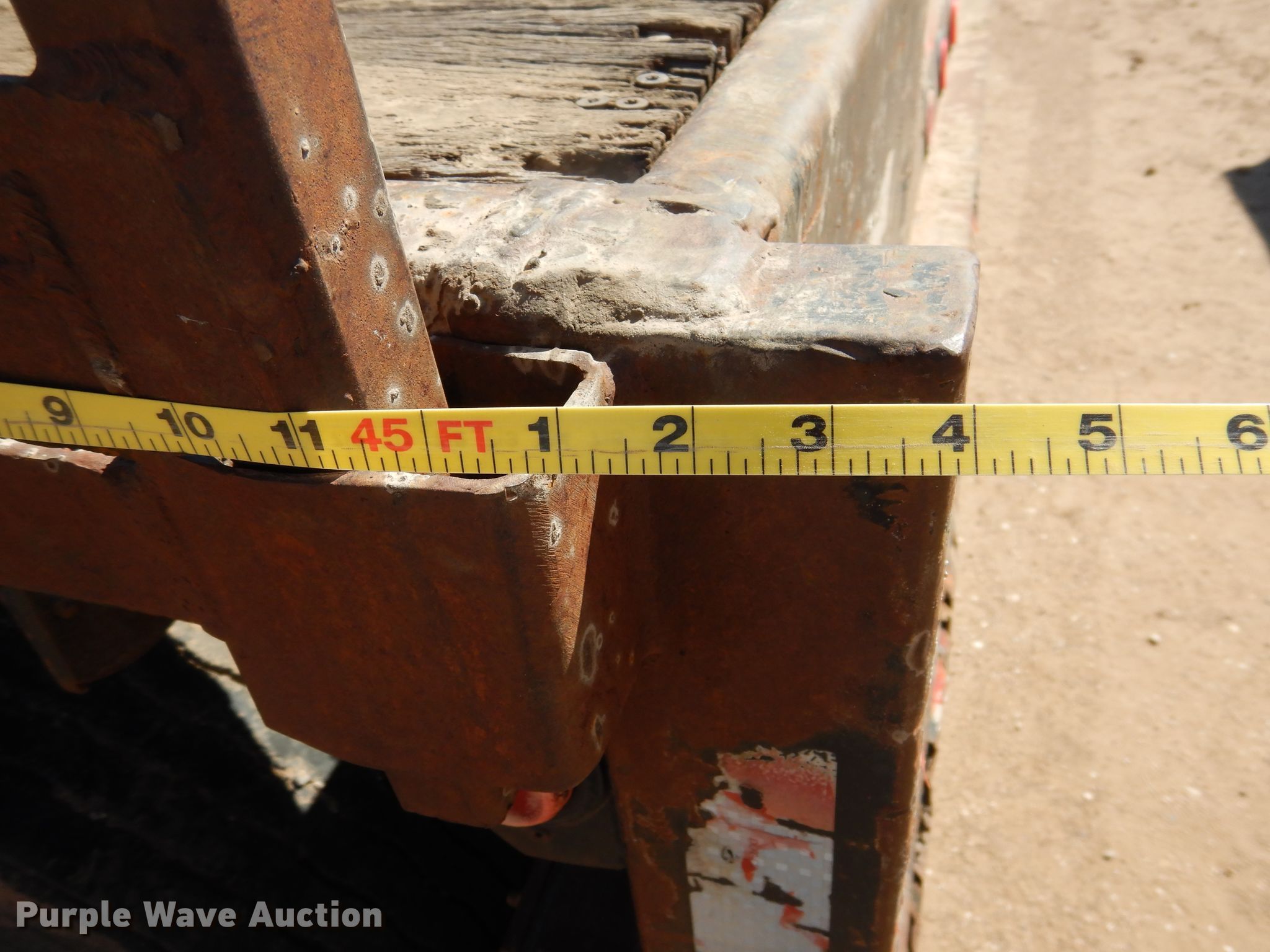 Purple Wave is selling a used Flat or Drop Deck Trailer in Kansas. This item is a 1996 Lufkin flatbed trailer with the following: 45'4"L x 8'W overall, 45'L x 93"W deck, 4' side height, Wood deck, Dual leg two speed landing gear, Spring suspension, Air brakes, Tandem axle, Steel wheels, 11R24.5 tires