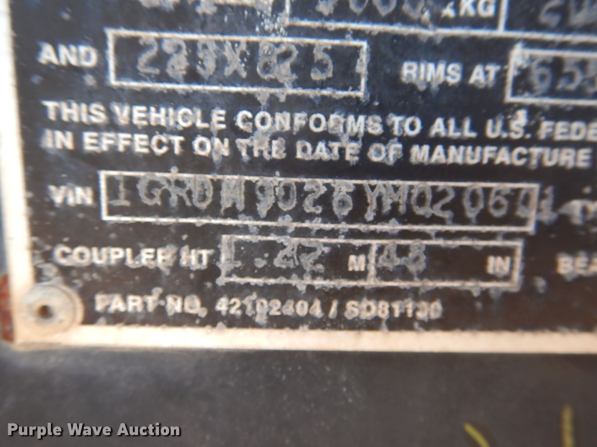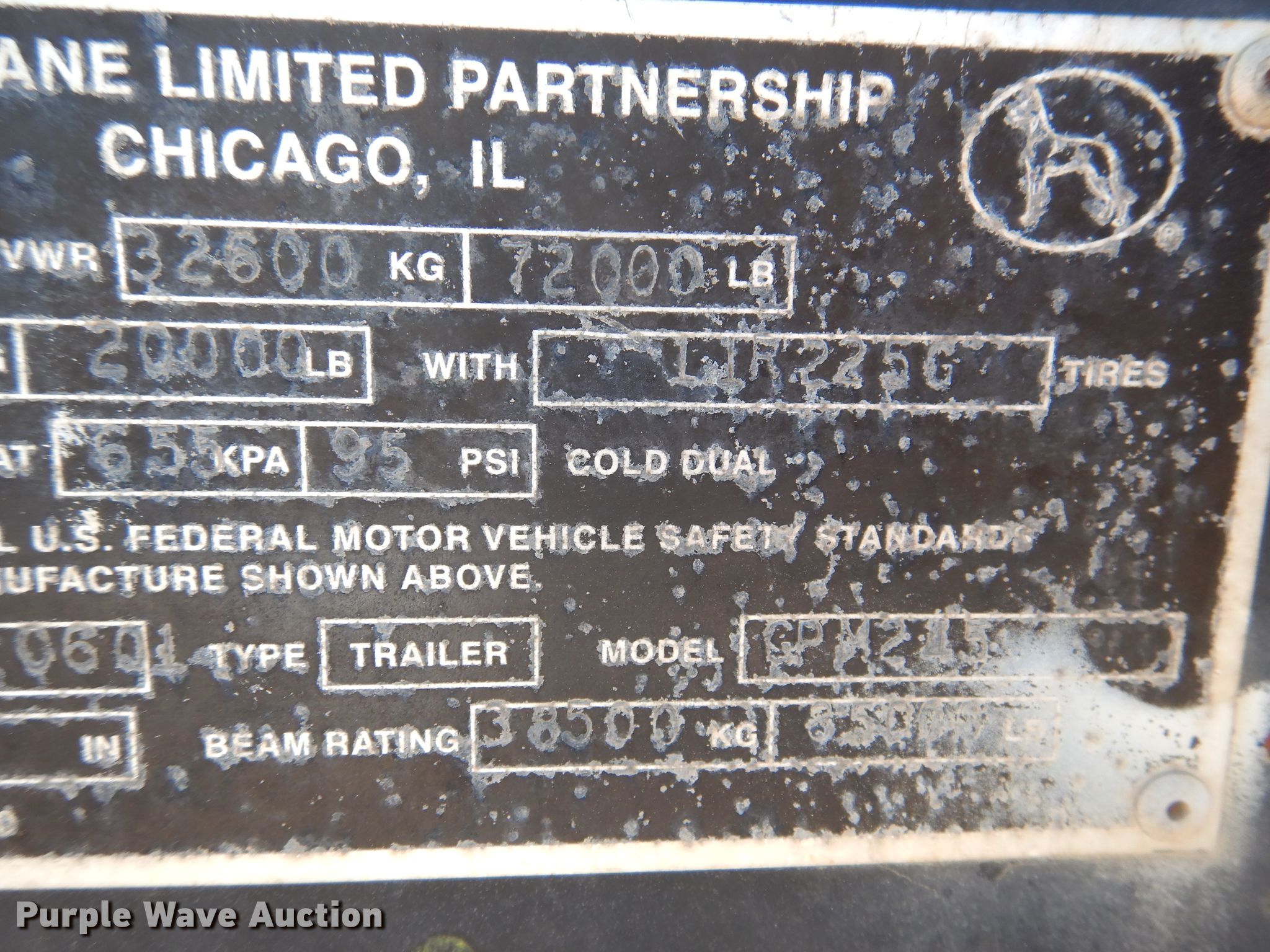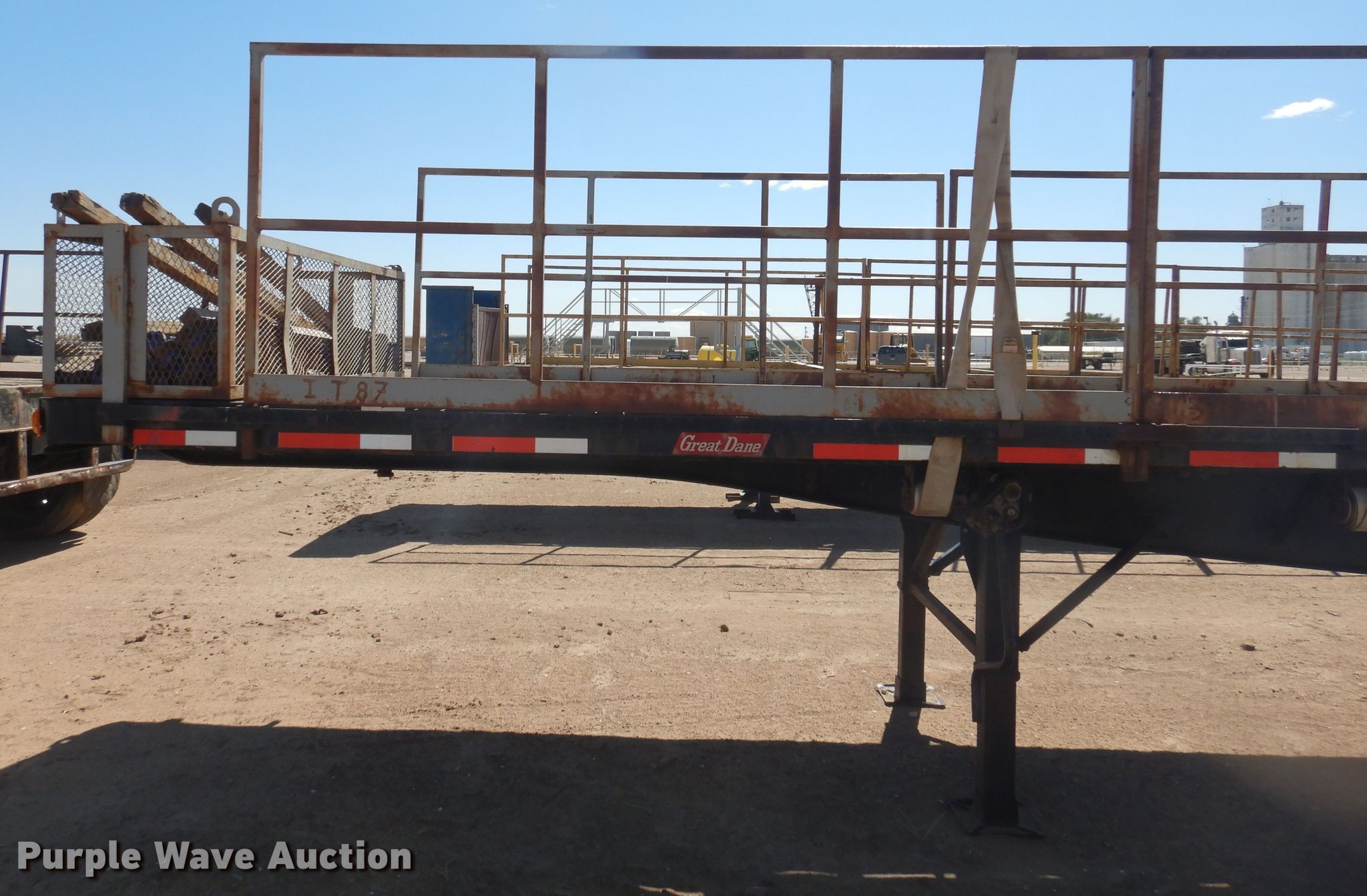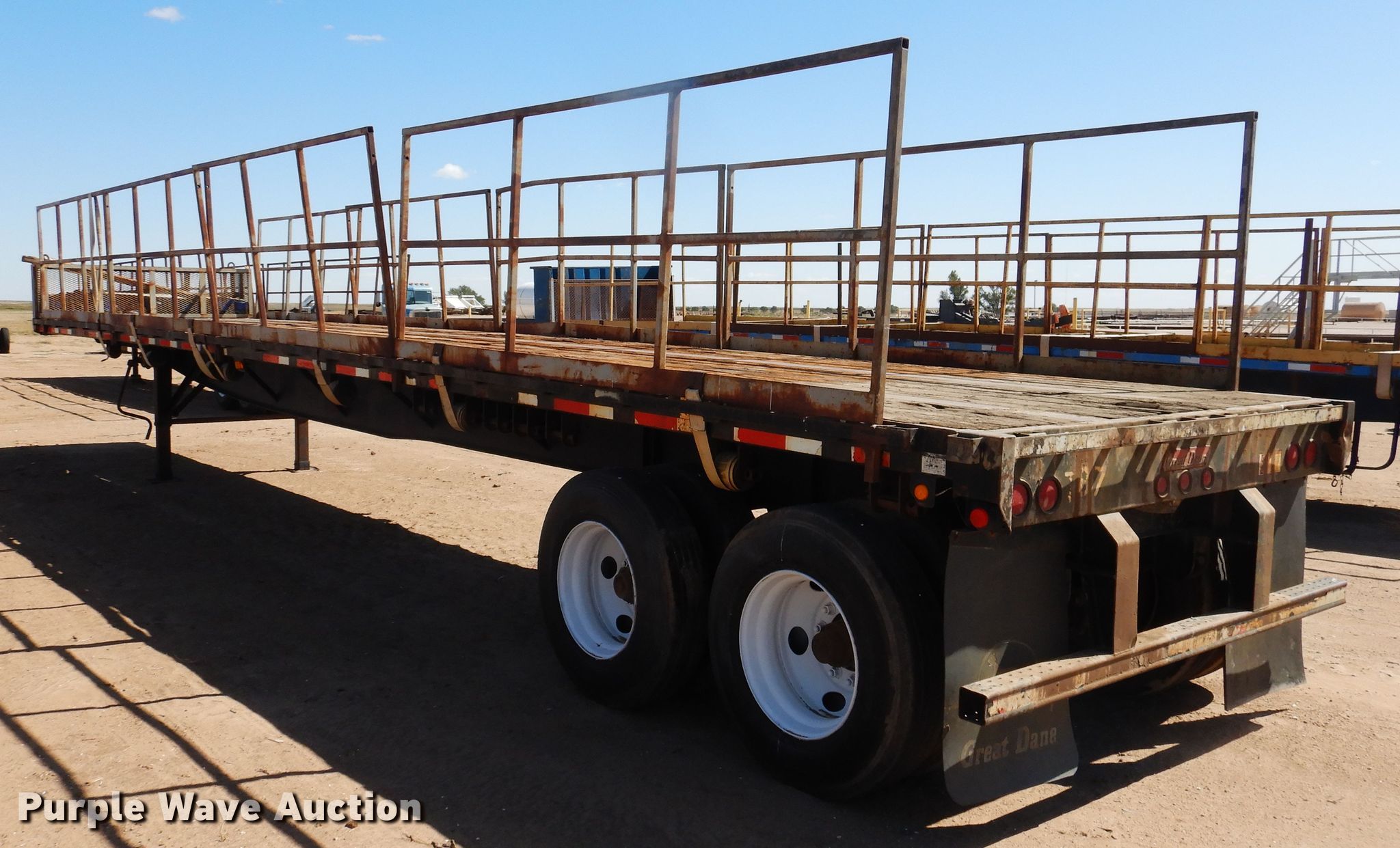 Purple Wave is selling a used Flat or Drop Deck Trailer in Kansas. This item is a 2000 Great Dane flatbed trailer with the following: 45'1"L x 95"W overall, 45'L x 91"W deck, 4' side height, Wood deck, Dual leg two speed landing gear, Spring suspension, Air brakes, Tandem axle, Steel wheels, 11R22.5 tires, GVWR 72,000 lbs, GAWR 20,000 lbs